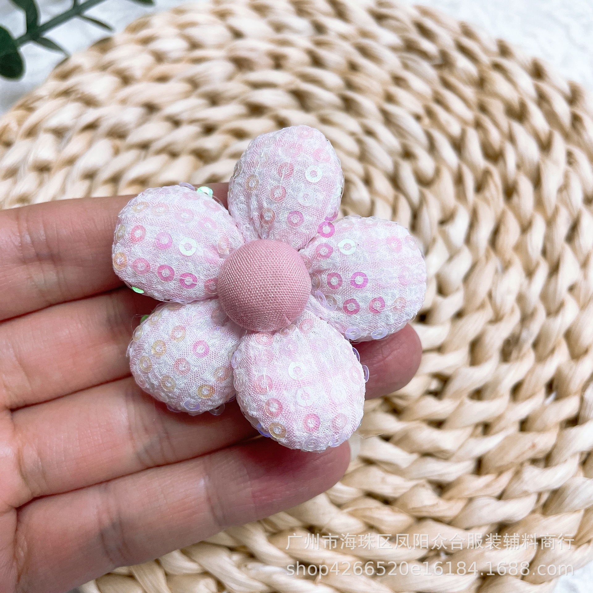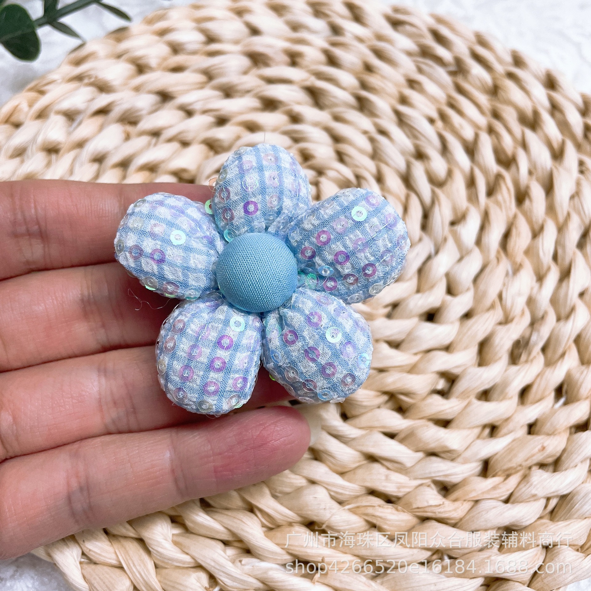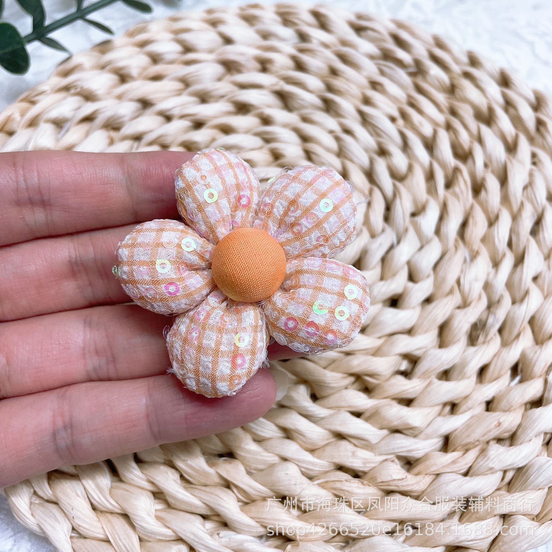 새로운 스팽글 격자 무늬 패브릭 코튼 다섯 꽃잎 꽃 diy 브로치 헤어 액세서리 신발 모자 가방 양말 액세서리스토어 가기