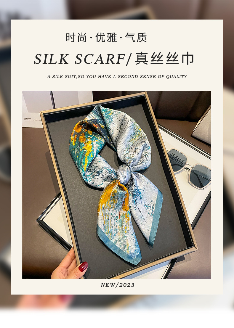 봄과 여름 새로운 한국식 렌더링 스플래시 잉크 아트 디자인 뽕나무 실크 실크 스카프 여성용 70 스퀘어 스카프 경량 스카프