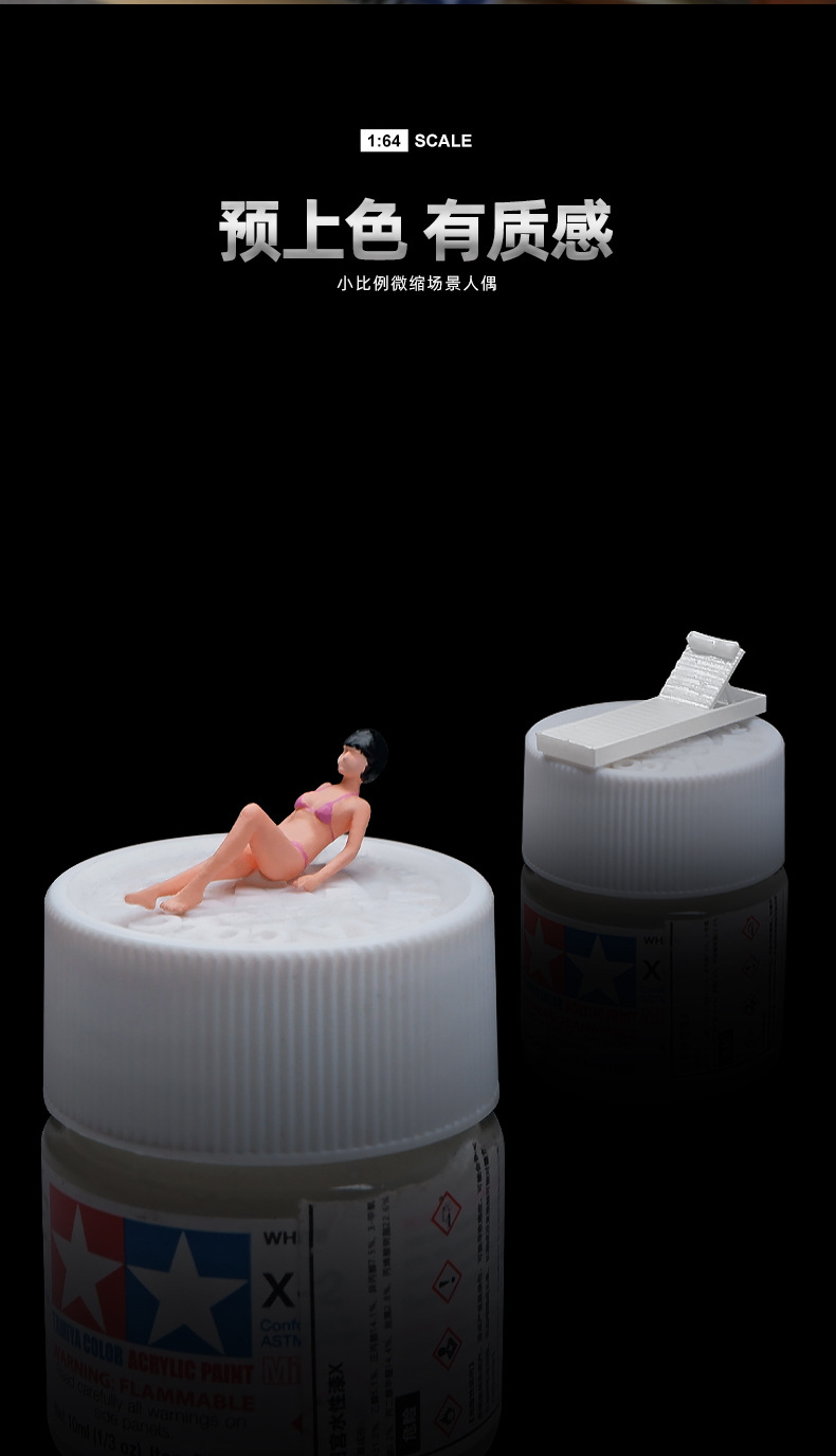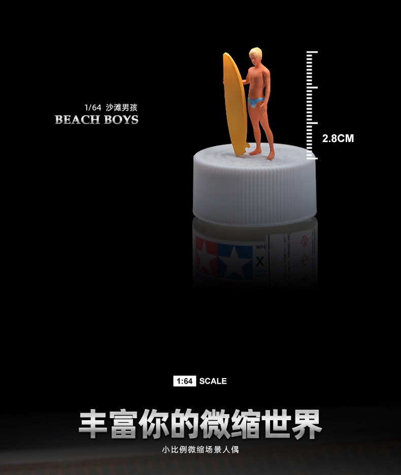 오리지널 팩토리 1:64 비치 파티 시리즈 인형 모형 미니어처 장난감 꼬마 피규어 시뮬레이션 핸드메이드 신 샌드 테이블 매칭