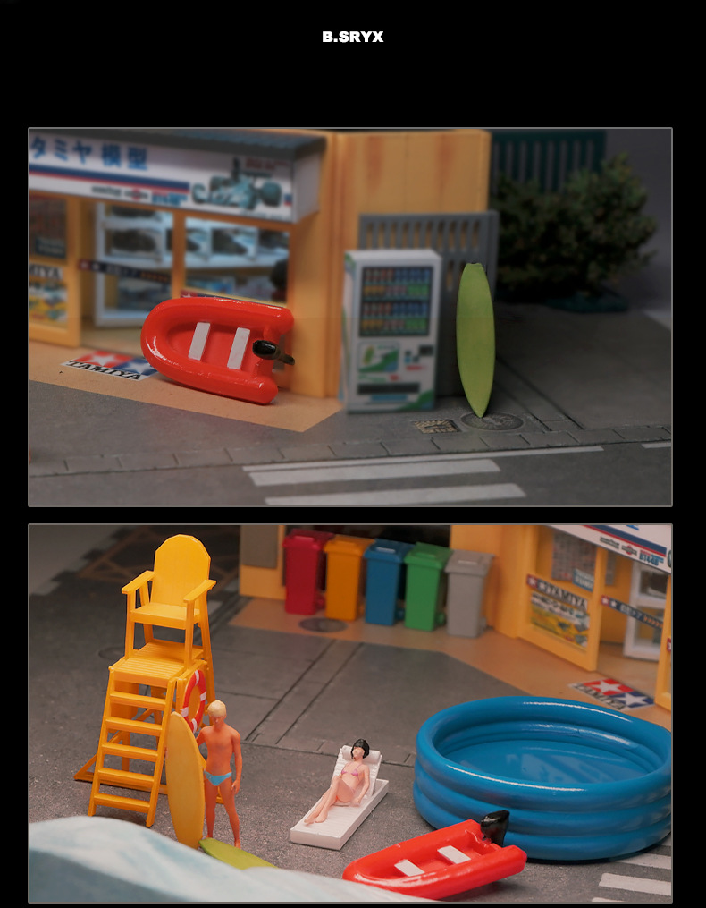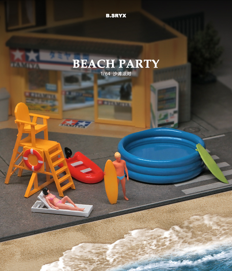 오리지널 팩토리 1:64 비치 파티 시리즈 인형 모형 미니어처 장난감 꼬마 피규어 시뮬레이션 핸드메이드 신 샌드 테이블 매칭스토어 가기