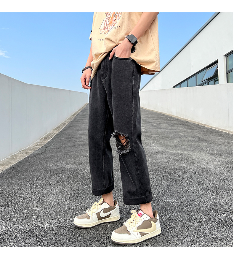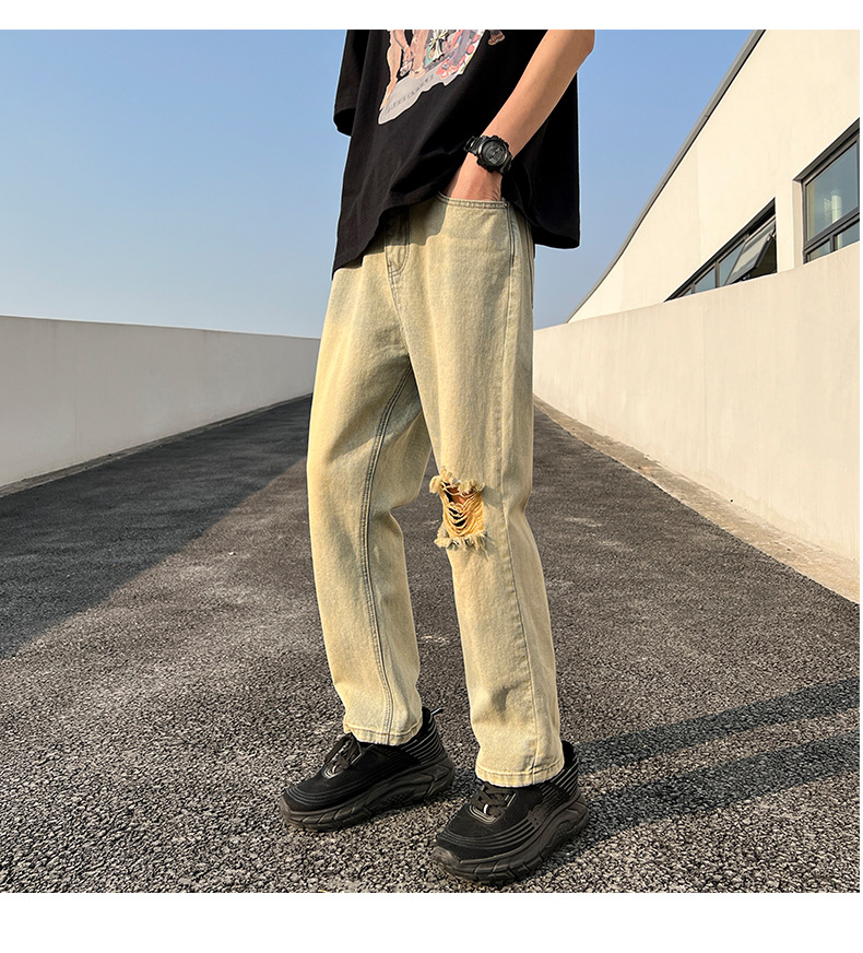 남성용 청바지 2023 여름 신상 디자인 캐주얼 다용도 스트레이트 라지 사이즈 학생 트렌드스토어 가기