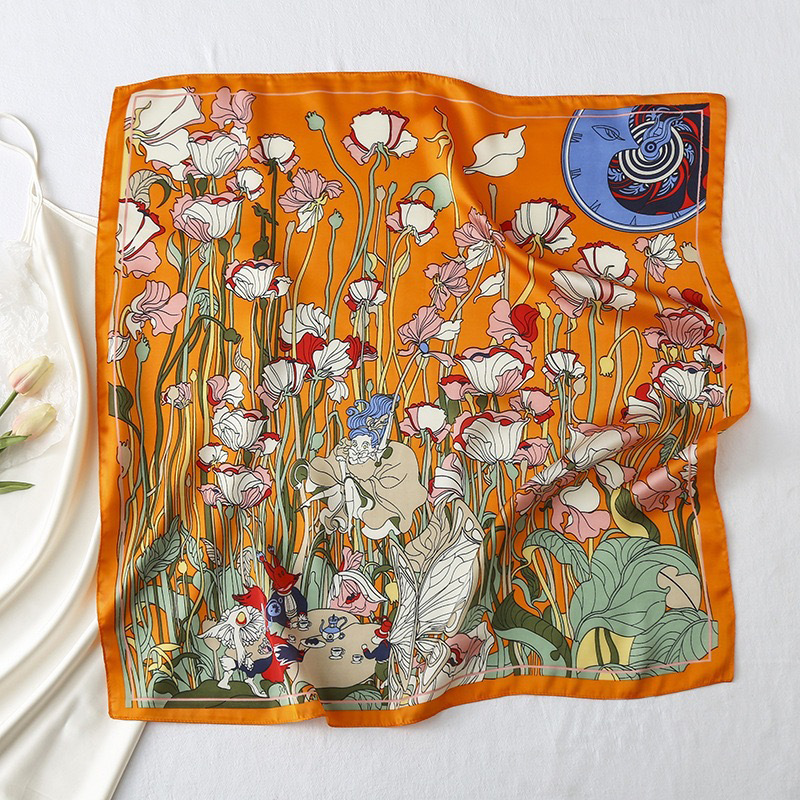 일본과 한국 패션 소녀의 헤어 밴드 전문 스카프 70cm 작은 사각 스카프 꽃 실크 스카프 장식 가슴 랩스토어 가기