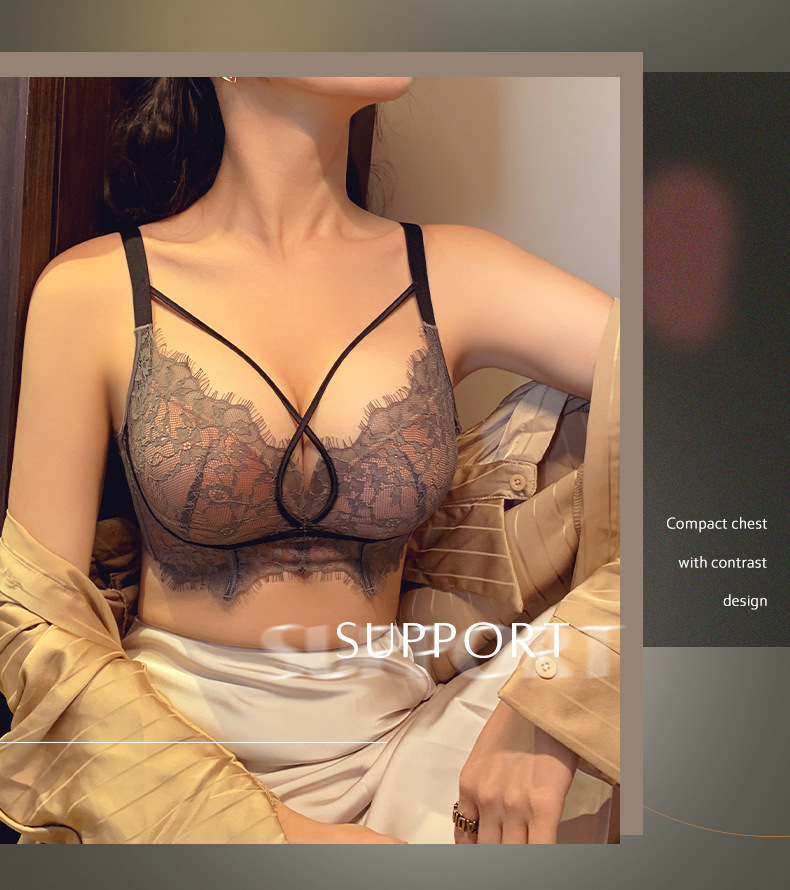 370 프렌치 레이스 작은 가슴 푸시 업 비 무테 브래지어 처짐 방지 조절 가능한 섹시 속옷 세트스토어 가기