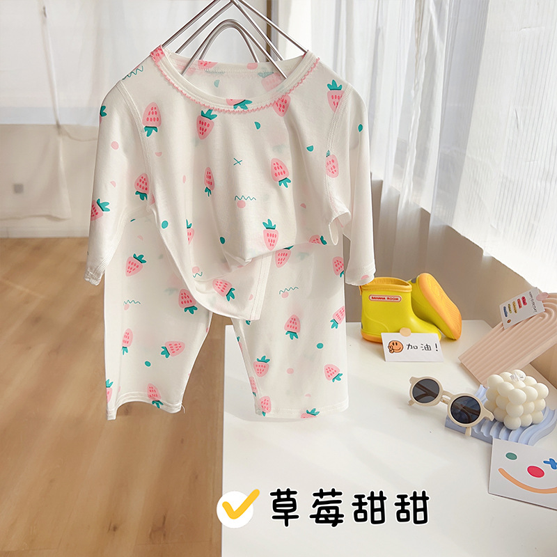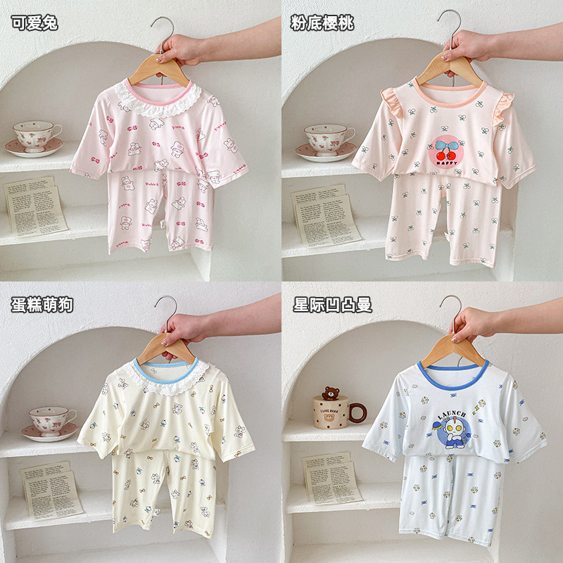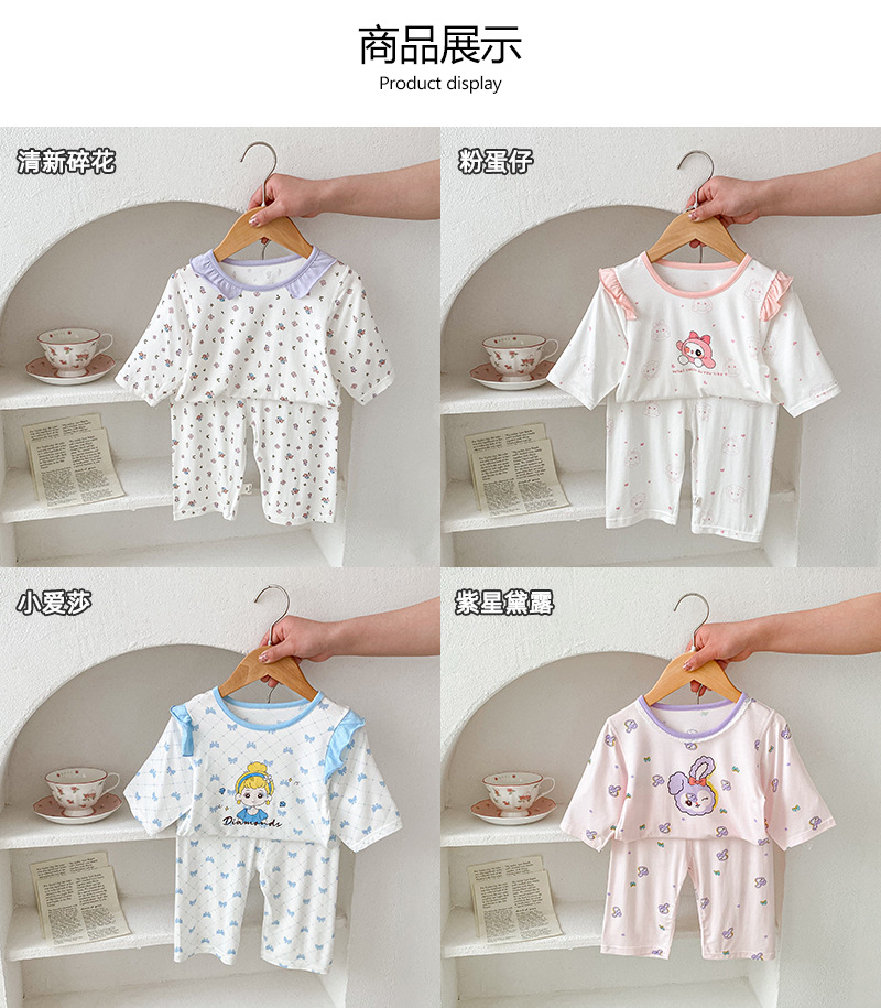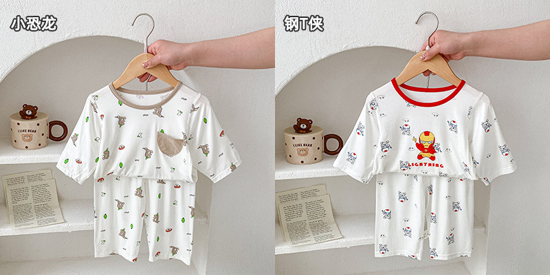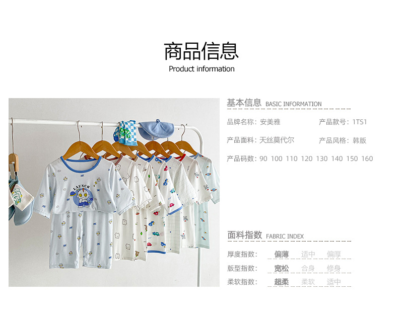 Anmeiya 어린이 여름 에어컨 의류 마이크로 비즈니스 폭발물 소년 소녀 Tencel 7 점 소매 홈 의류 제조업체 도매