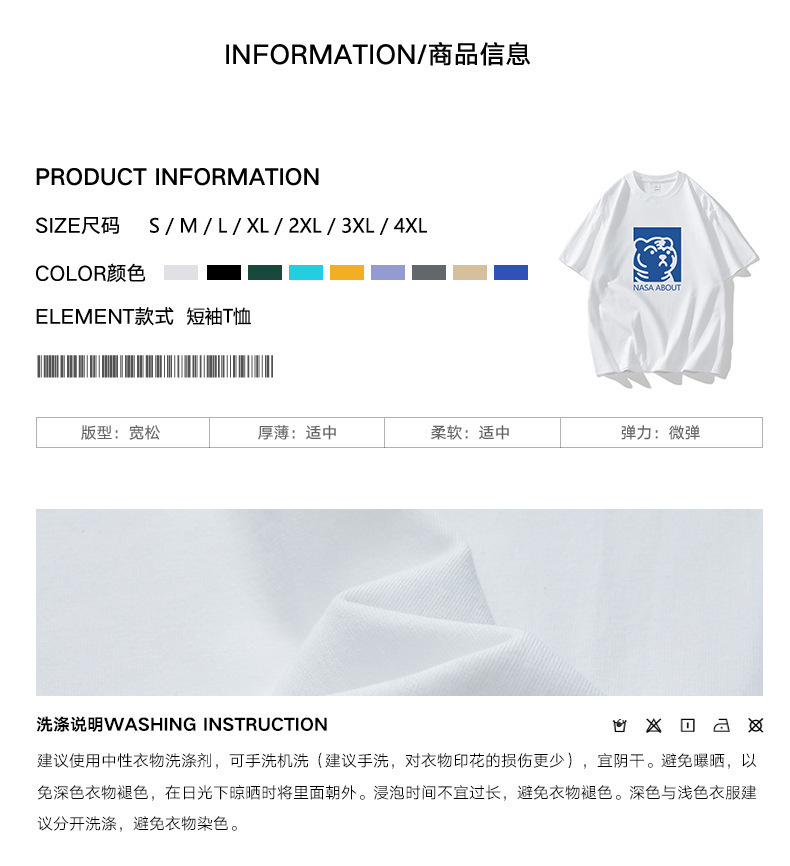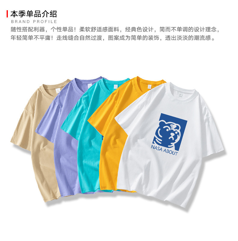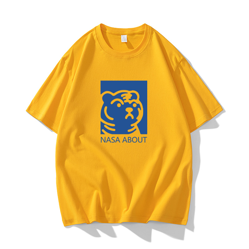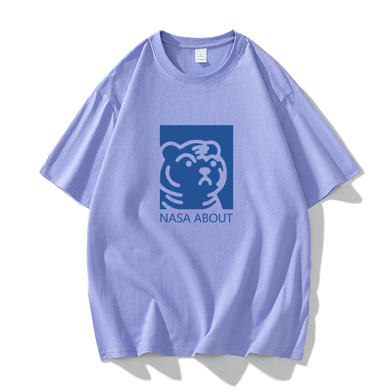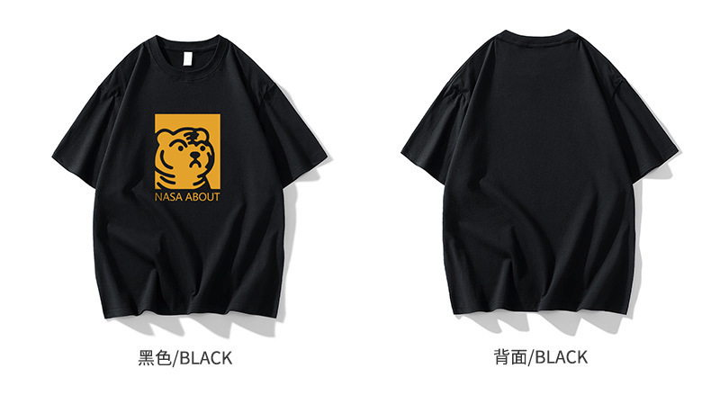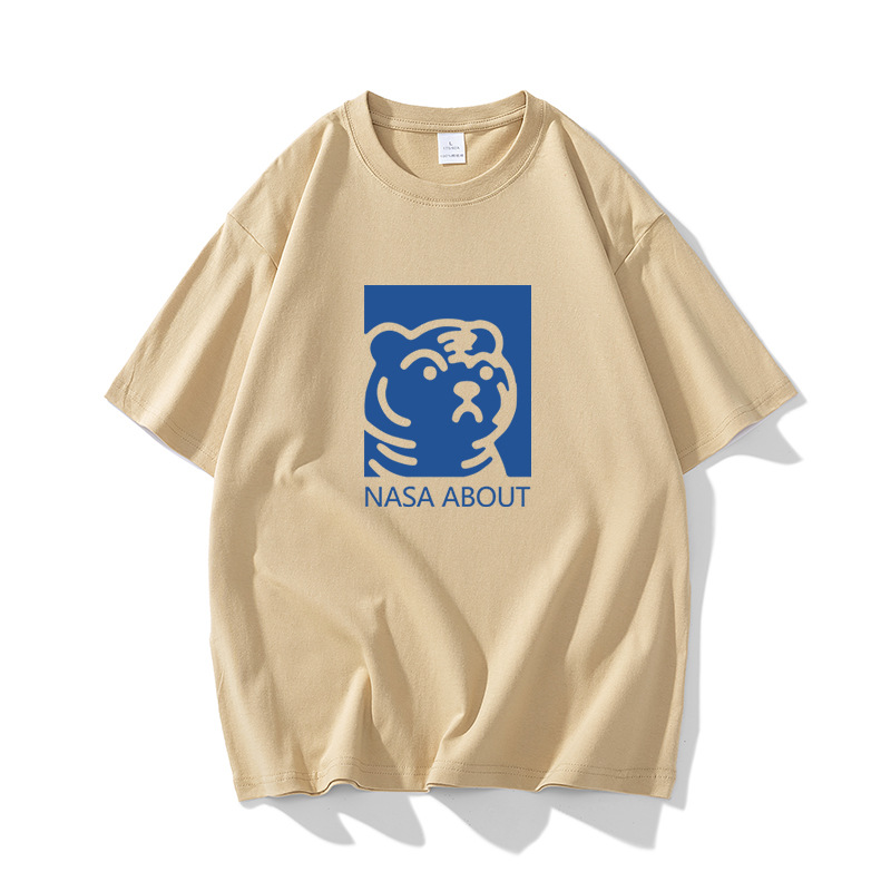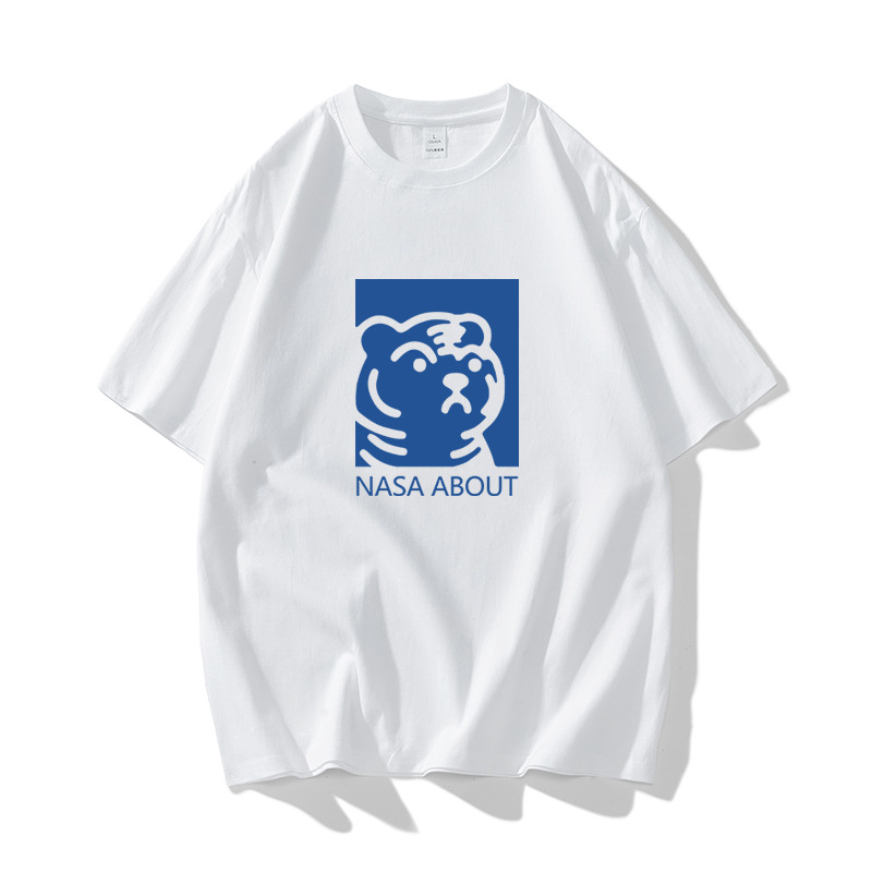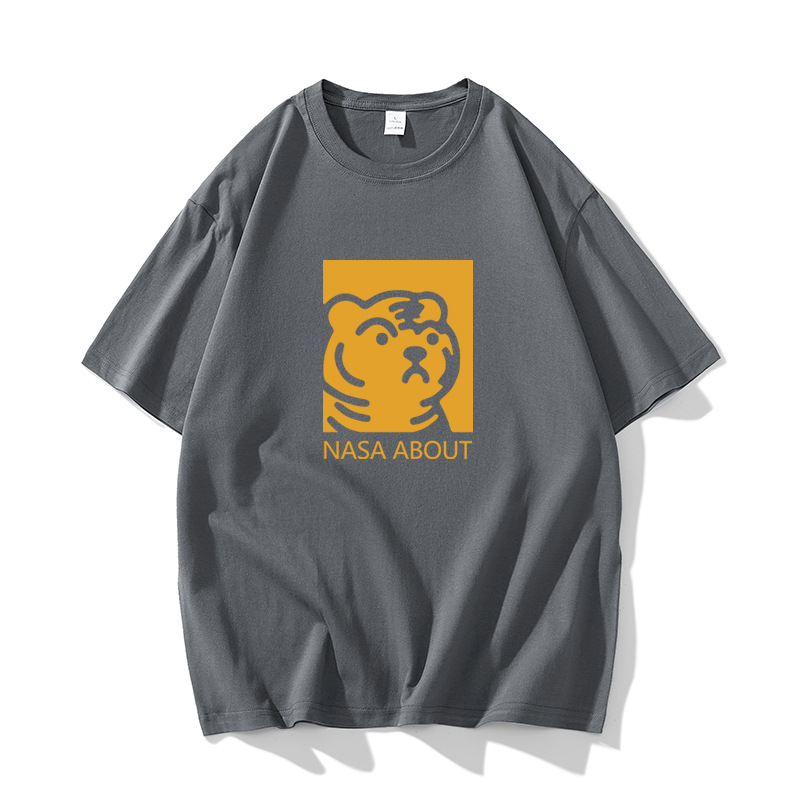 NASA 타이거 헤드 헤비 듀티 퓨어 코튼 반팔 티셔츠 남성용 여름 트렌디 브랜드 루즈한 모든 매치 인 커플 반팔 의류스토어 가기