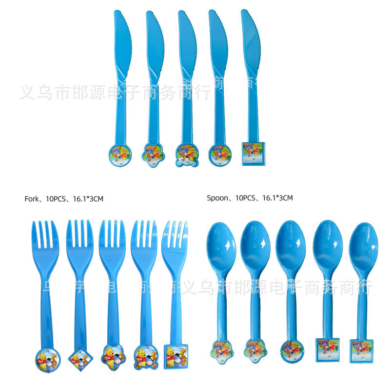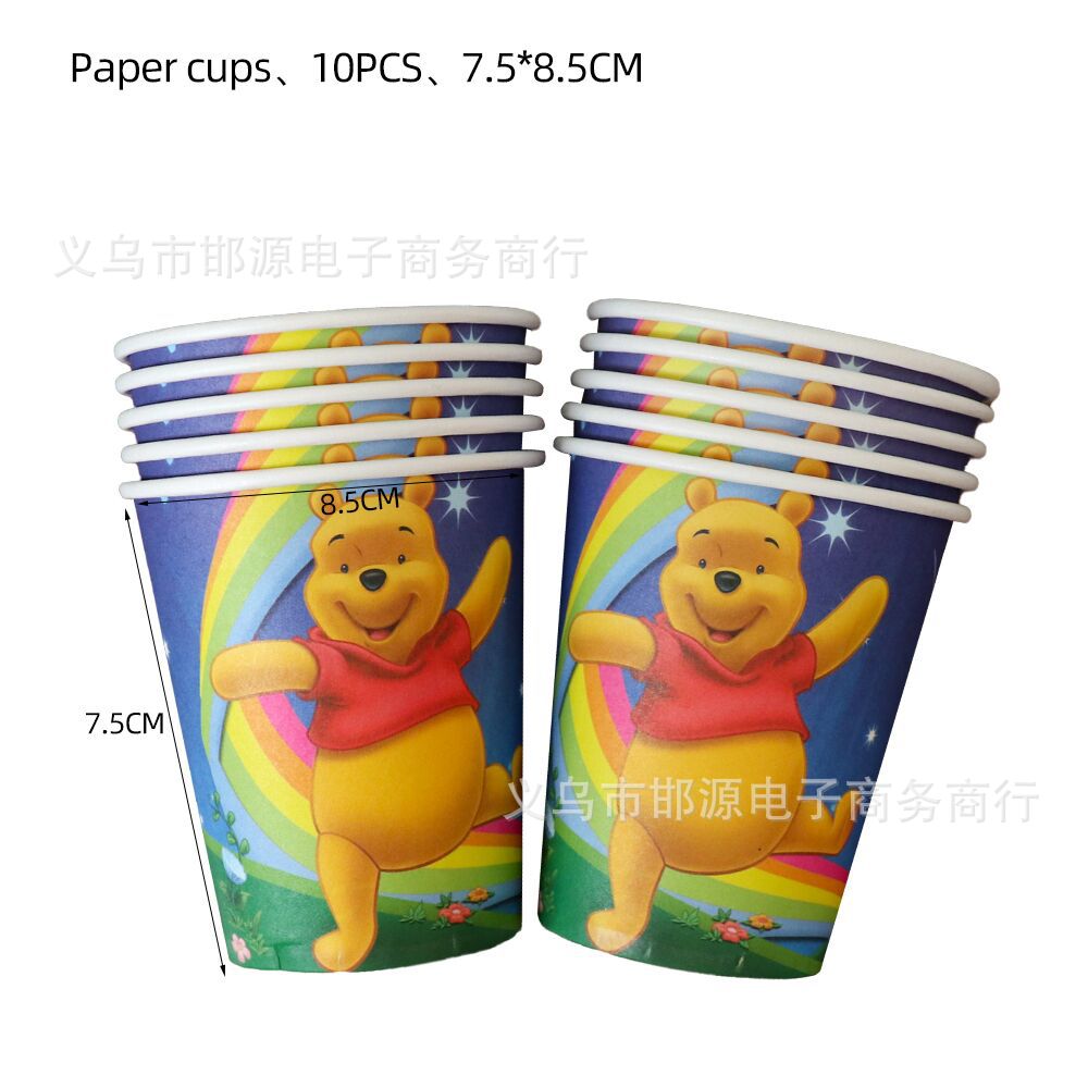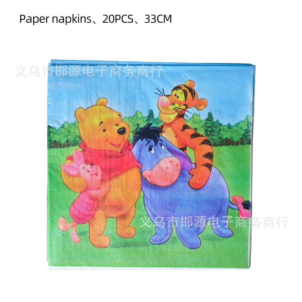 위니 푸 생일 파티 장식 식기 종이 트레이 종이 컵 티슈 테이블 천 파티 장식 세트
