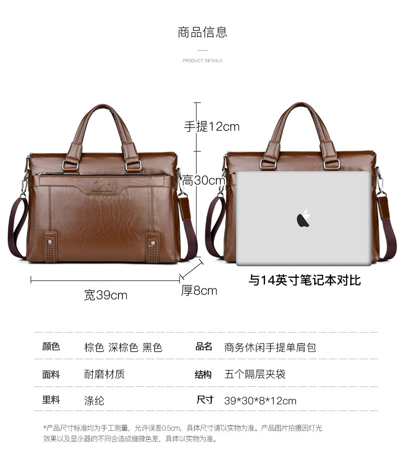 남성용 크로스보더 핸드백 서류가방 가로형 비즈니스 캐주얼 컴퓨터 가방 남성 가방 레이저 디자인스토어 가기