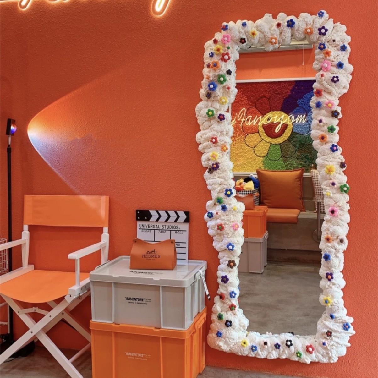 • 흰색 짧은 다리 오렌지 천