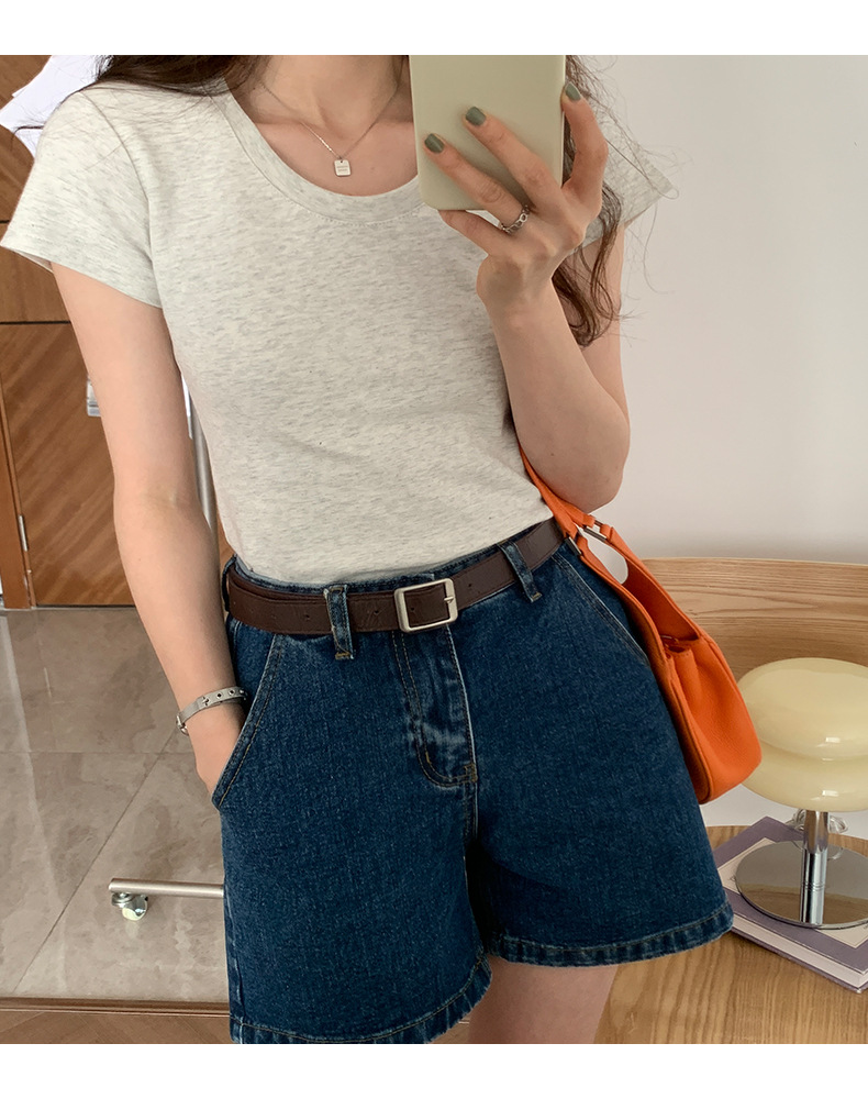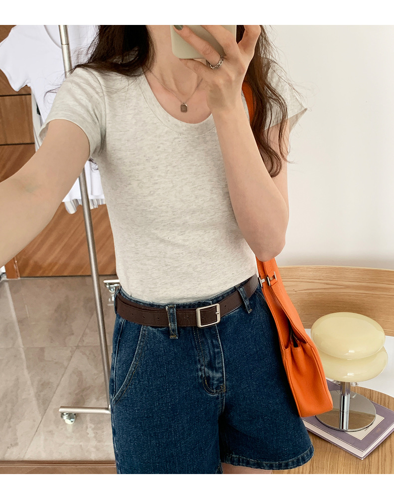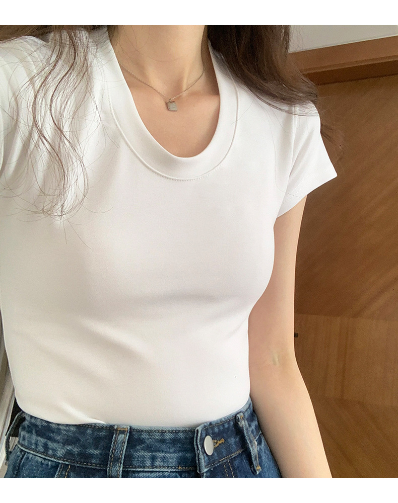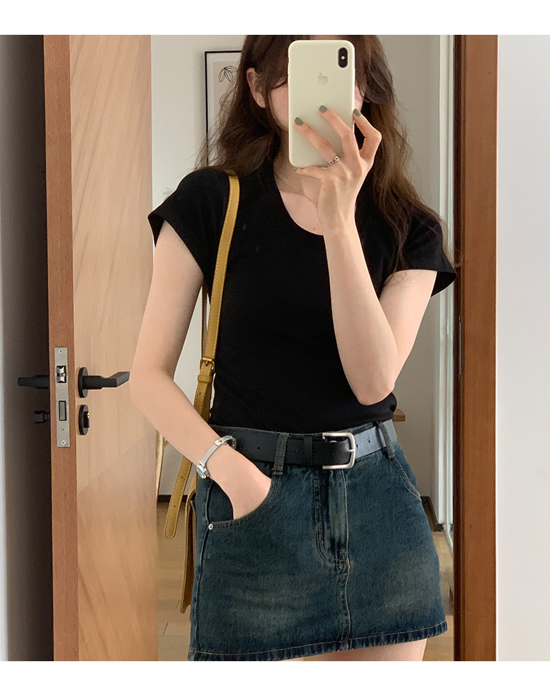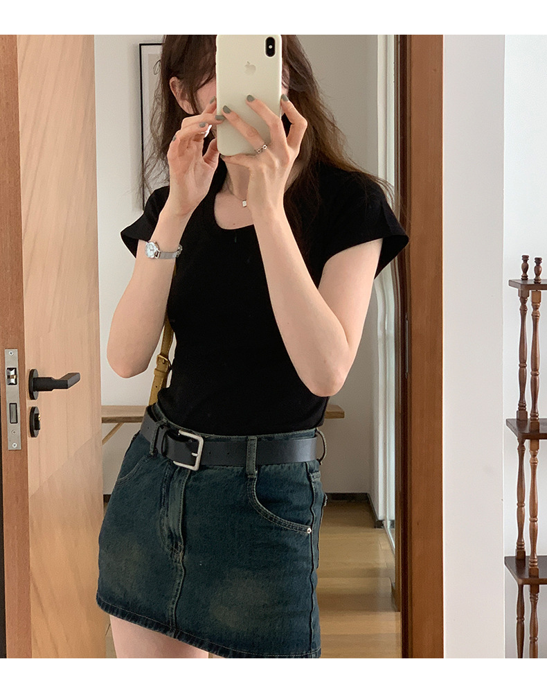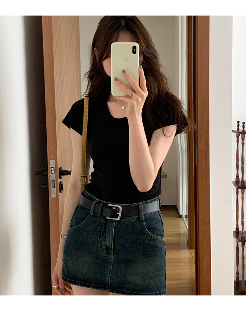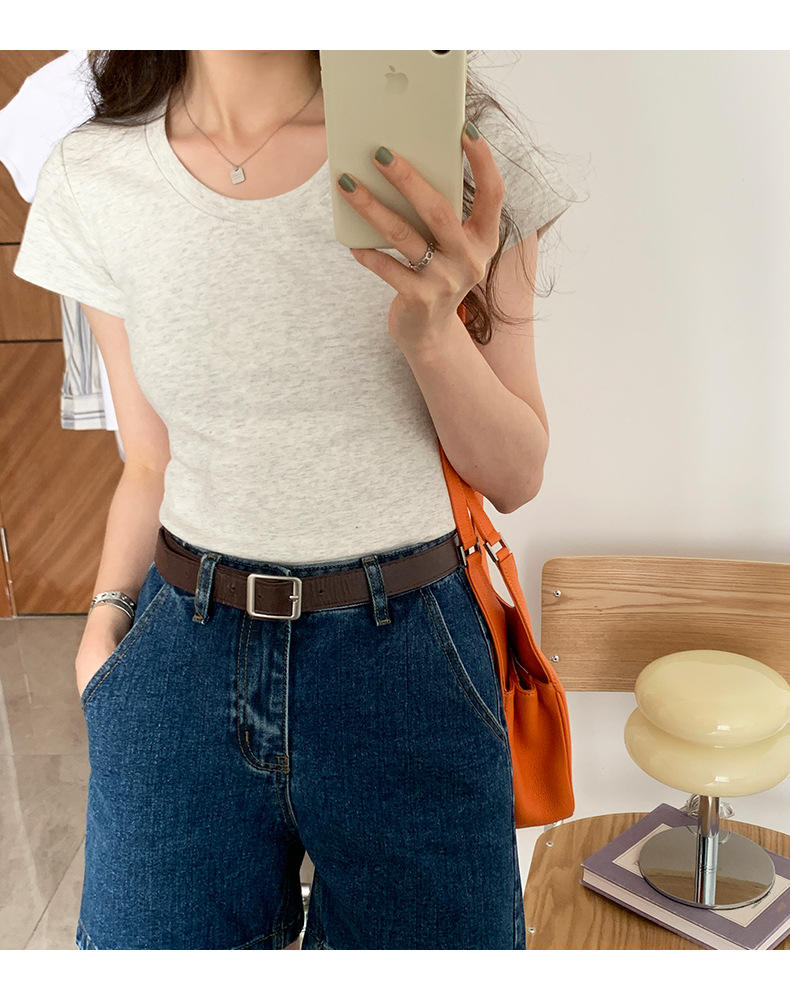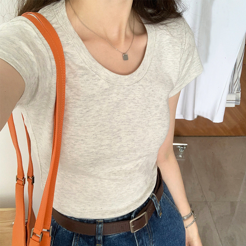 여성을위한 순수한 정욕 스타일 슬림 스레드 반팔 티셔츠 여름 여성 슬림 코튼 디자인 다목적 탑 트렌디스토어 가기