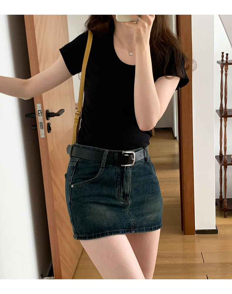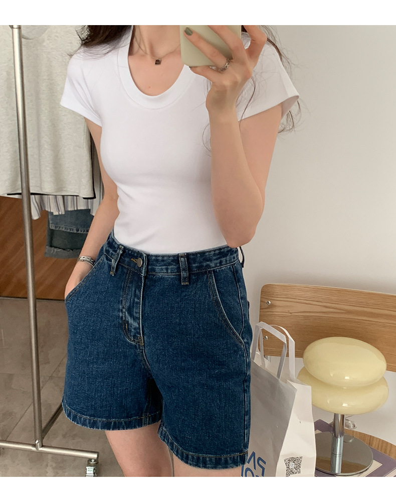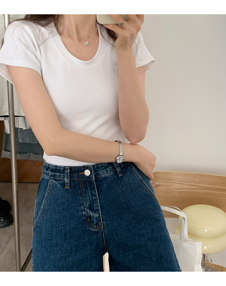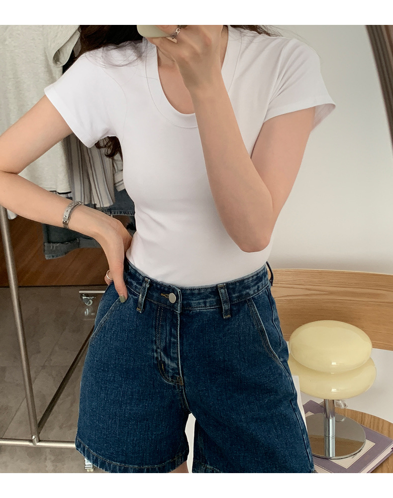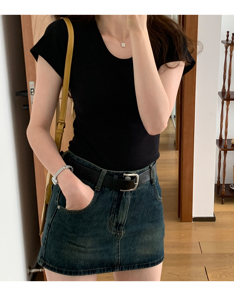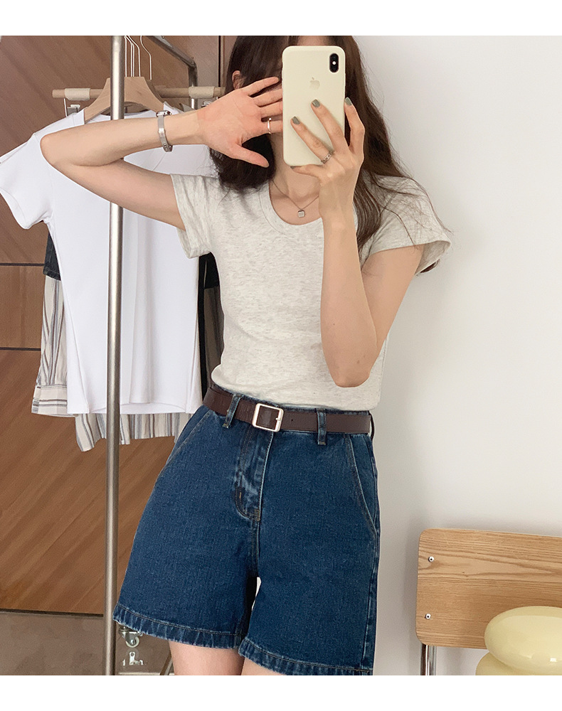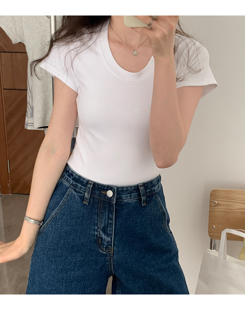여성을위한 순수한 정욕 스타일 슬림 스레드 반팔 티셔츠 여름 여성 슬림 코튼 디자인 다목적 탑 트렌디스토어 가기