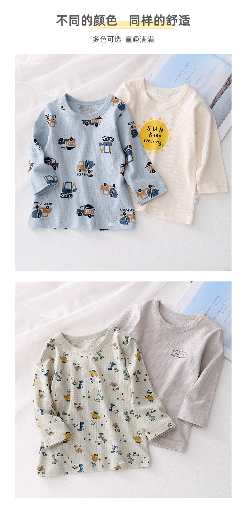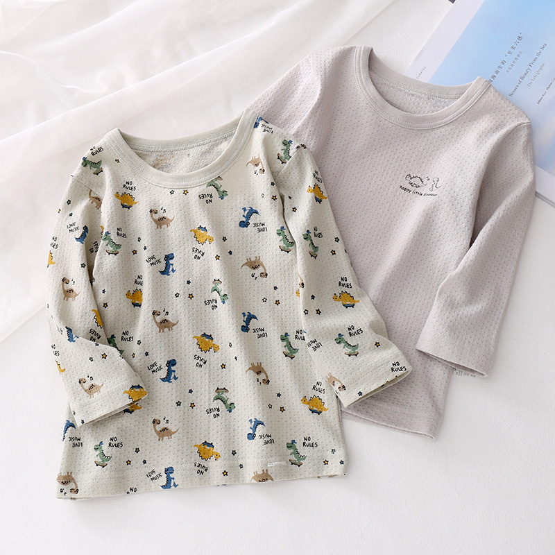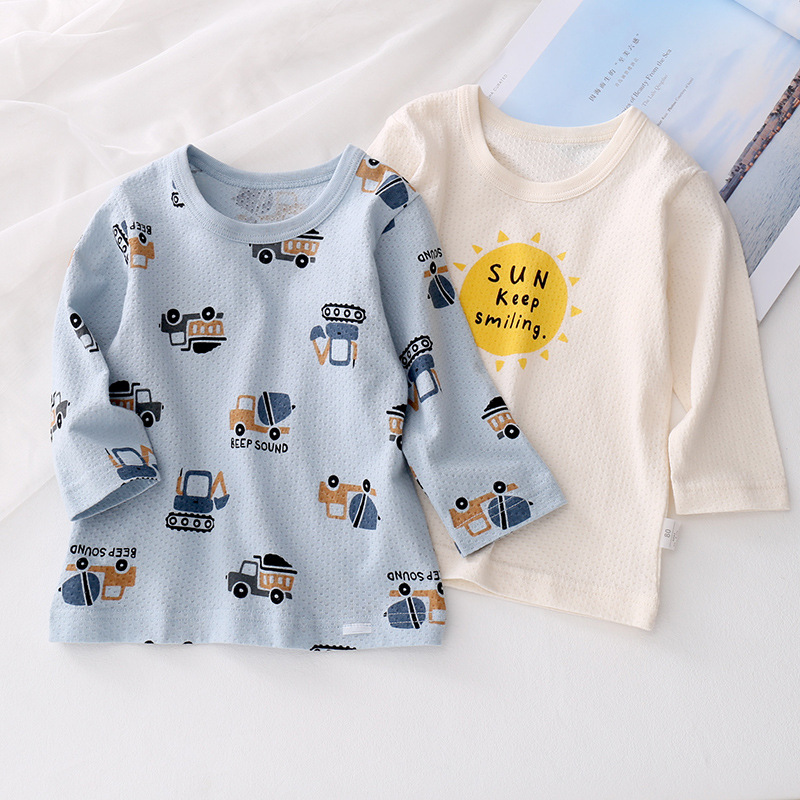 봄과 여름 얇은 어린이 긴팔 탑 면 부드러운 통기성 남아 베이스 셔츠 크루넥 티셔츠 재고 세대 헤어스토어 가기
