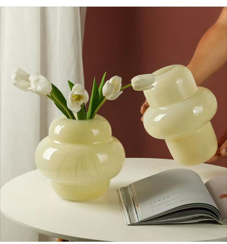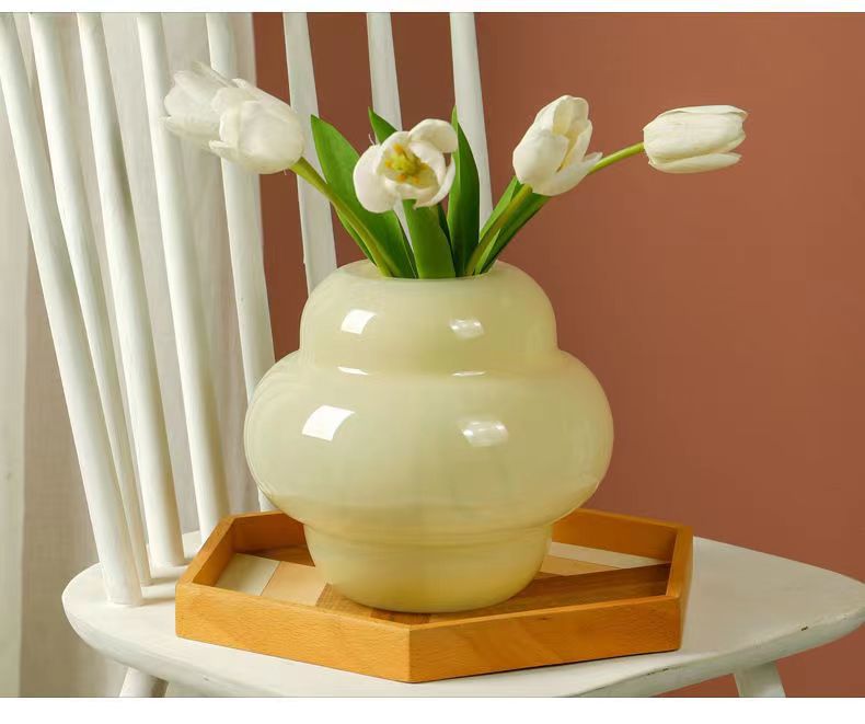 북유럽 빛 럭셔리 우유 옥 고대 꽃병 창조적 인 거실 침실 꽃꽂이 부드러운 장식 장식품 공예 꽃병