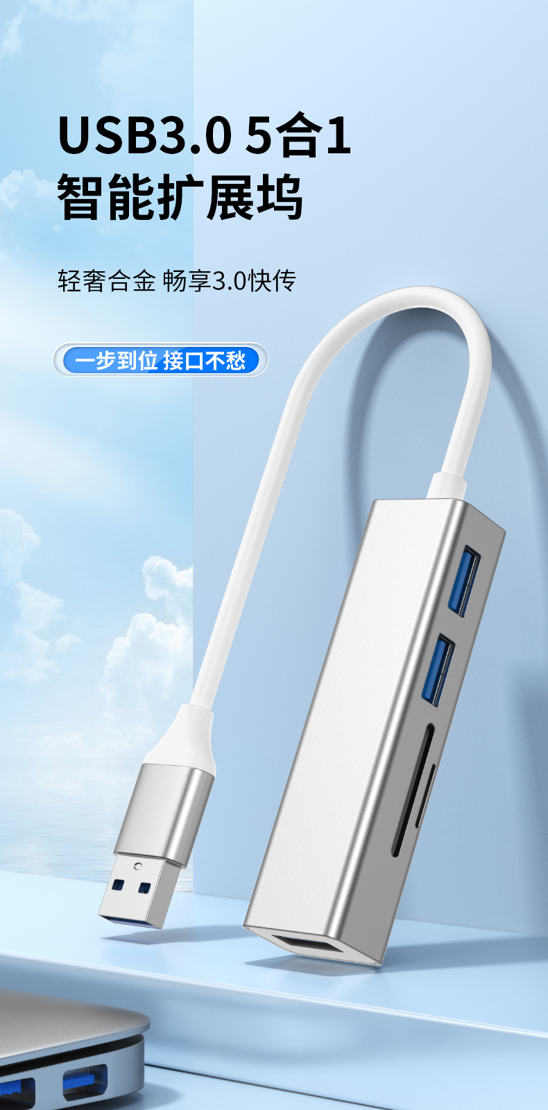 USB3.0 분배기 1대5 노트북 카드 리더기 변환기 확장 도크 고속 3포트 허브