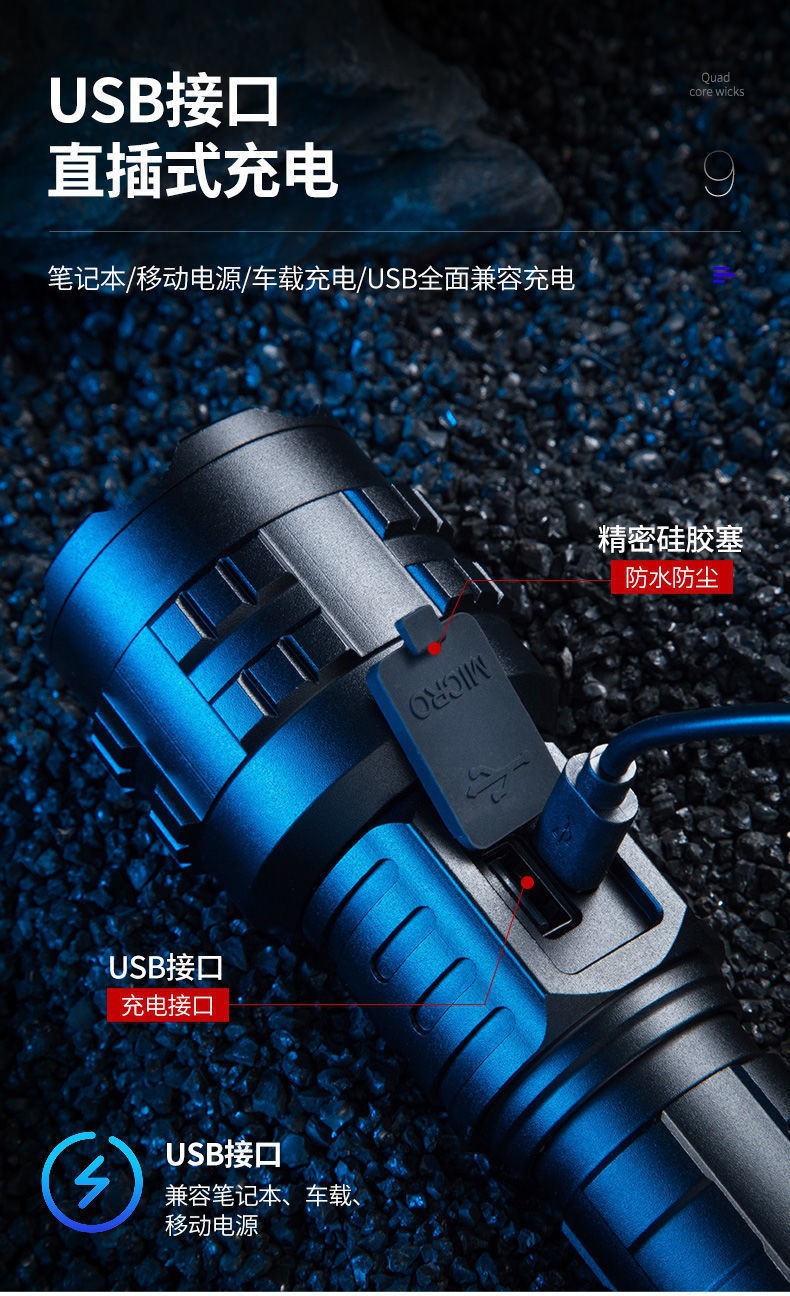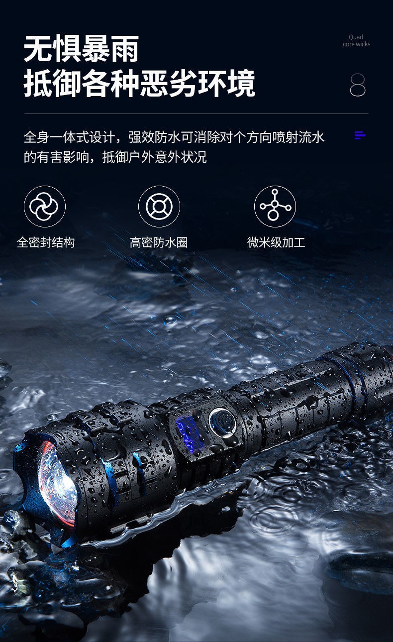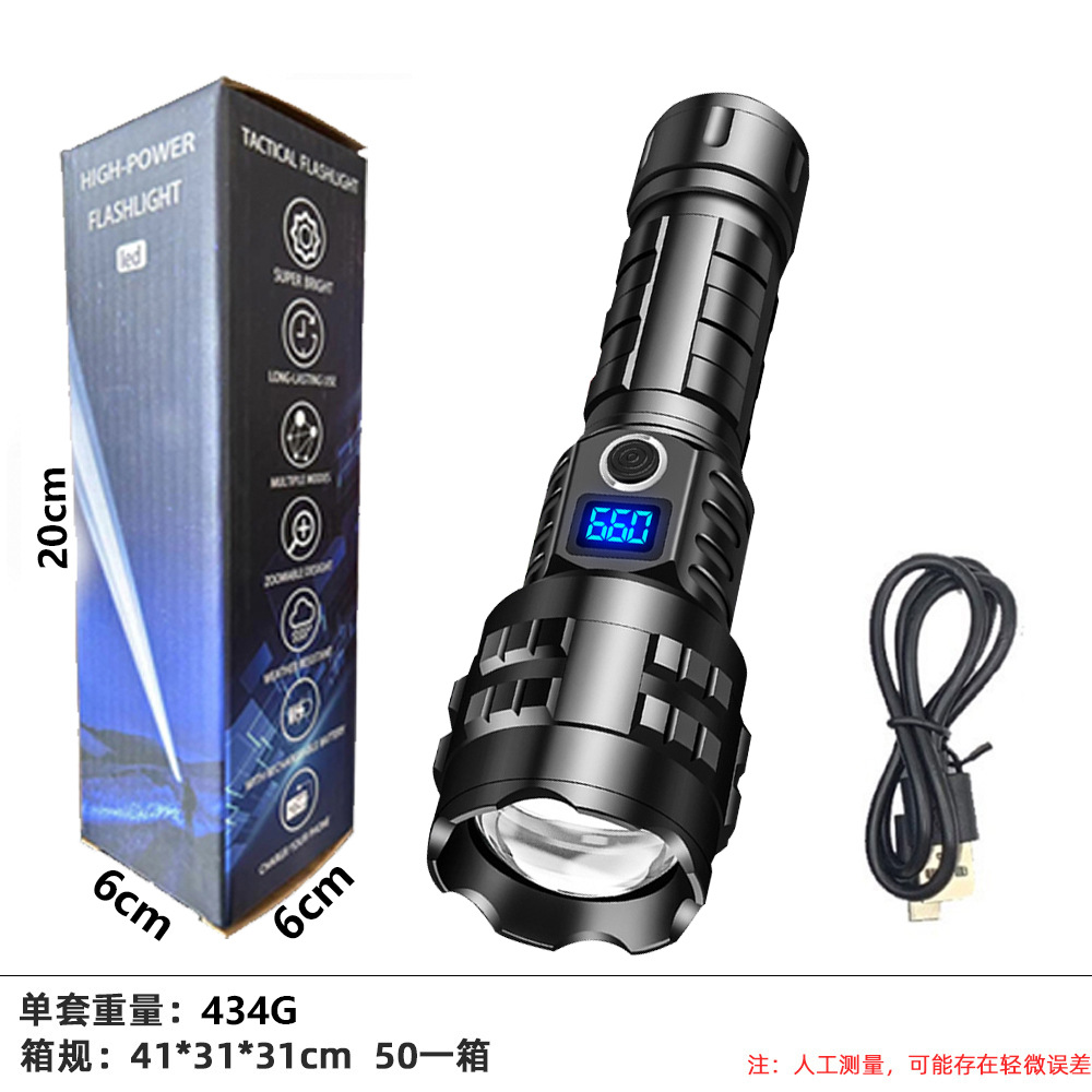아마존 폭발 자기 방어 led 손전등 유형-c 충전 홈 야외 전용 디지털 손전등