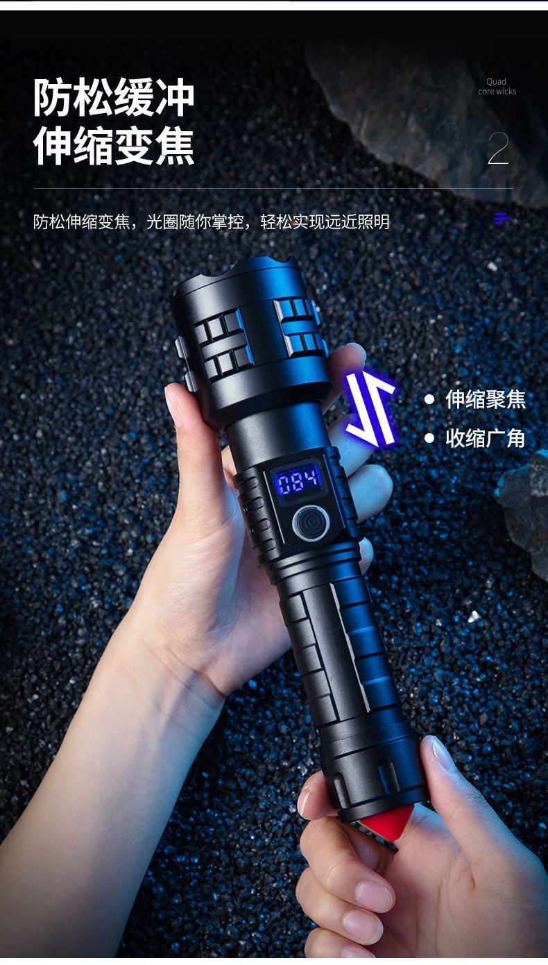 아마존 폭발 자기 방어 led 손전등 유형-c 충전 홈 야외 전용 디지털 손전등스토어 가기