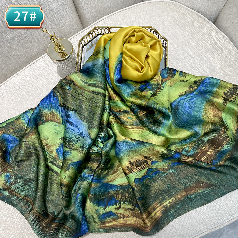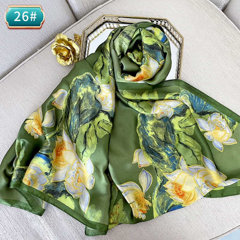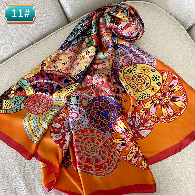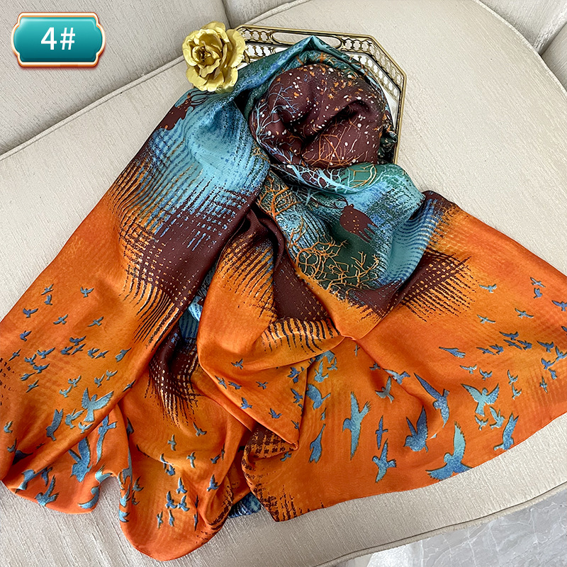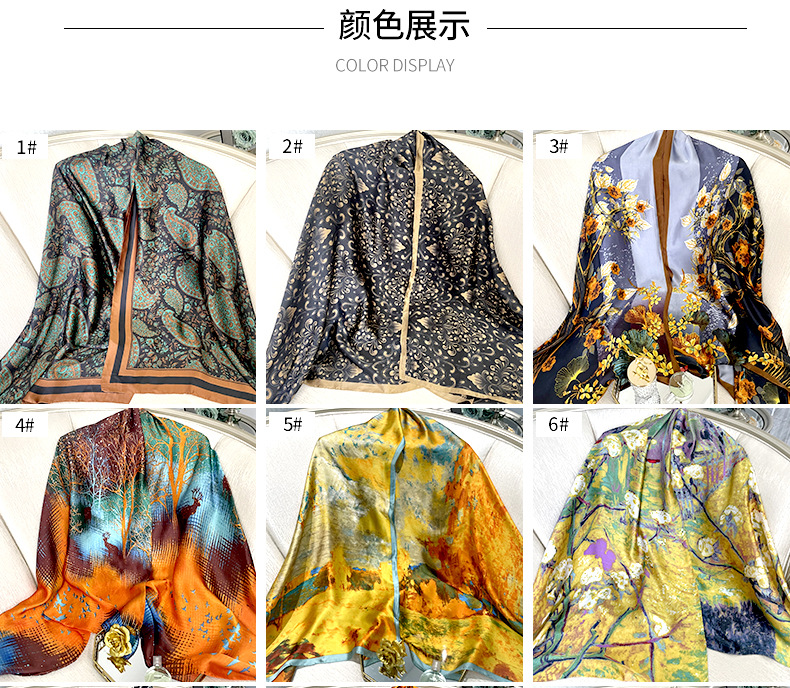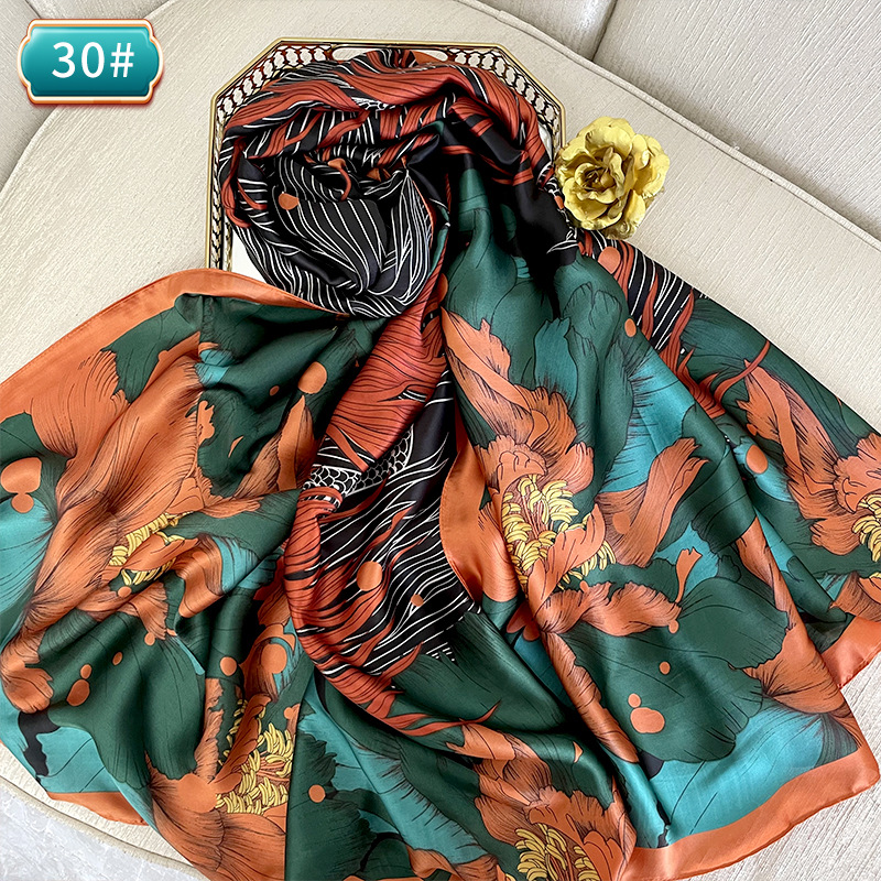 새틴 인쇄 실크 스카프 180 × 90 긴 실크 목도리 숙녀 선물 우아한 스카프 도매스토어 가기