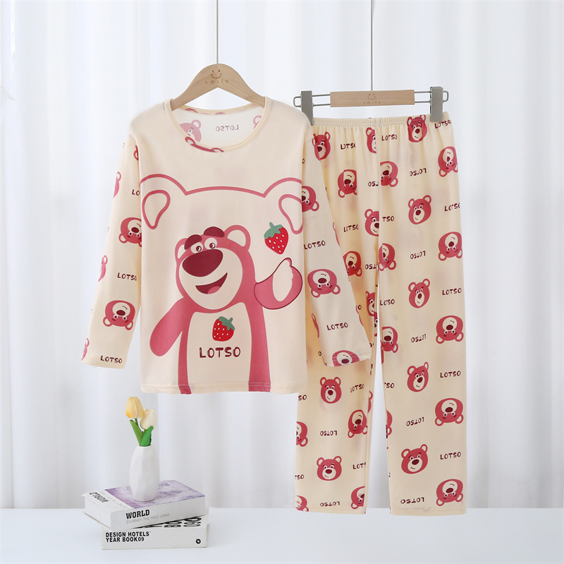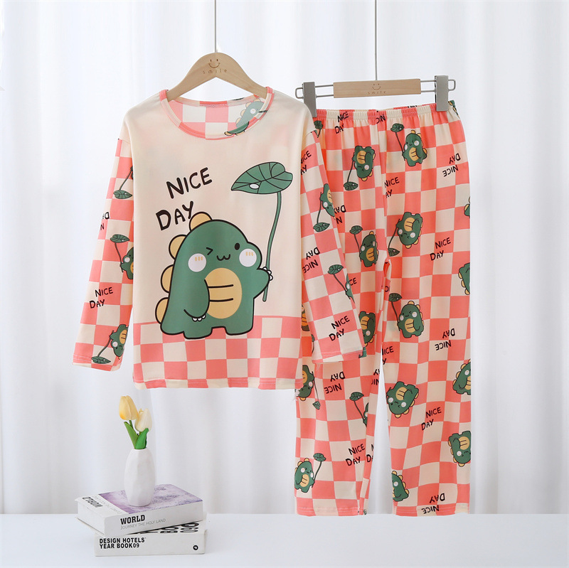 어린이 잠옷 긴팔 세트 봄/여름/가을 여아 큰 어린이 가정복 에어컨 옷 소년 얇은 가정복