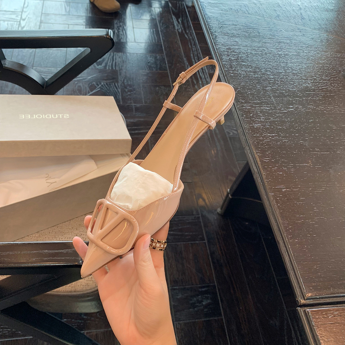 포도 엄마 스튜디오 미스 모니카 ~ 기질 뾰족한 하이힐 에나멜 가죽 후면 빈 스틸레토 샌들 여성스토어 가기
