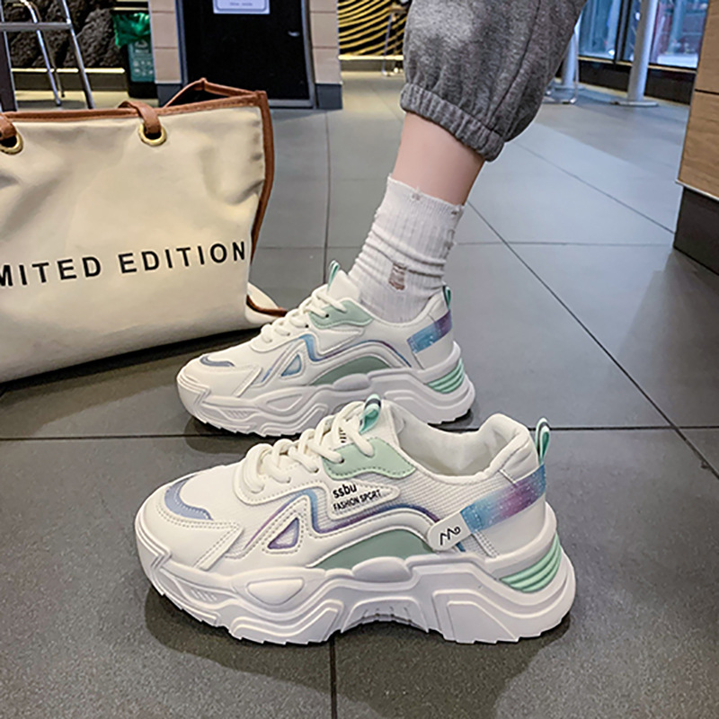 2025 봄과 가을 여성을위한 통기성 얇은 스포츠 신발을 실행 다목적 캐주얼 신발 두꺼운 단독 고조 아빠 신발 유행 신발