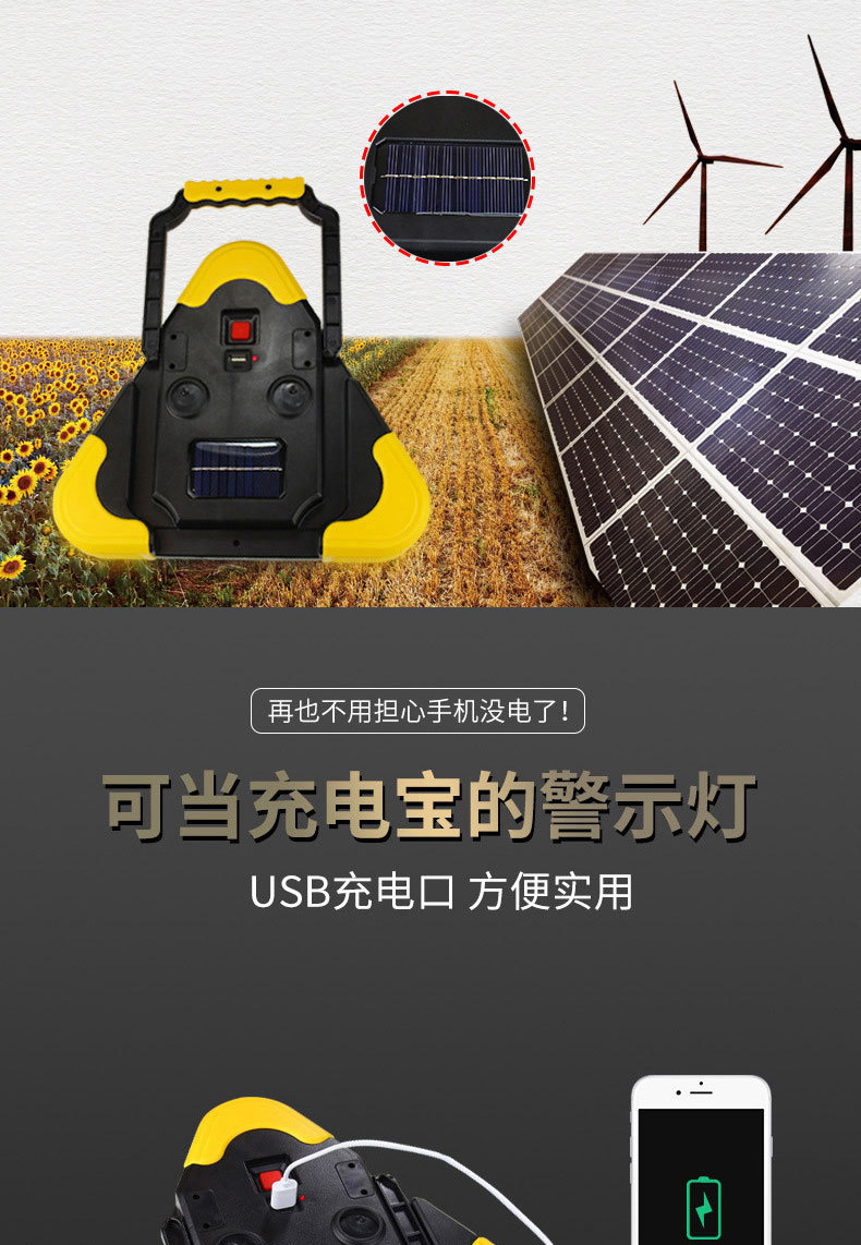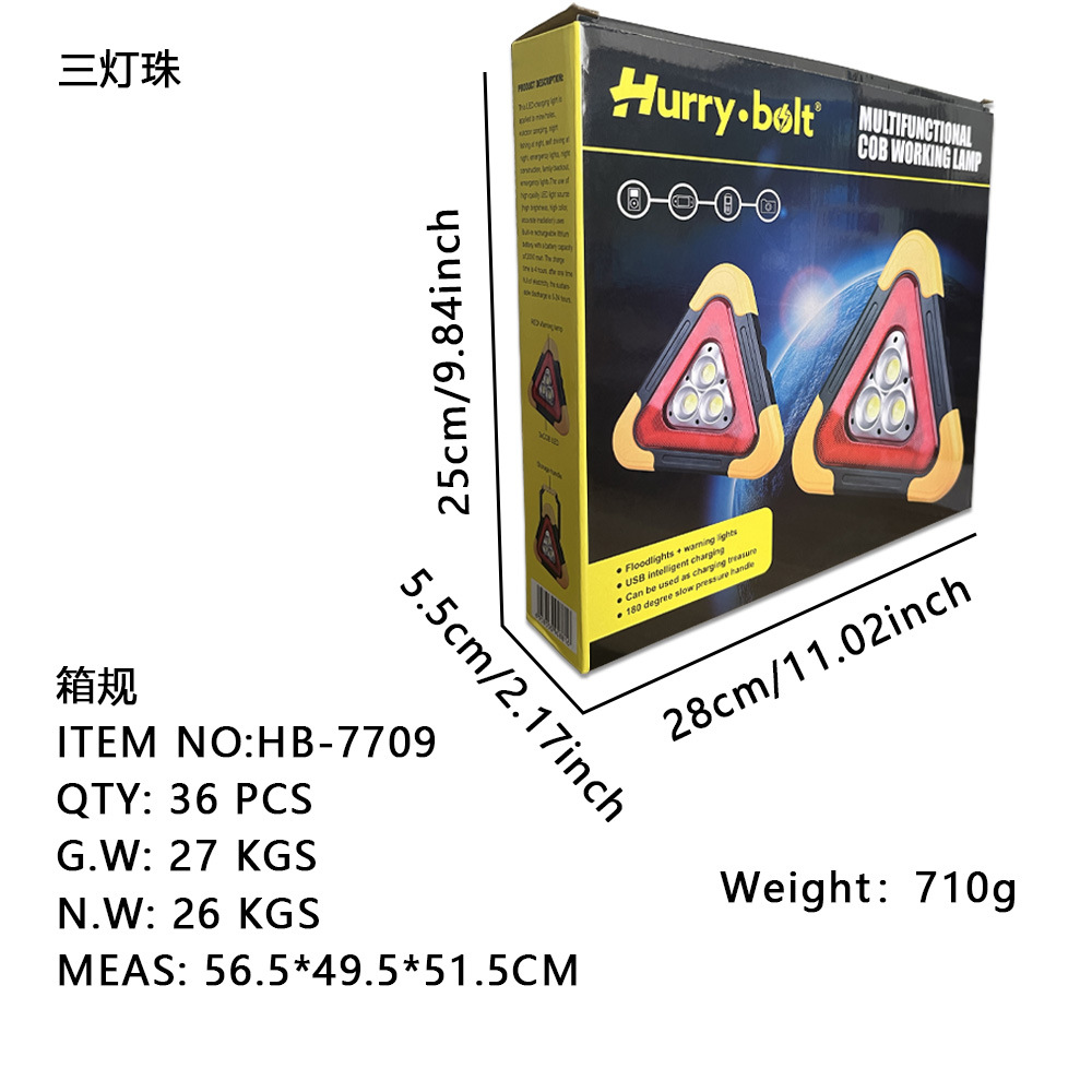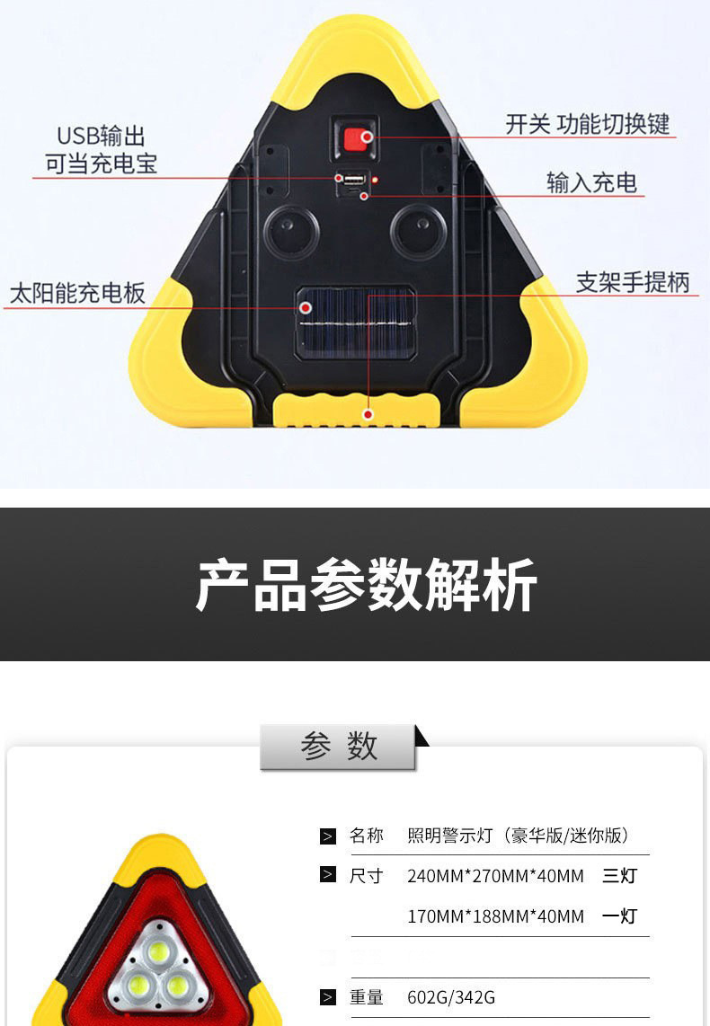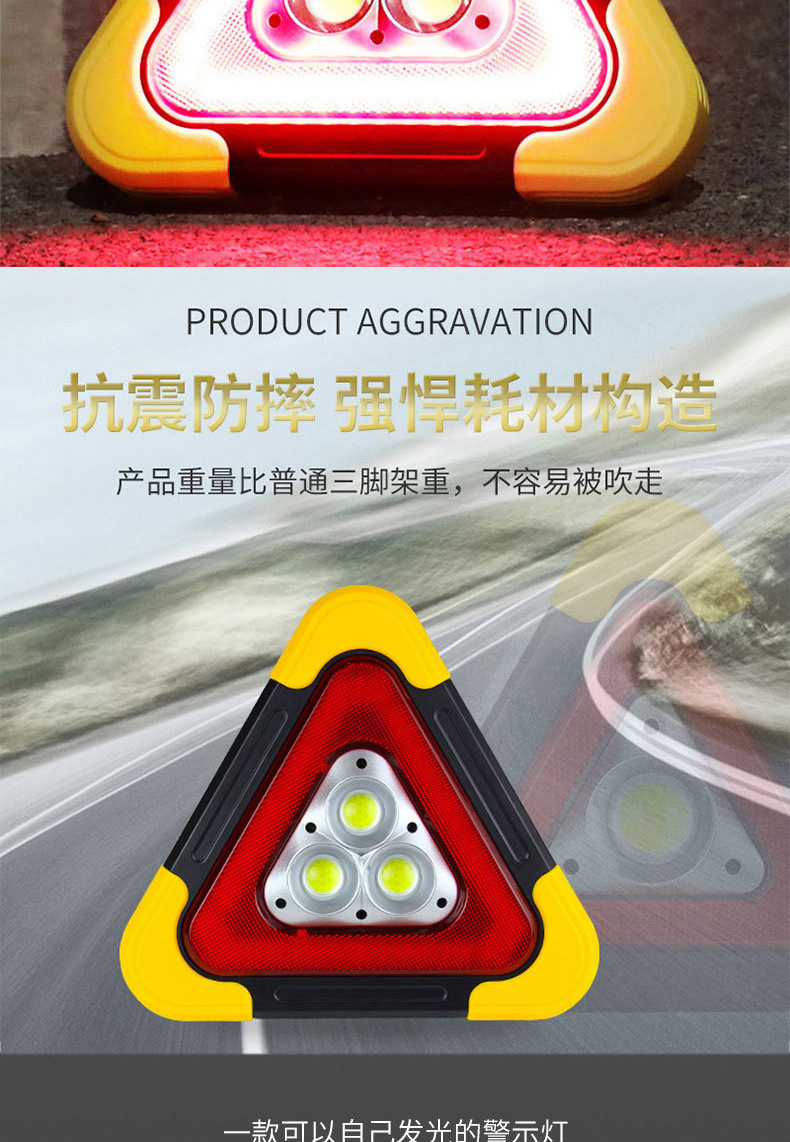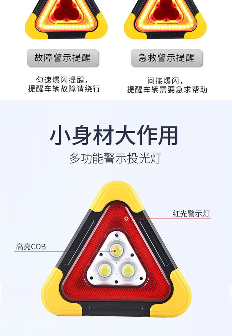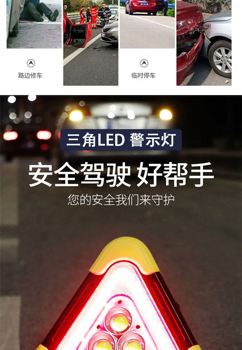 삼각대 경고등 LED 다기능 자동차 비상등 태양열 충전 자동차 삼각형 안전 경고 표시