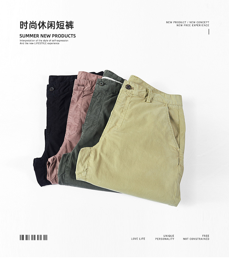여름 신제품 카키 캐주얼 반바지 남성용 슬림핏 트렌디 올매치 5 점 팬츠 한국식 비치팬츠 남성용 패셔너블한 팬츠