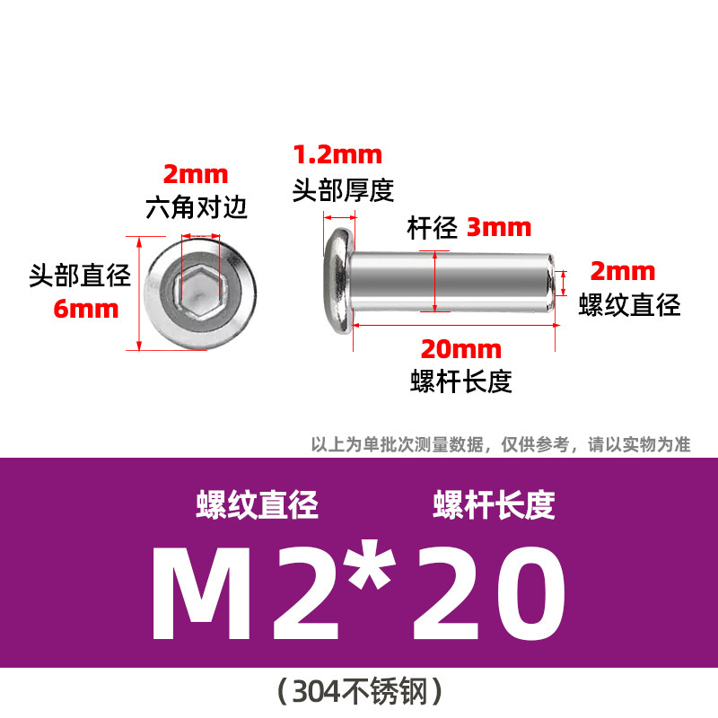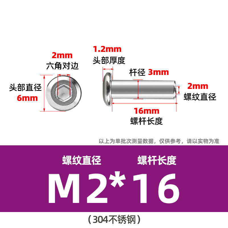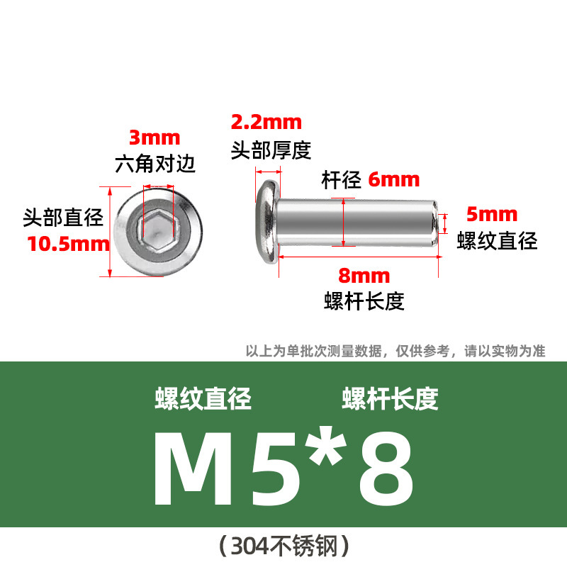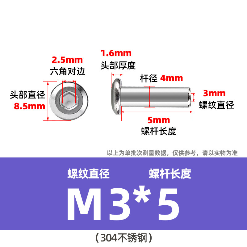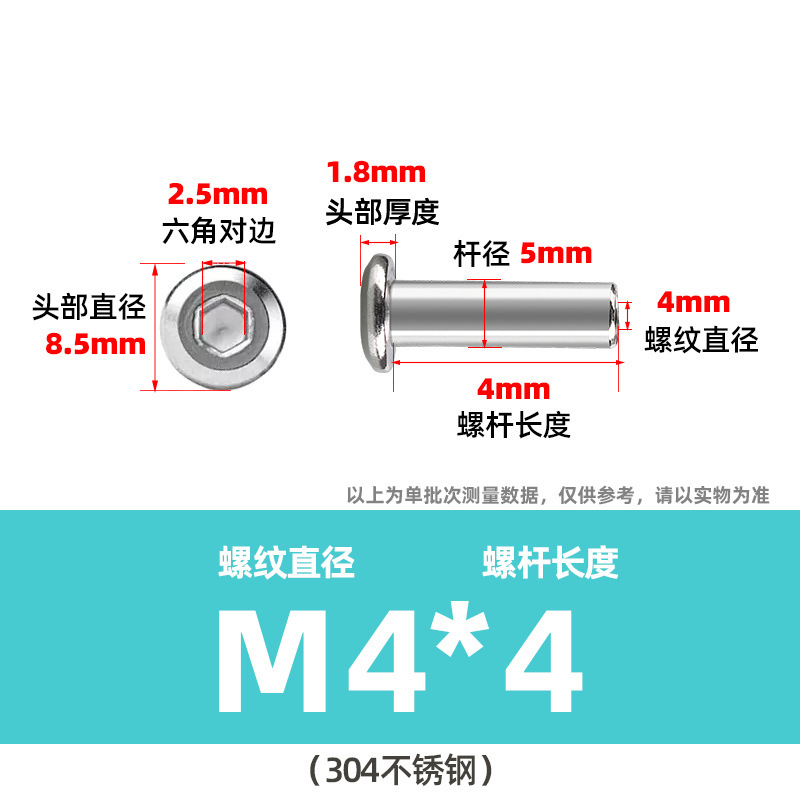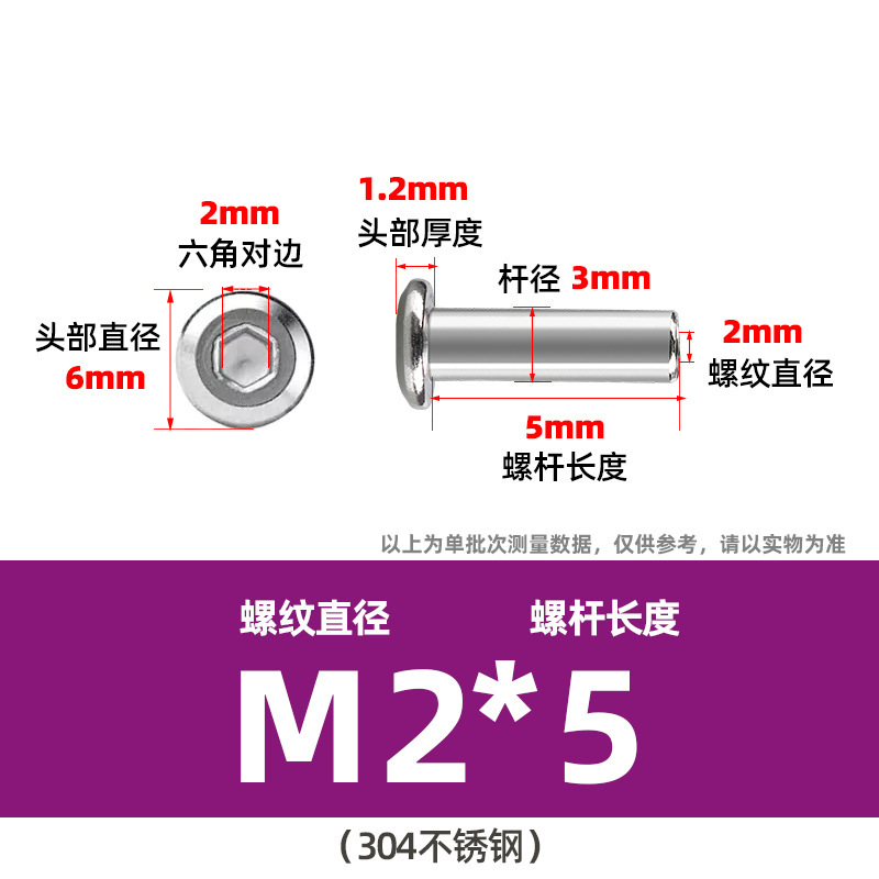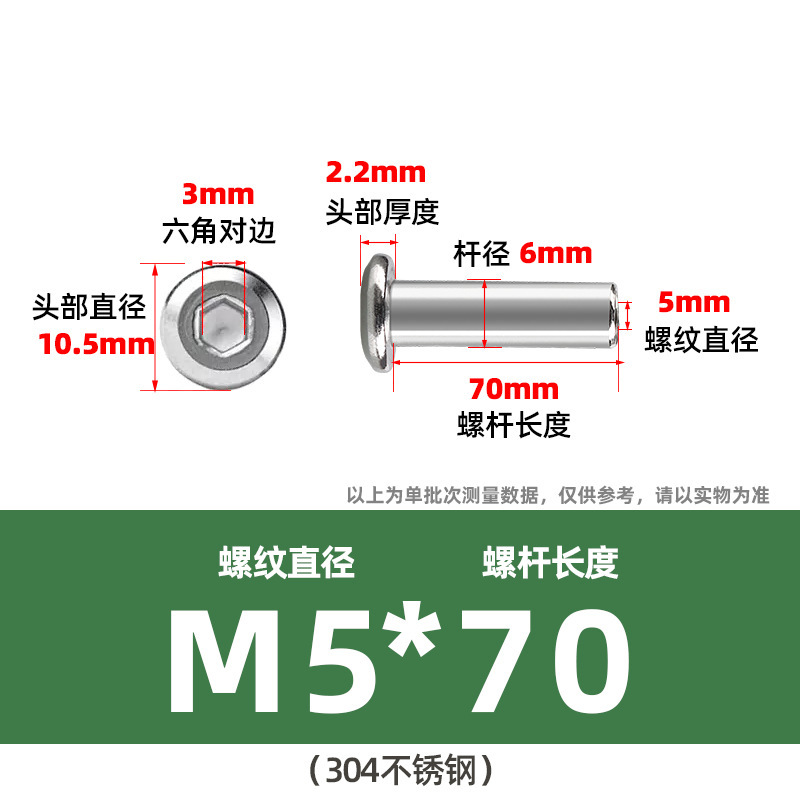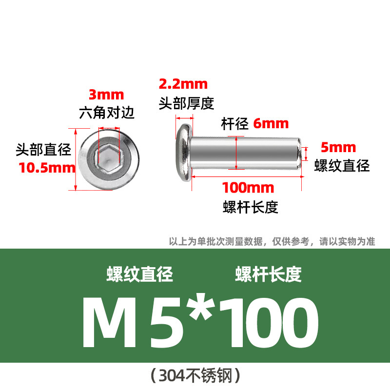 304 스테인레스 스틸 플랫 라운드 헤드 육각형 소켓 여성 스크류 가드 레일 부목 엉덩이 너트 잠금 나사 M2M4M5