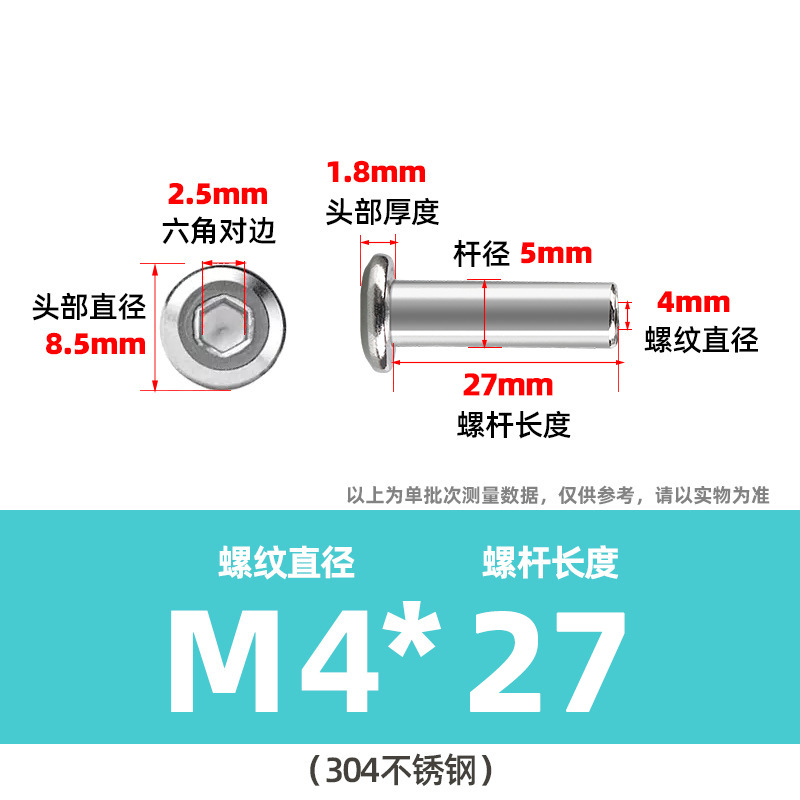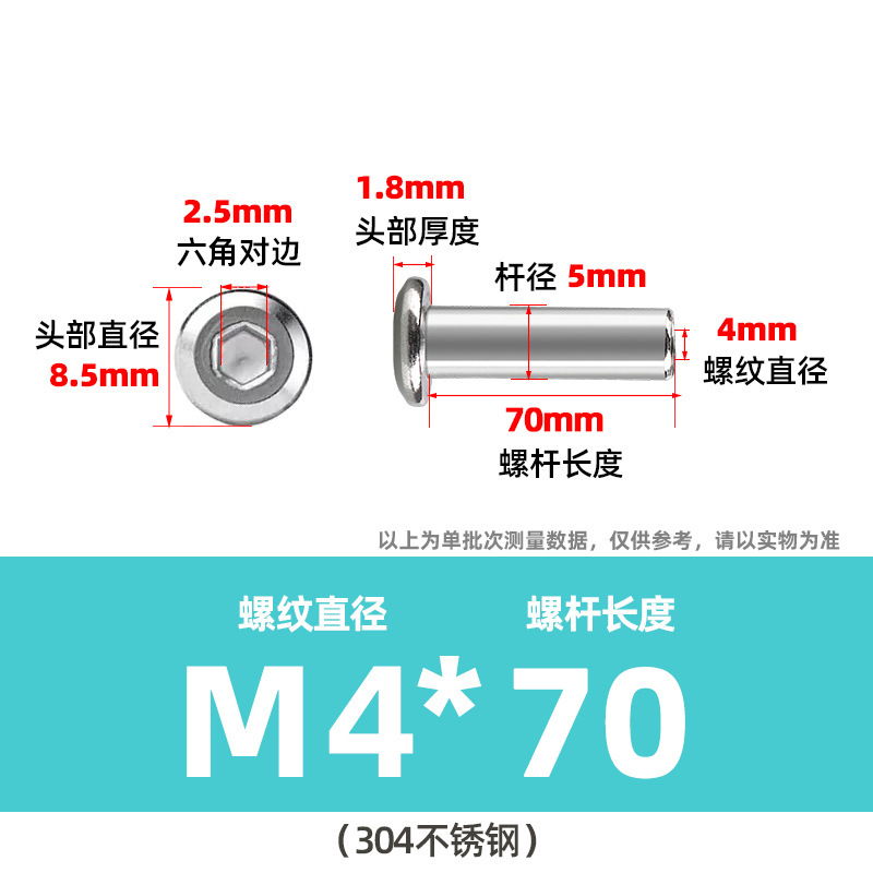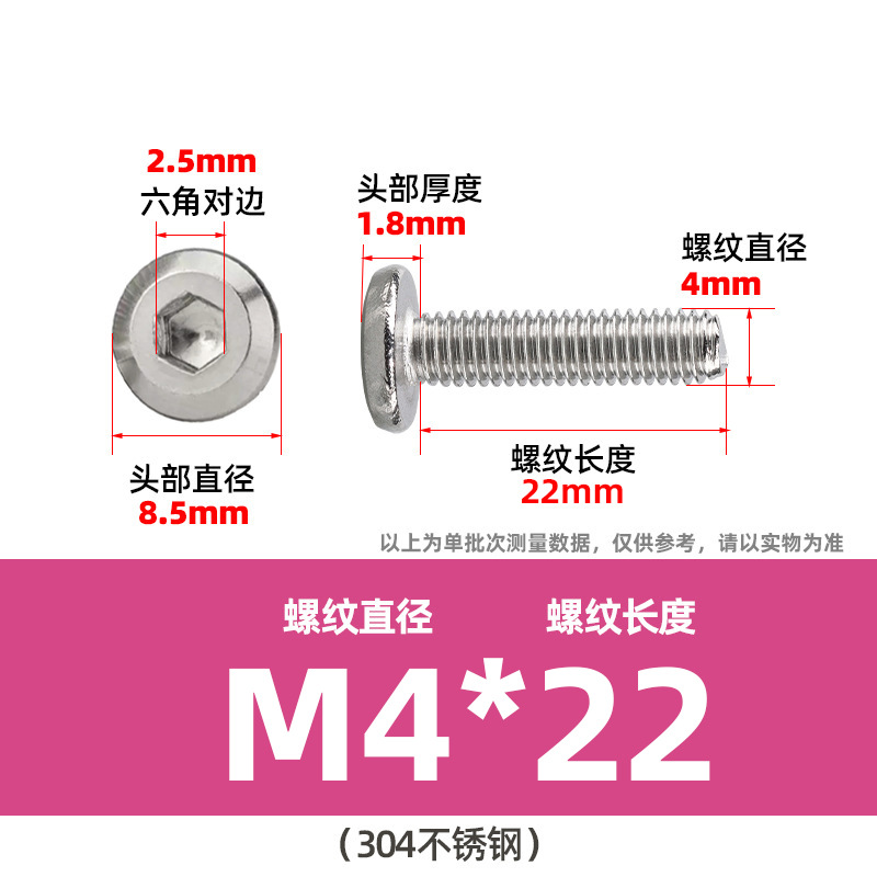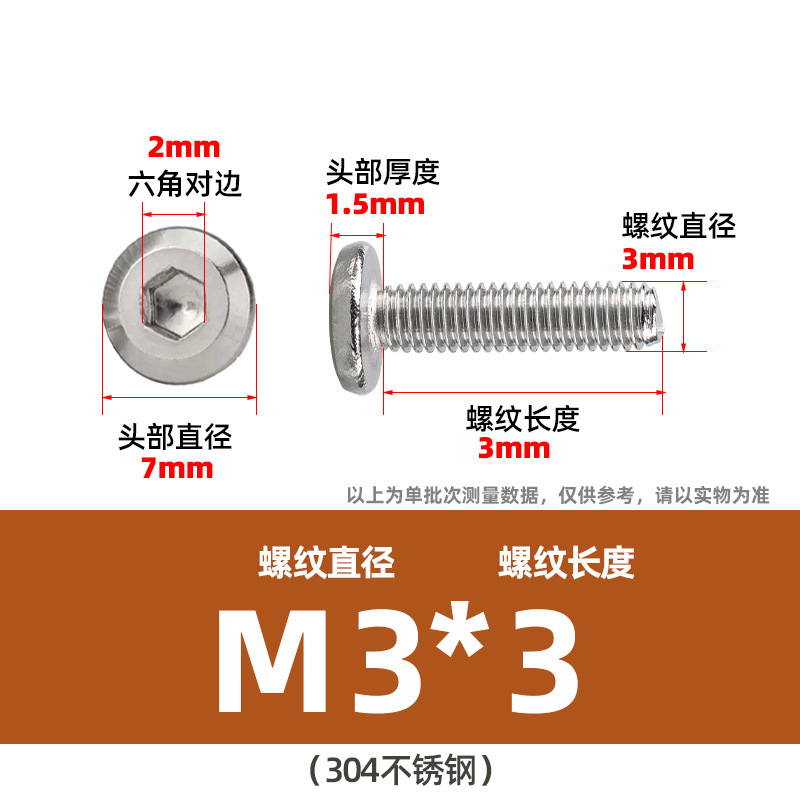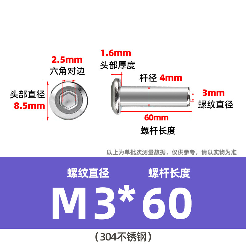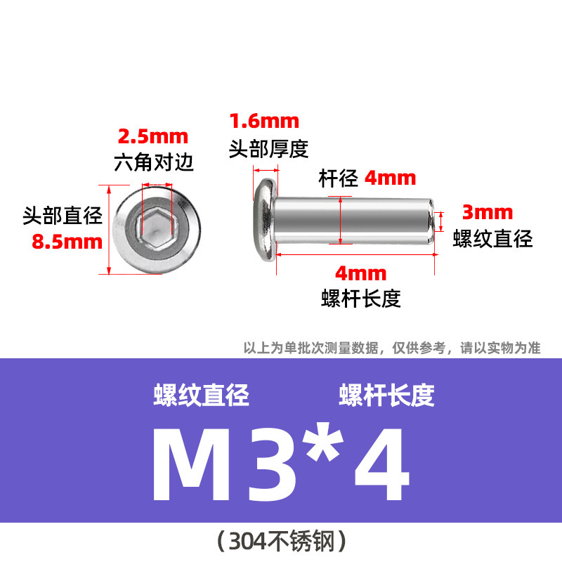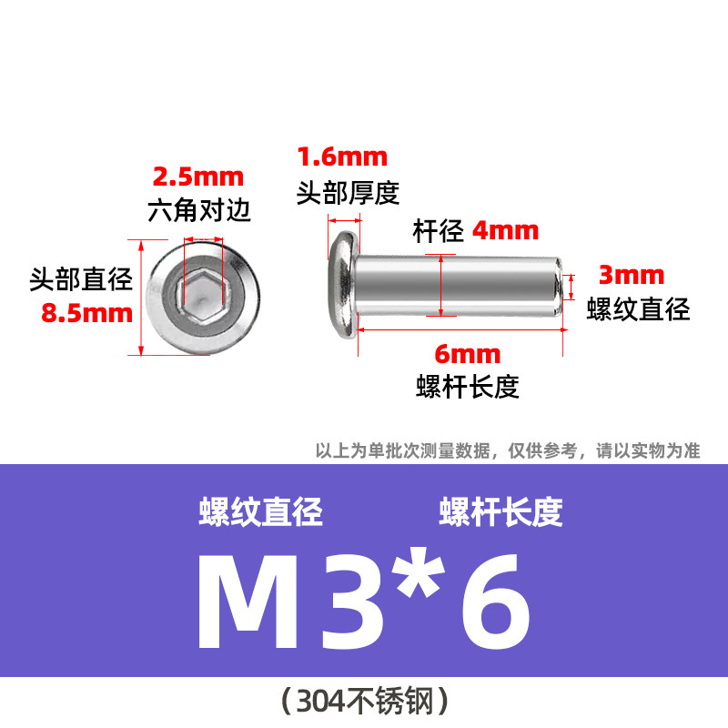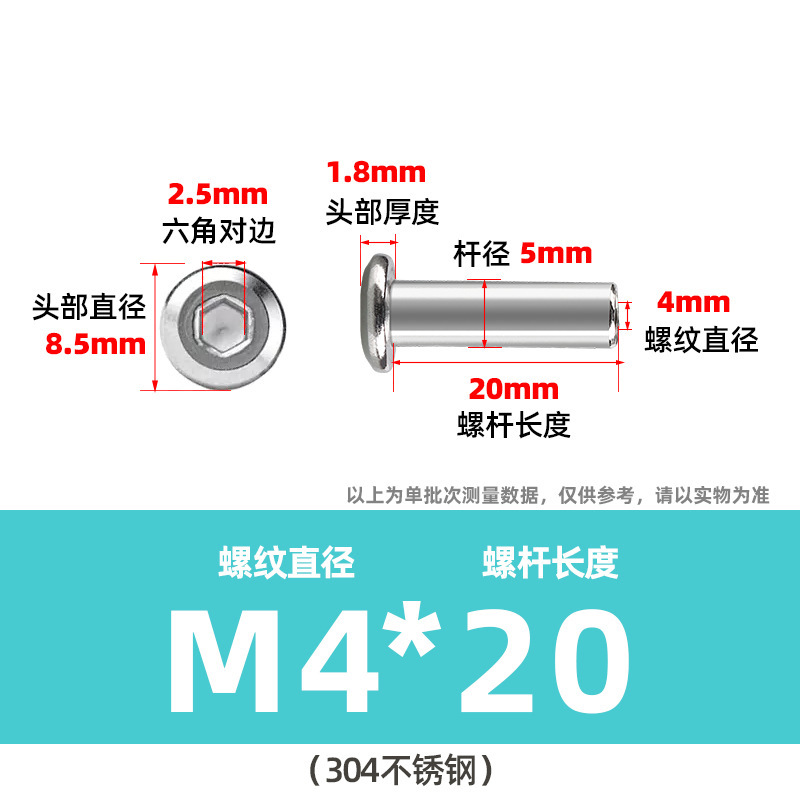 304 스테인레스 스틸 플랫 라운드 헤드 육각형 소켓 여성 스크류 가드 레일 부목 엉덩이 너트 잠금 나사 M2M4M5