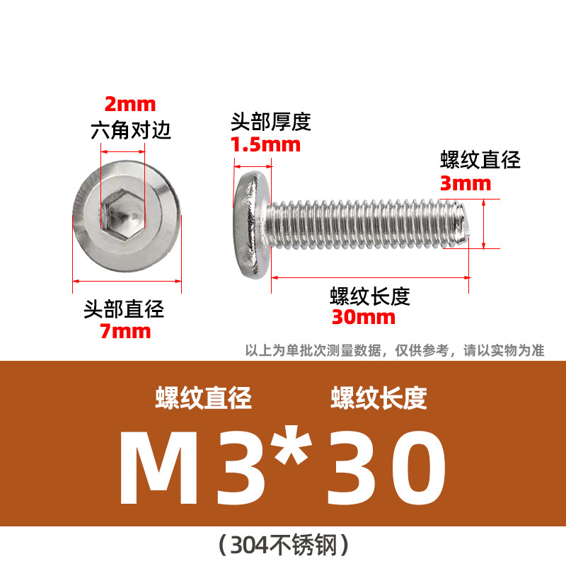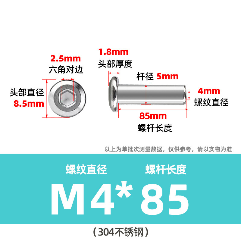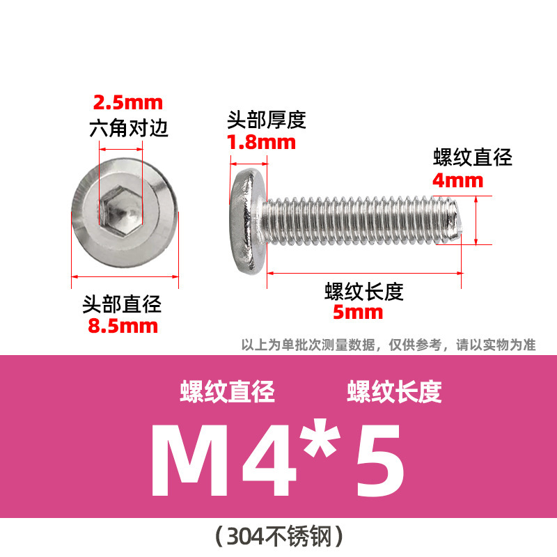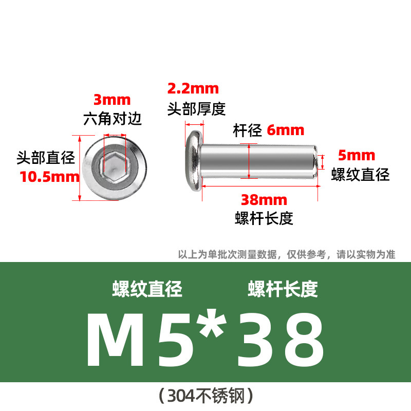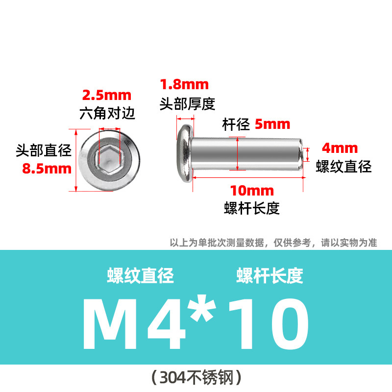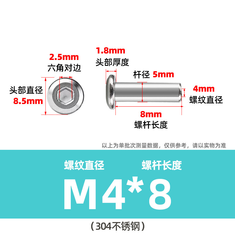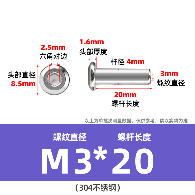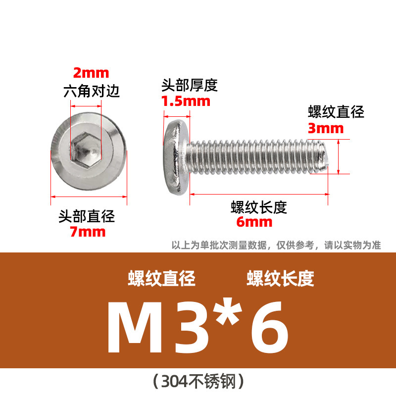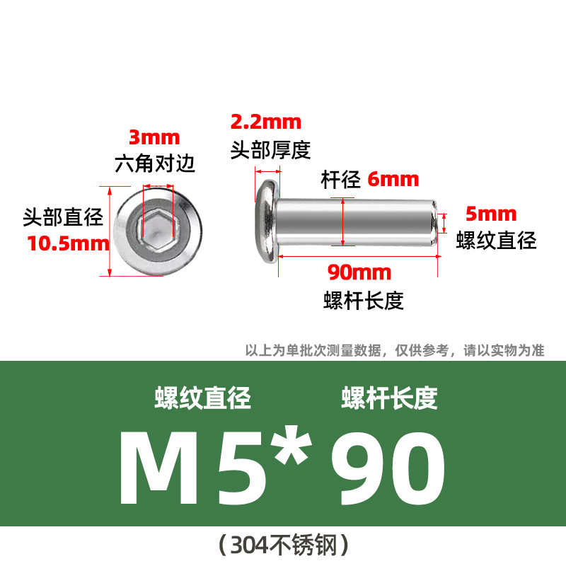304 스테인레스 스틸 플랫 라운드 헤드 육각형 소켓 여성 스크류 가드 레일 부목 엉덩이 너트 잠금 나사 M2M4M5