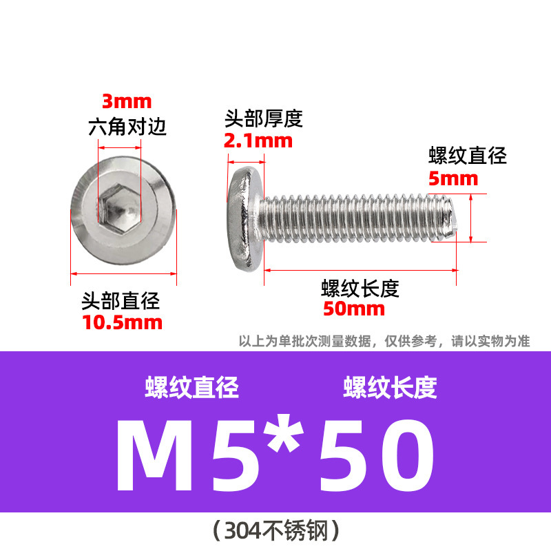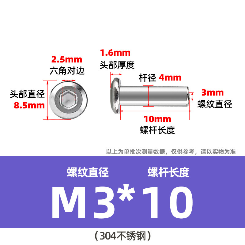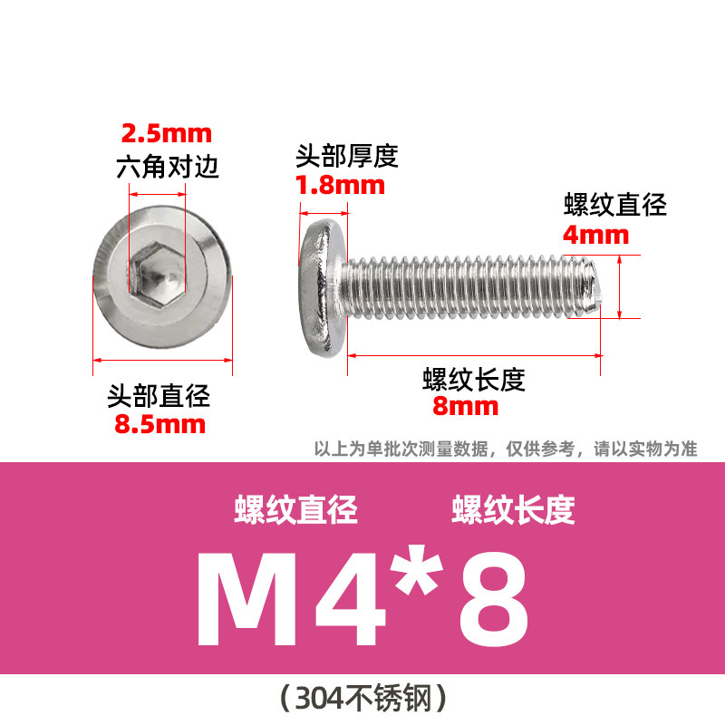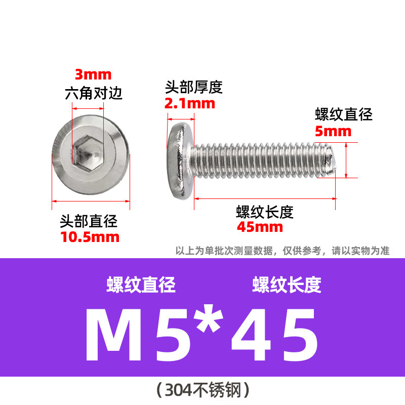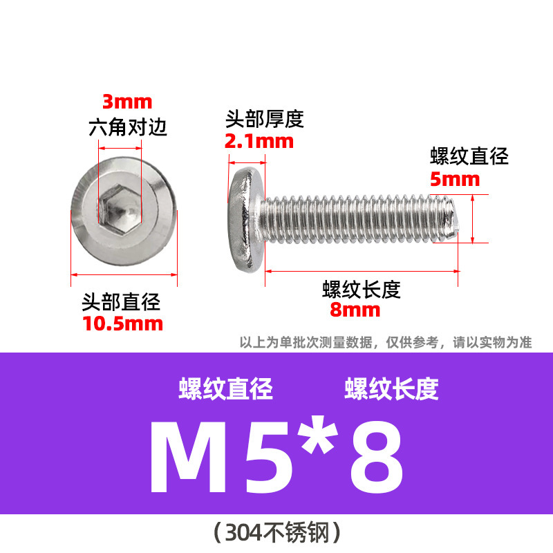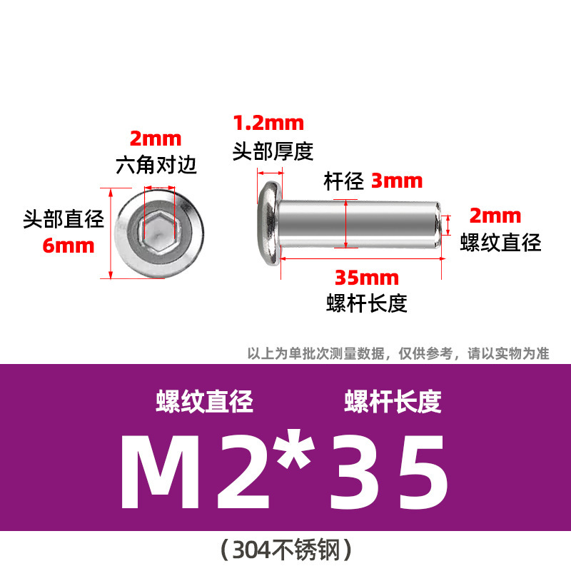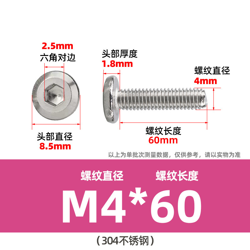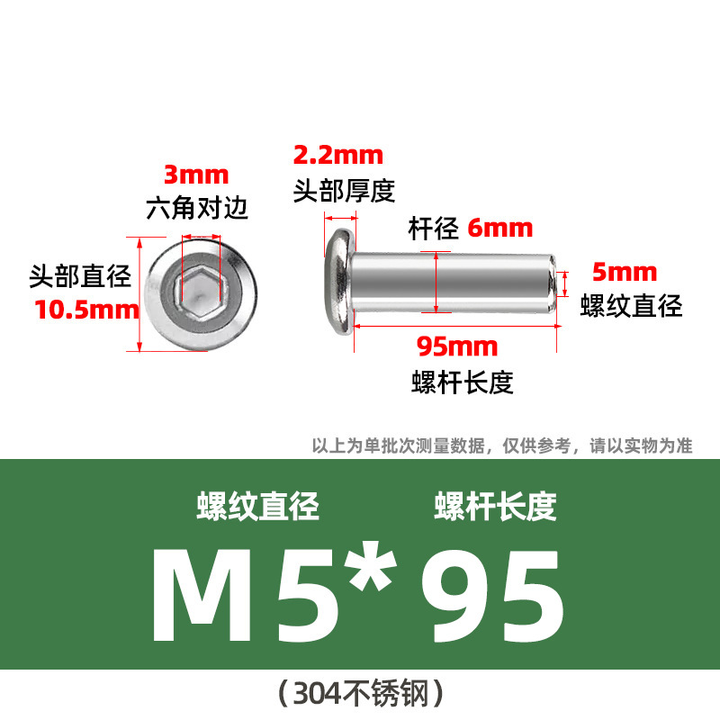 304 스테인레스 스틸 플랫 라운드 헤드 육각형 소켓 여성 스크류 가드 레일 부목 엉덩이 너트 잠금 나사 M2M4M5
