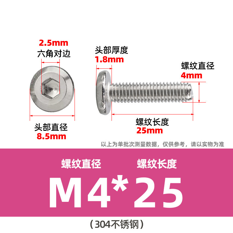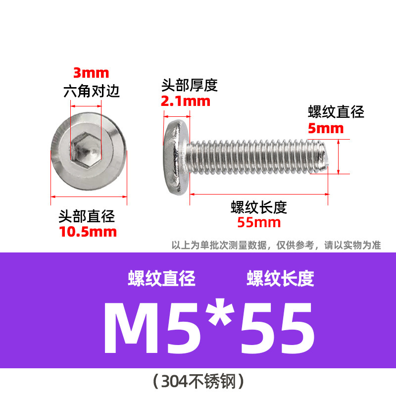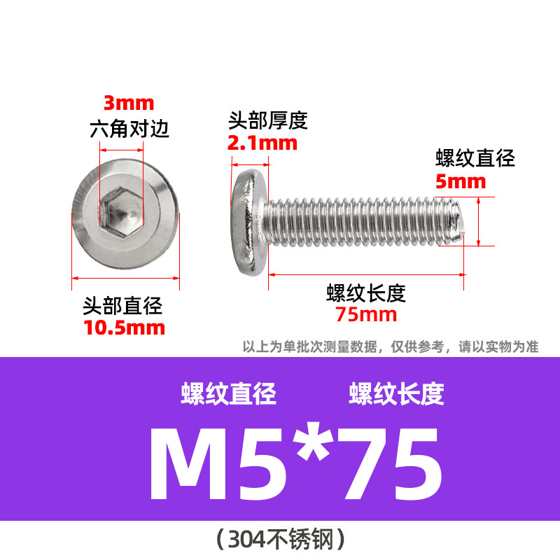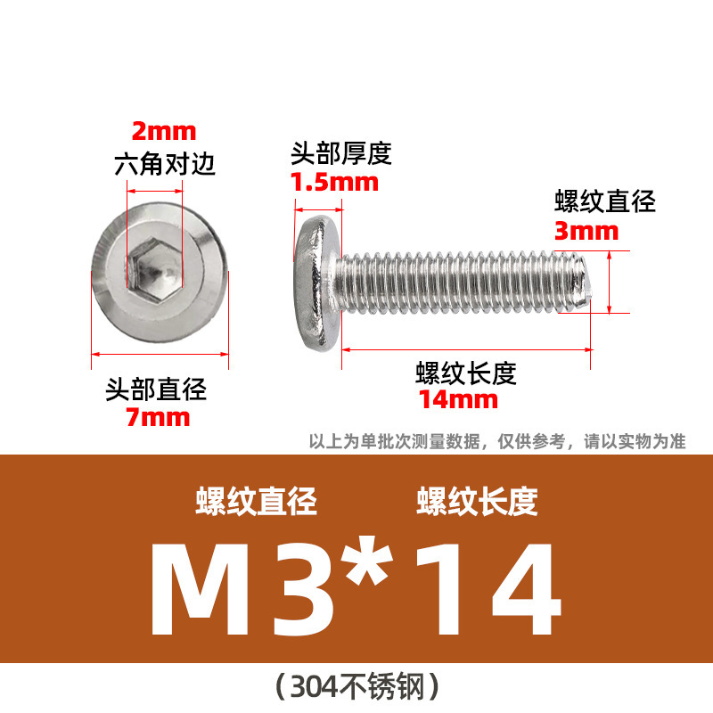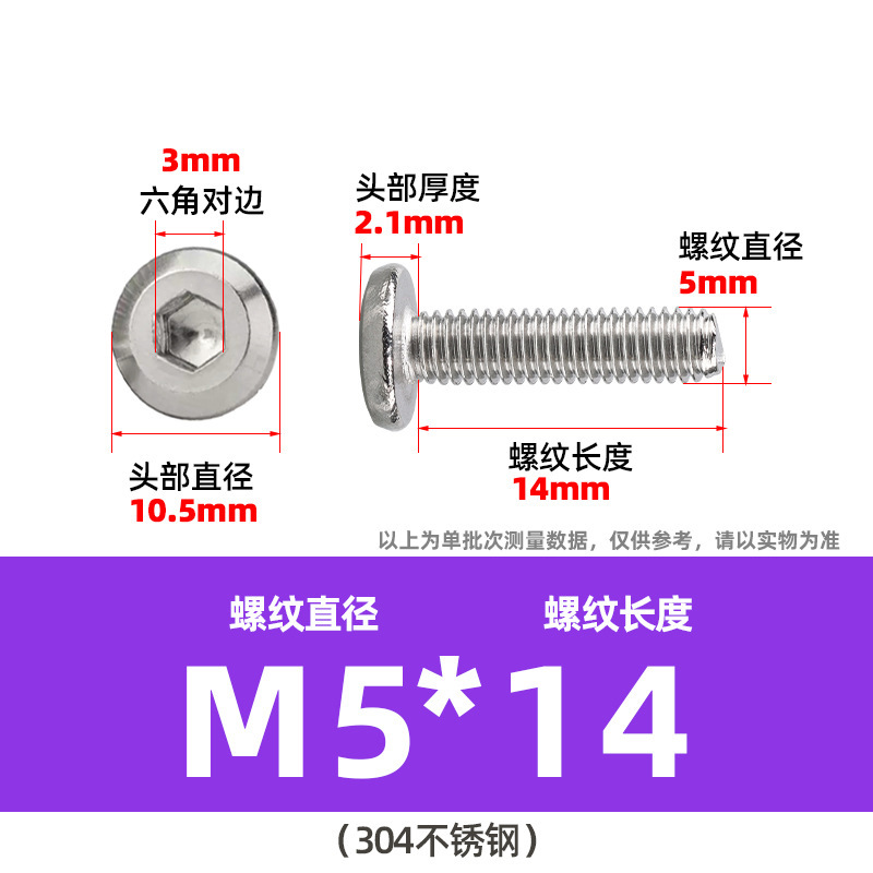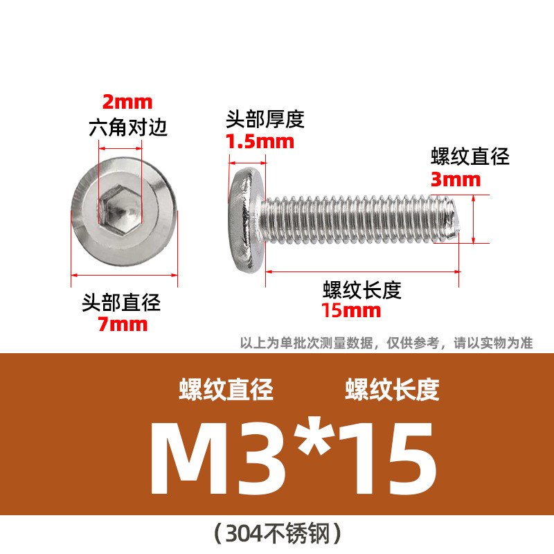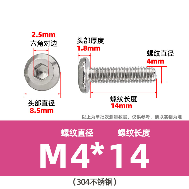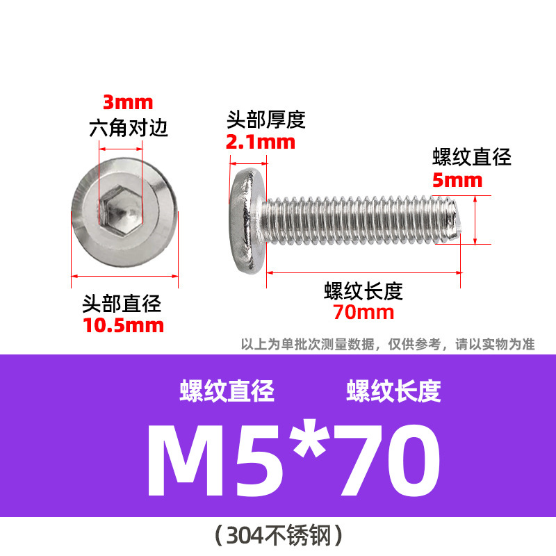 304 스테인레스 스틸 플랫 라운드 헤드 육각형 소켓 여성 스크류 가드 레일 부목 엉덩이 너트 잠금 나사 M2M4M5