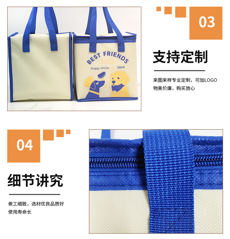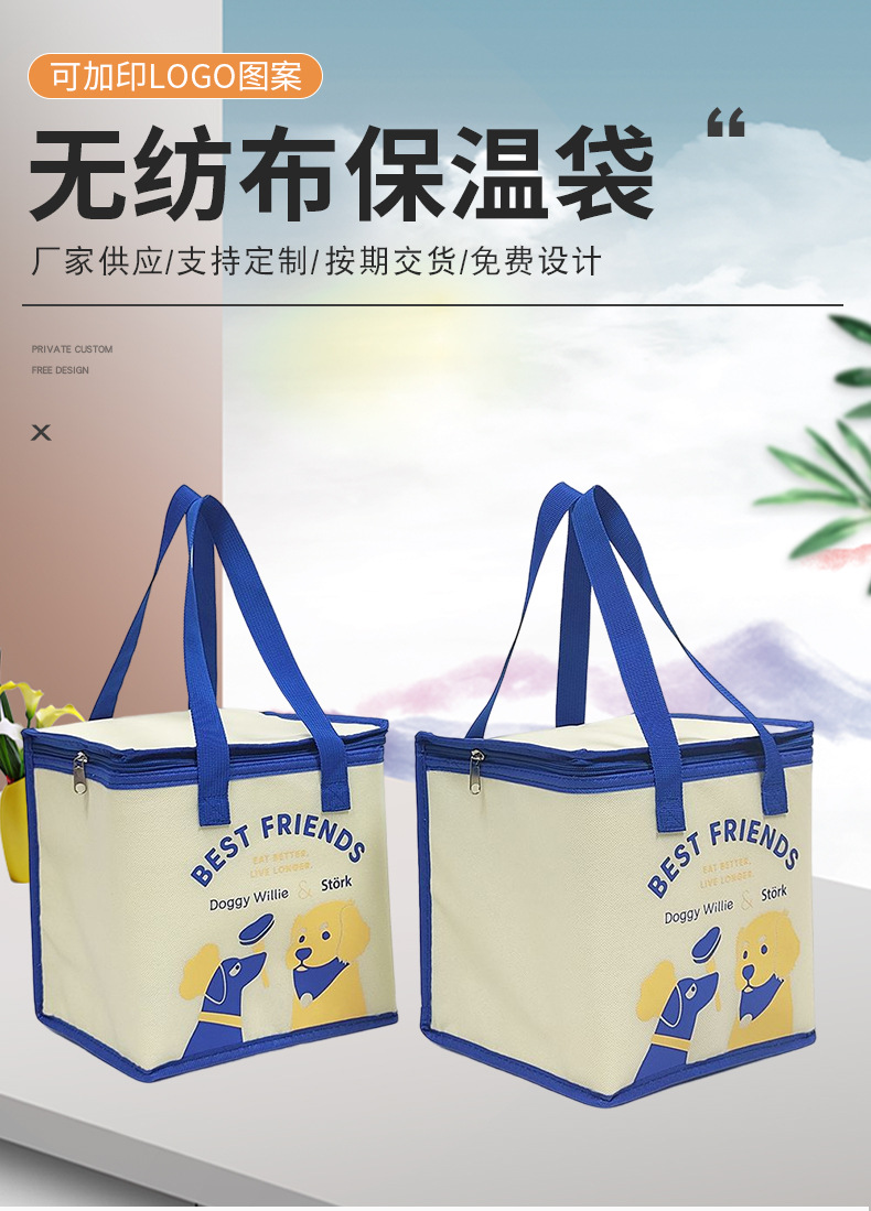 휴대용 부직포 열 가방 인쇄 로고 우유 차 테이크 아웃 해산물 음식 열 가방 아이스 백스토어 가기