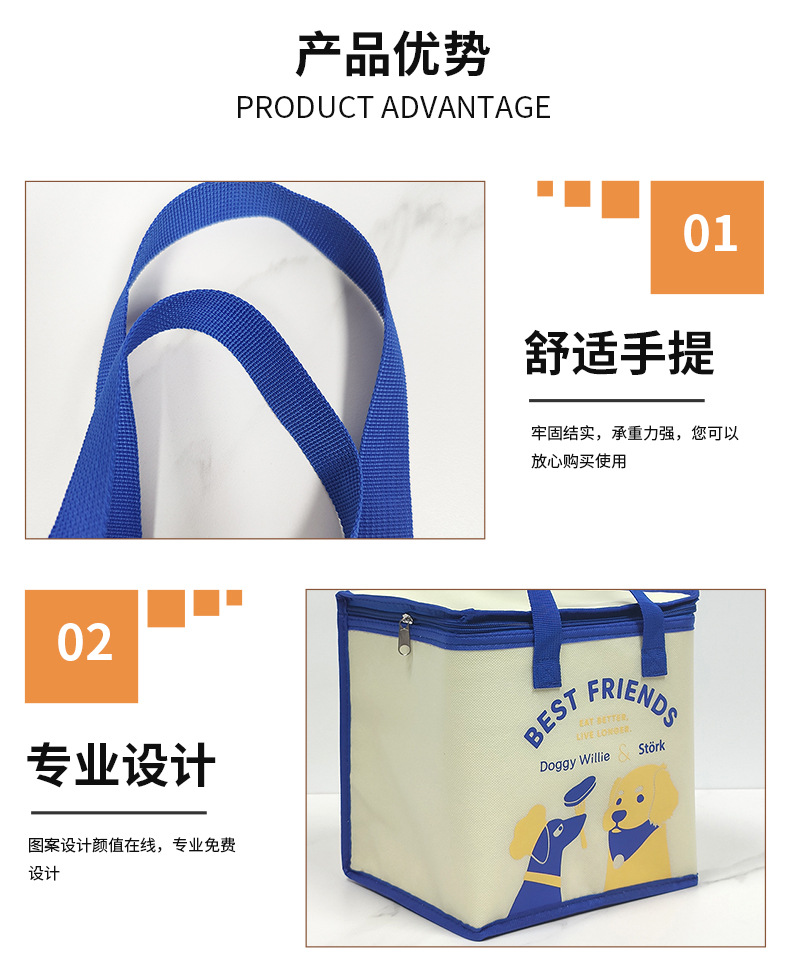 휴대용 부직포 열 가방 인쇄 로고 우유 차 테이크 아웃 해산물 음식 열 가방 아이스 백