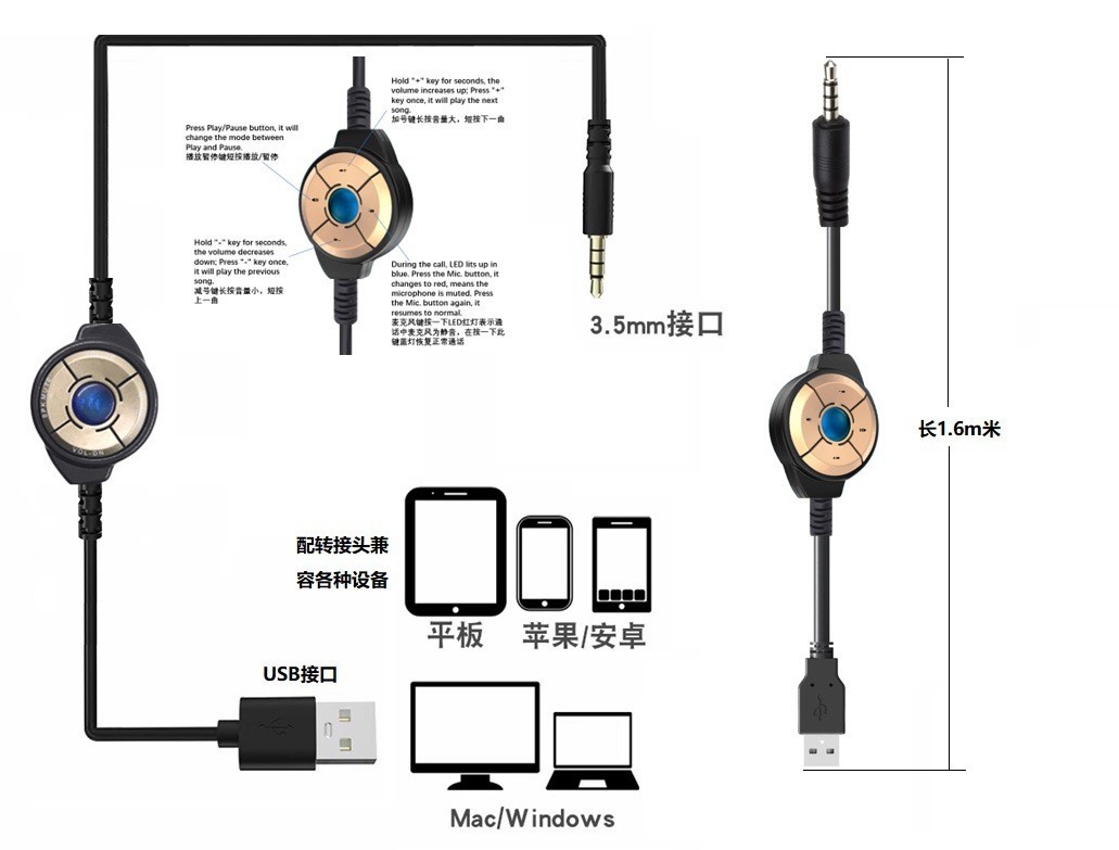 • 1.35m 원형 포트를 중앙 제어 기능이 있는 USB로 연결