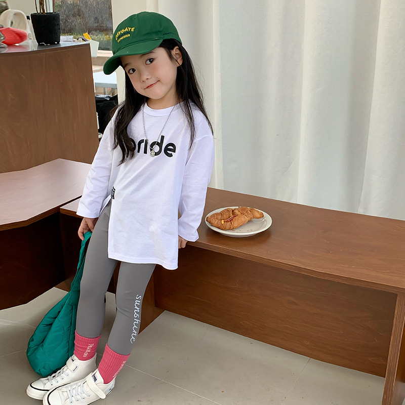 여자 바닥 셔츠 봄과 가을 2025 새로운 어린이 유행 슬릿 티셔츠 어린 소녀 아기 봄 긴팔 티셔츠스토어 가기