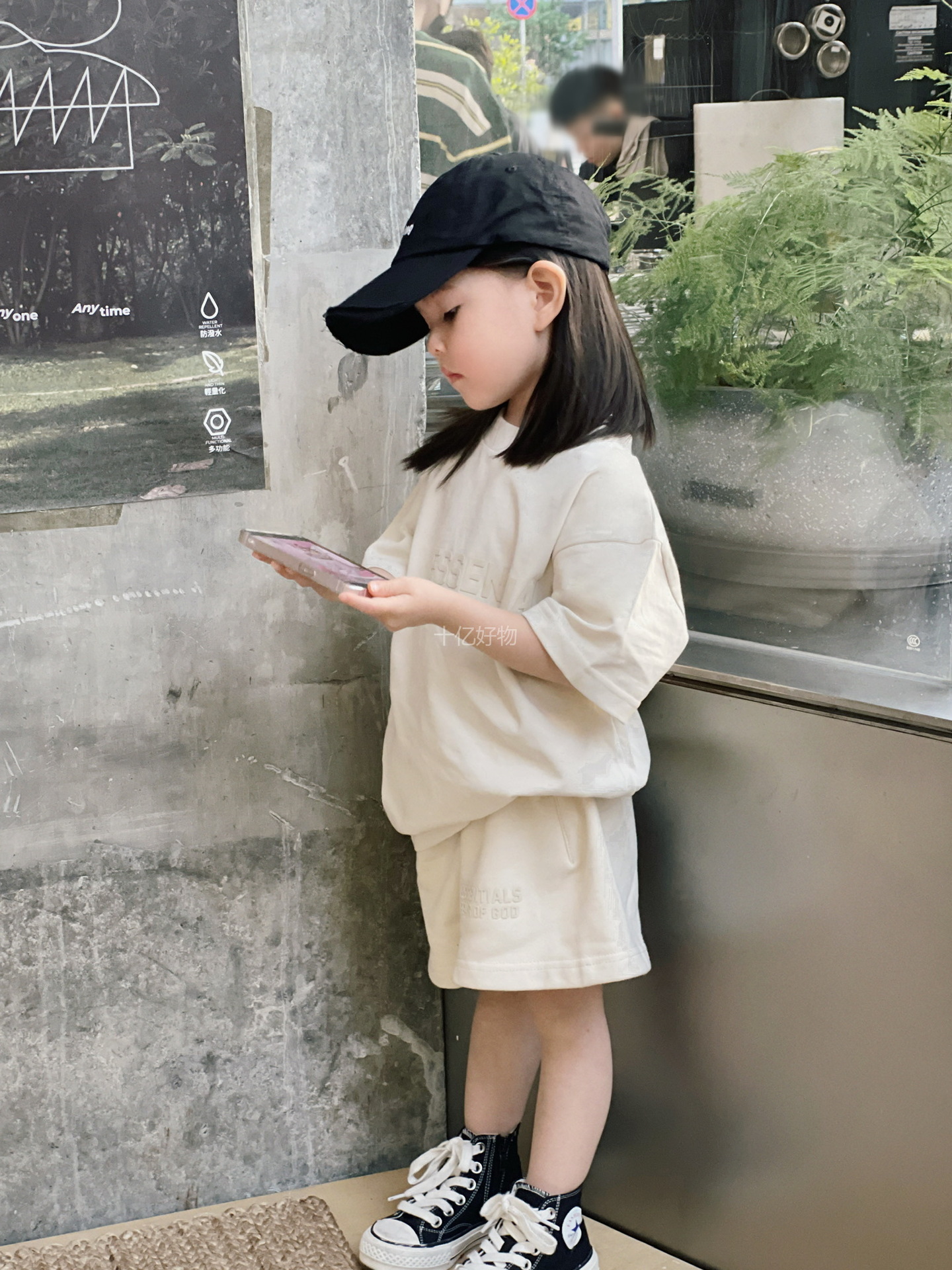 필수품 어린이 23ss 새로운 안개 소년과 소녀를위한 유럽과 미국 패션 브랜드 아동복 여름 하이 스트리트 순수면 반팔 t스토어 가기