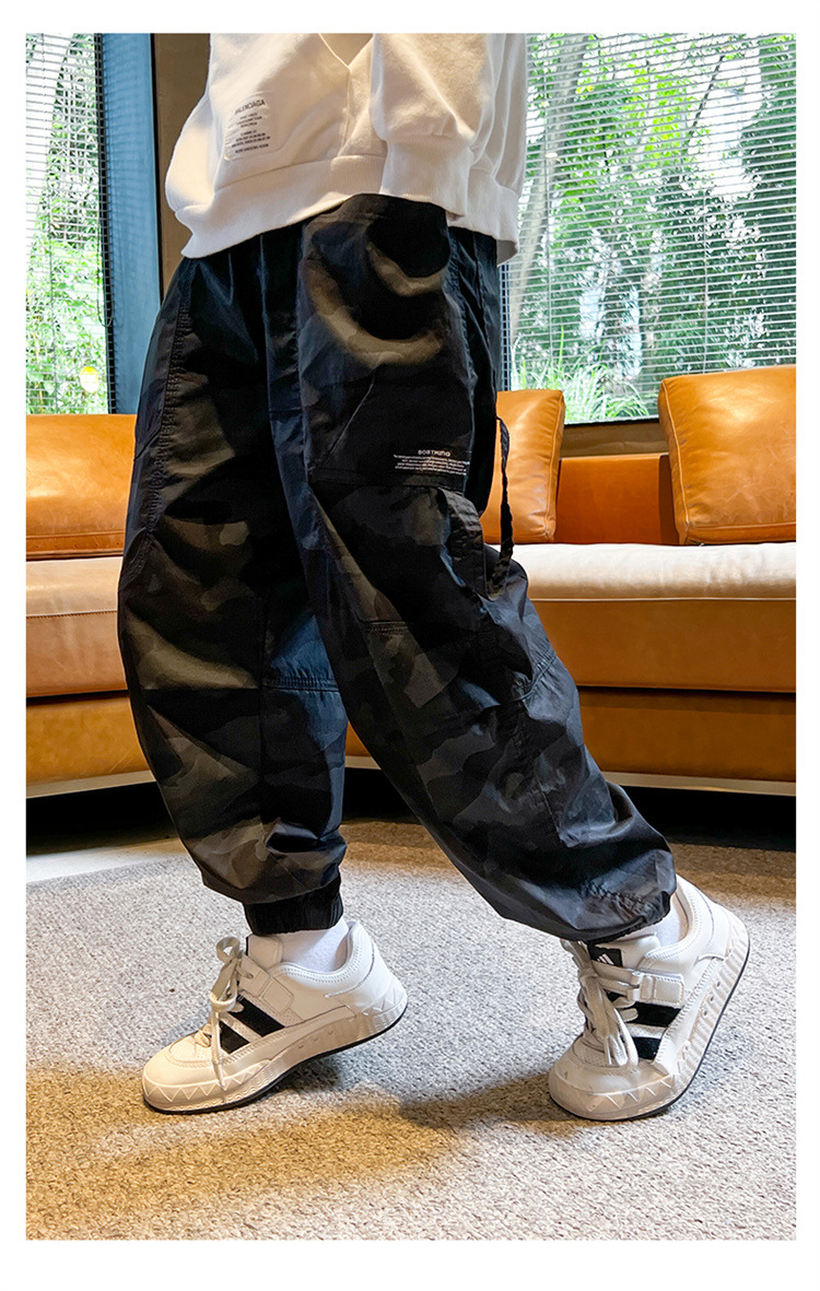 남아 느슨한 위장 바지 2023 가을 새 다리 긴 바지 어린이 대형 어린이 봄과 가을 스포츠 바지스토어 가기