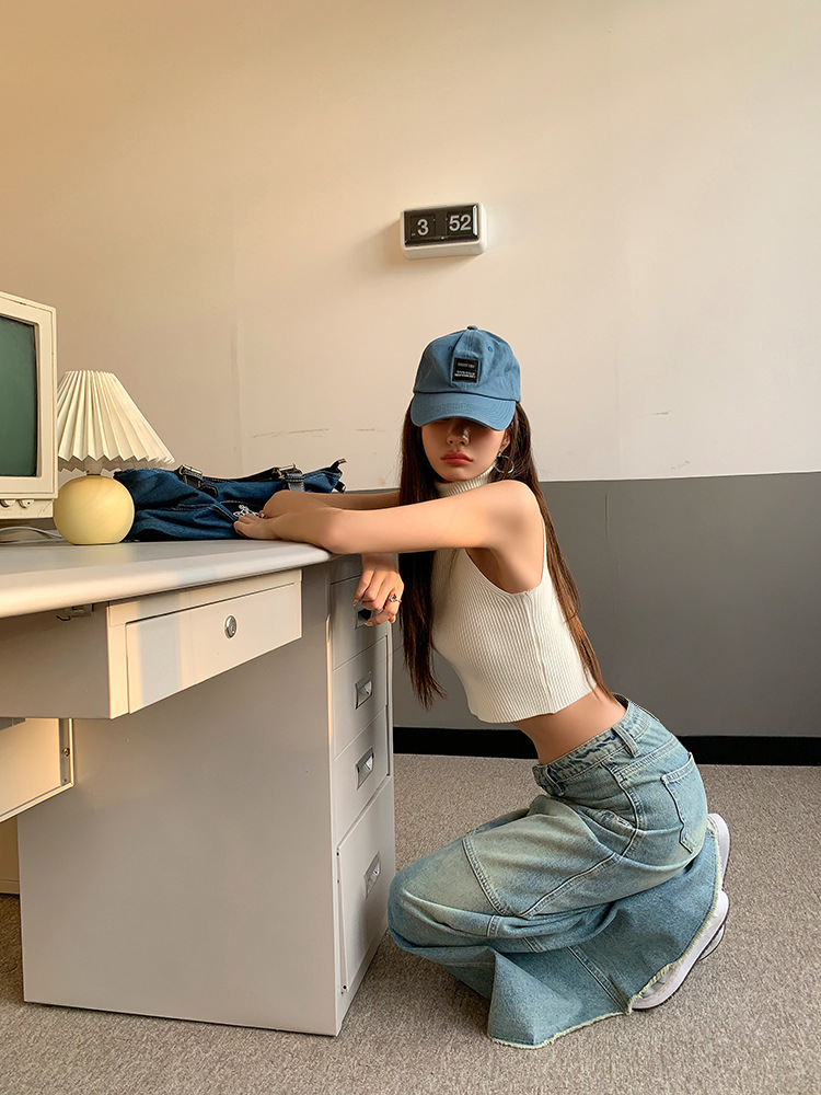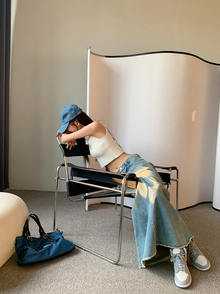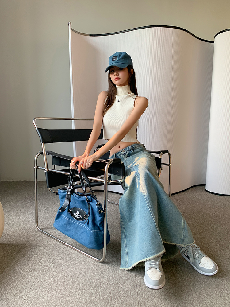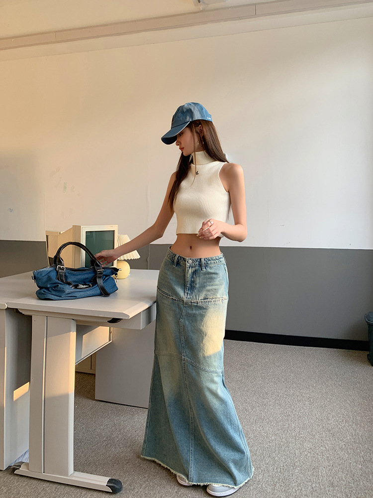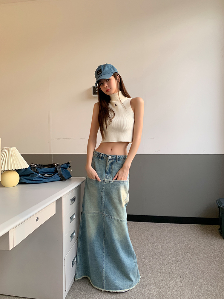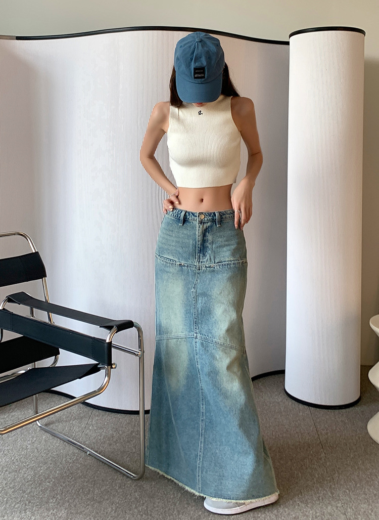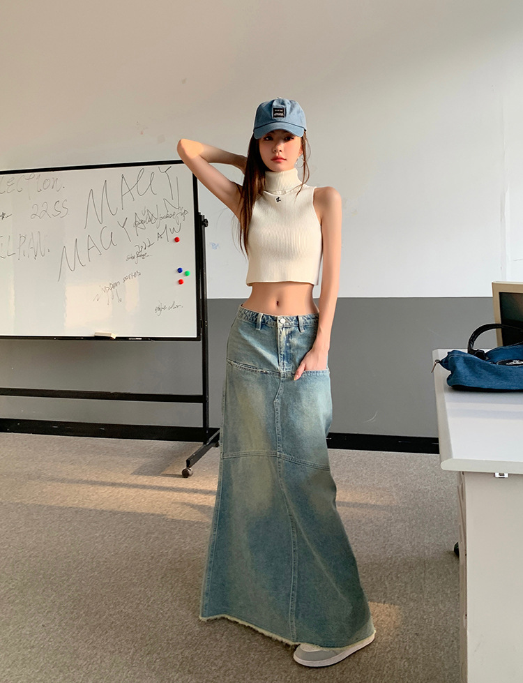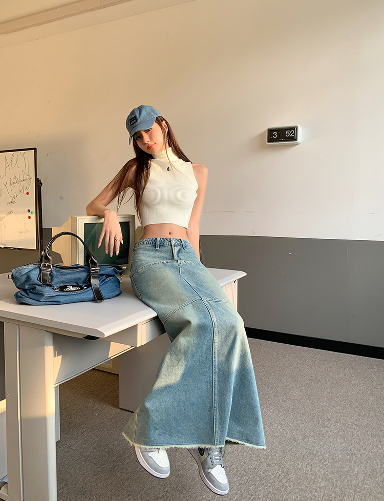 리얼 샷 이른 봄 새로운 디자인 감각 데님 스커트 여성 가방 엉덩이 슬림 피쉬 테일 스커트 포켓 롱 스커트 47169