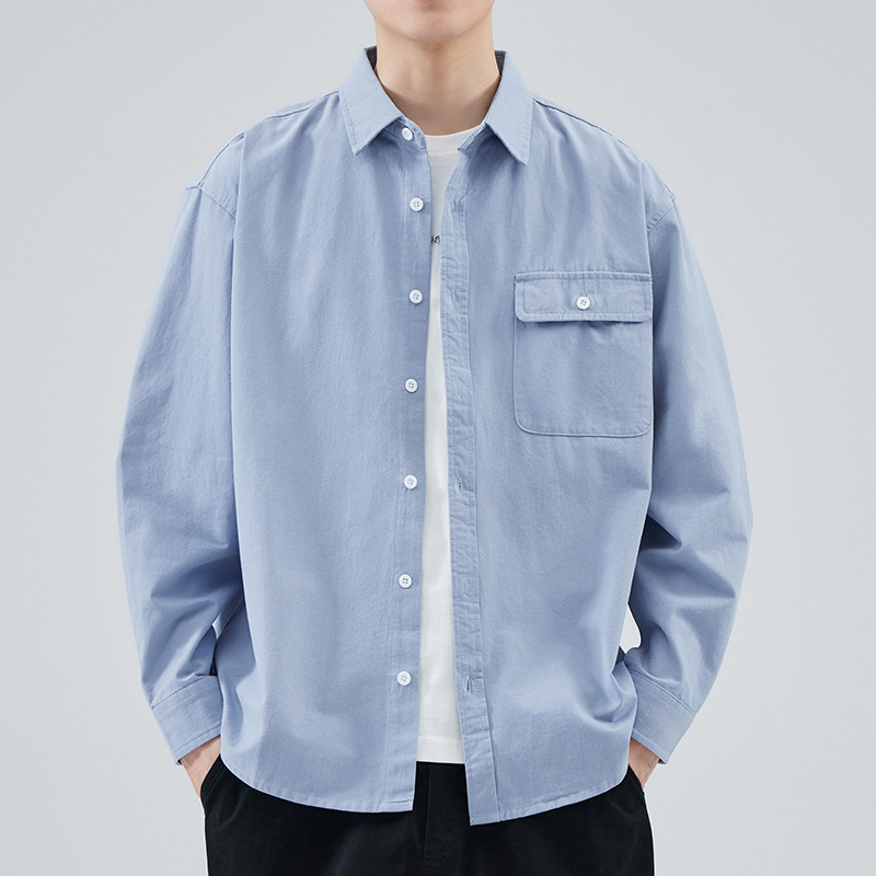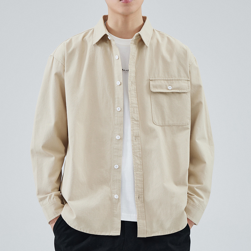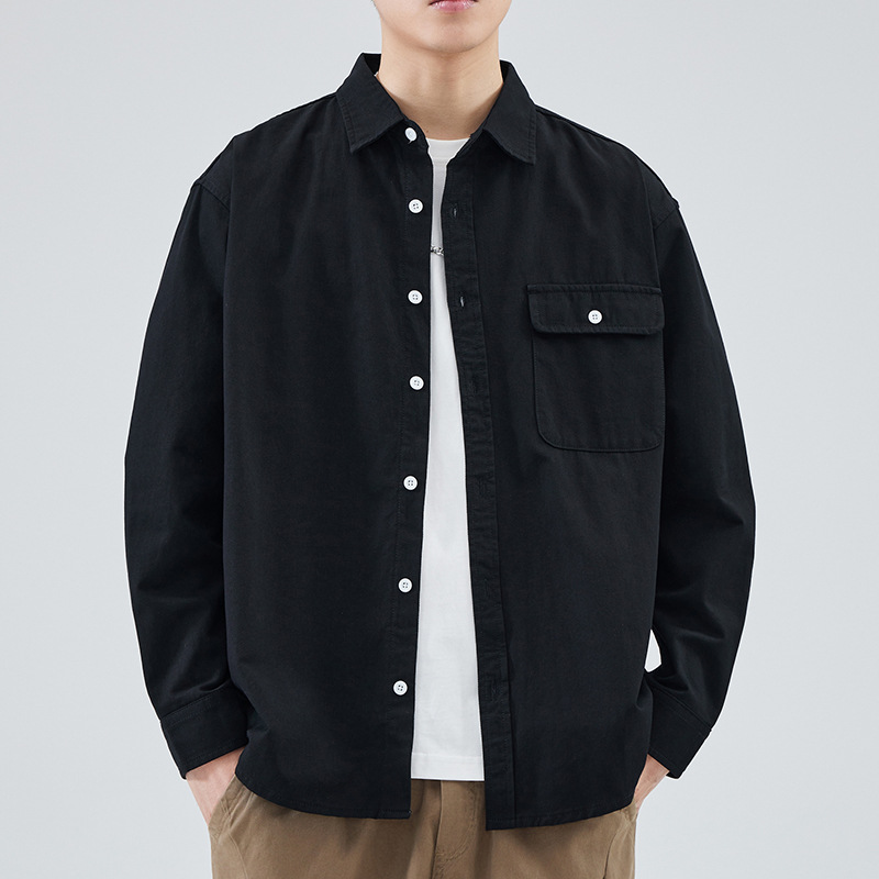 Muqiu 남성 의류 | 가을 신상 아메리칸 솔리드 컬러 긴팔 셔츠 남성 루즈한 복고풍 다용도 캐주얼 셔츠 재킷스토어 가기