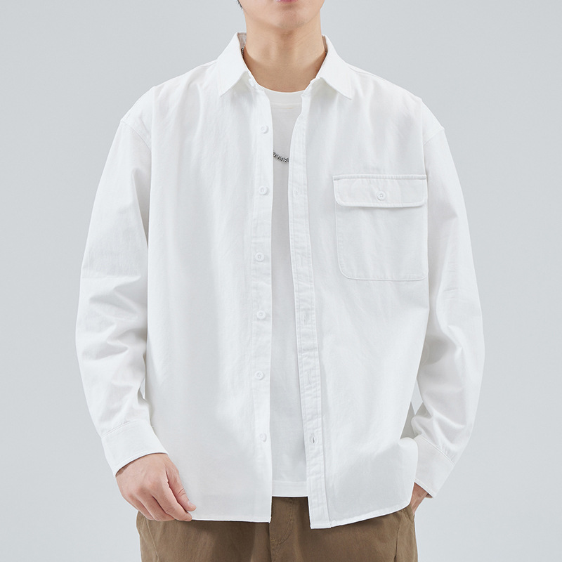 Muqiu 남성 의류 | 가을 신상 아메리칸 솔리드 컬러 긴팔 셔츠 남성 루즈한 복고풍 다용도 캐주얼 셔츠 재킷