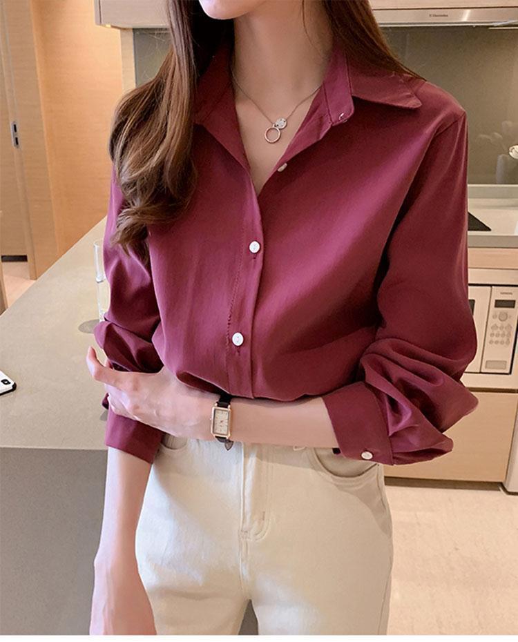 여성용 흰색 셔츠 2025 봄 가을 한국 스타일 디자인 감각 있는 틈새 시장 대형 사이즈 루즈핏 오피스룩 이너웨어 쉬폰 셔츠스토어 가기
