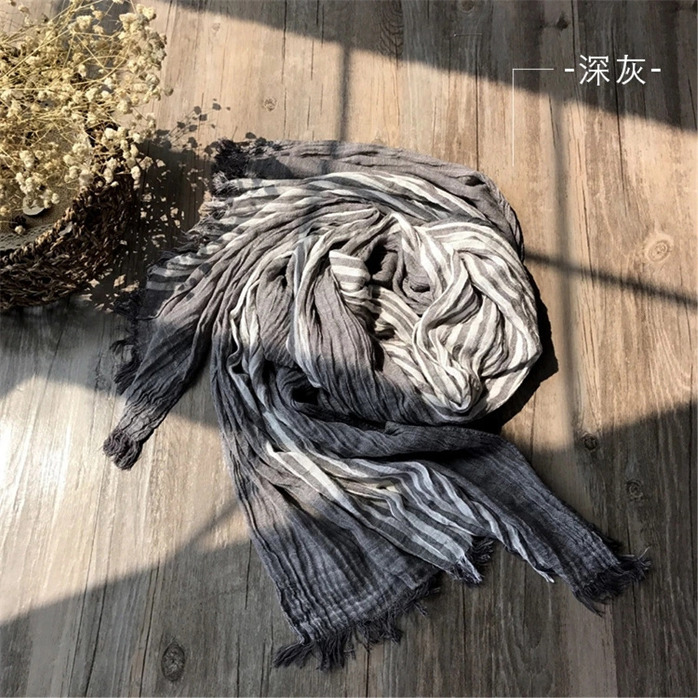 가을과 겨울 스트라이프 대외 무역 남성 스카프 클래식 면과 린넨 스카프 여성용 실크 스카프 새로운 예술적 주름 빈티지 숄