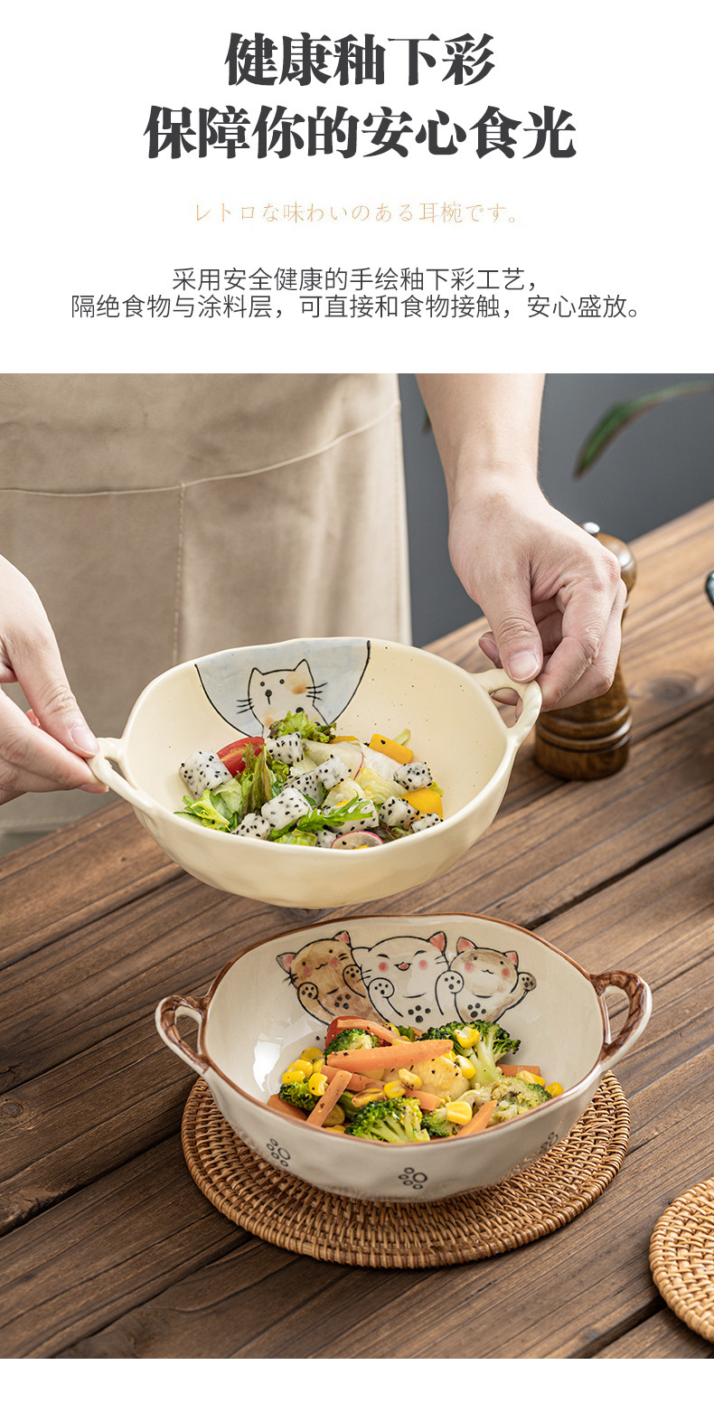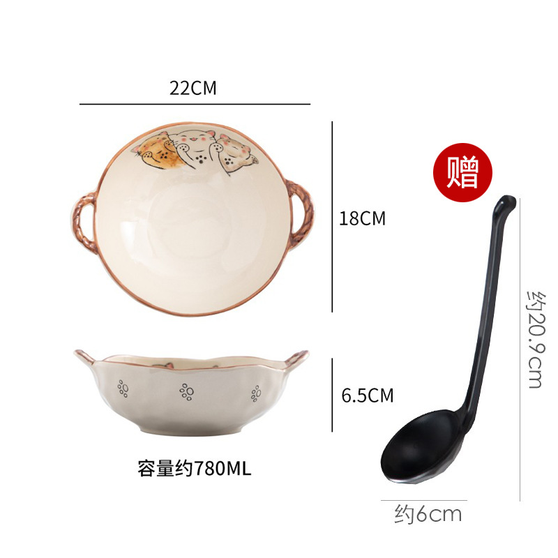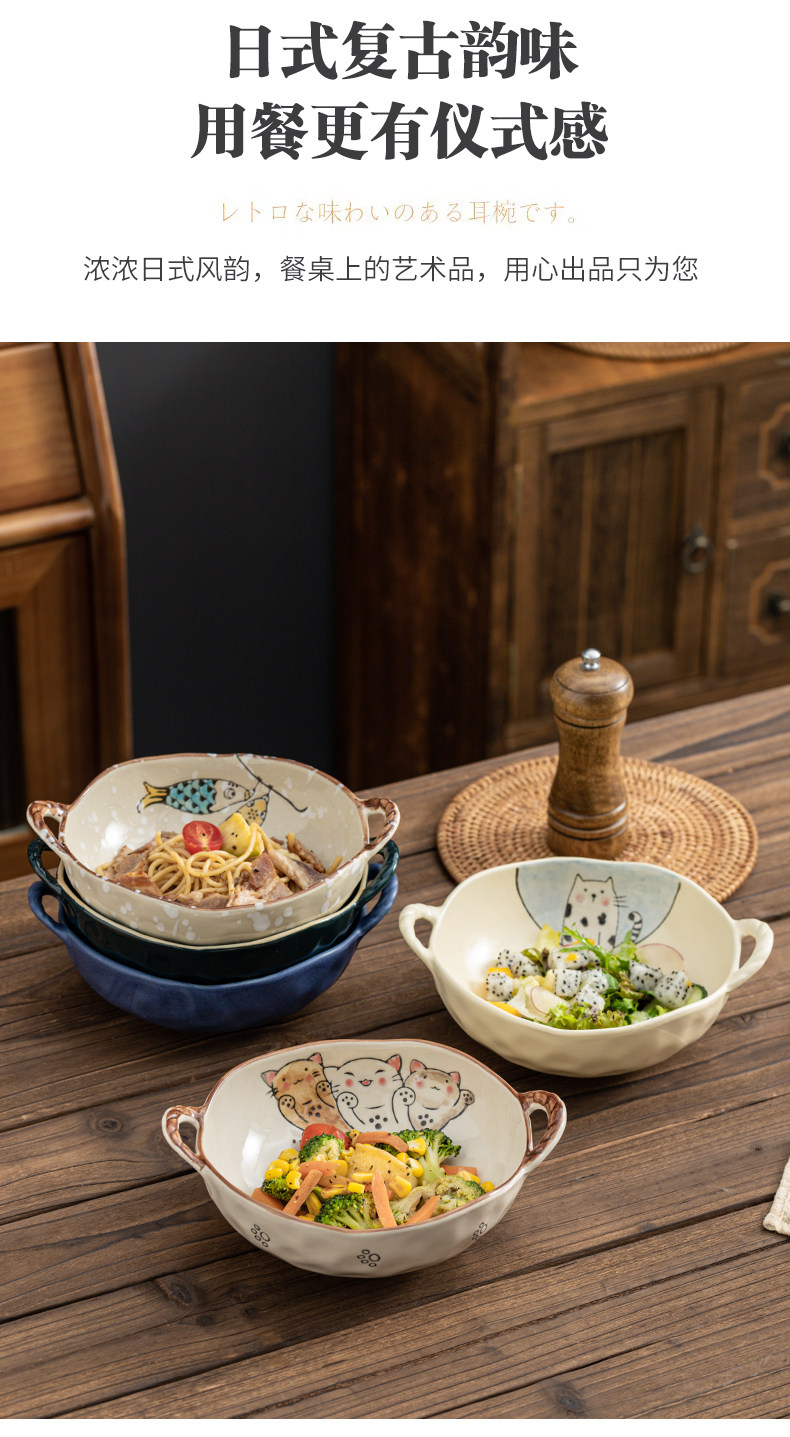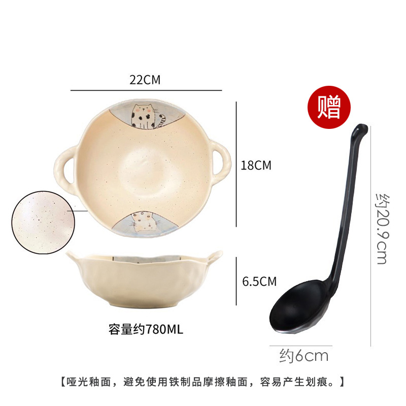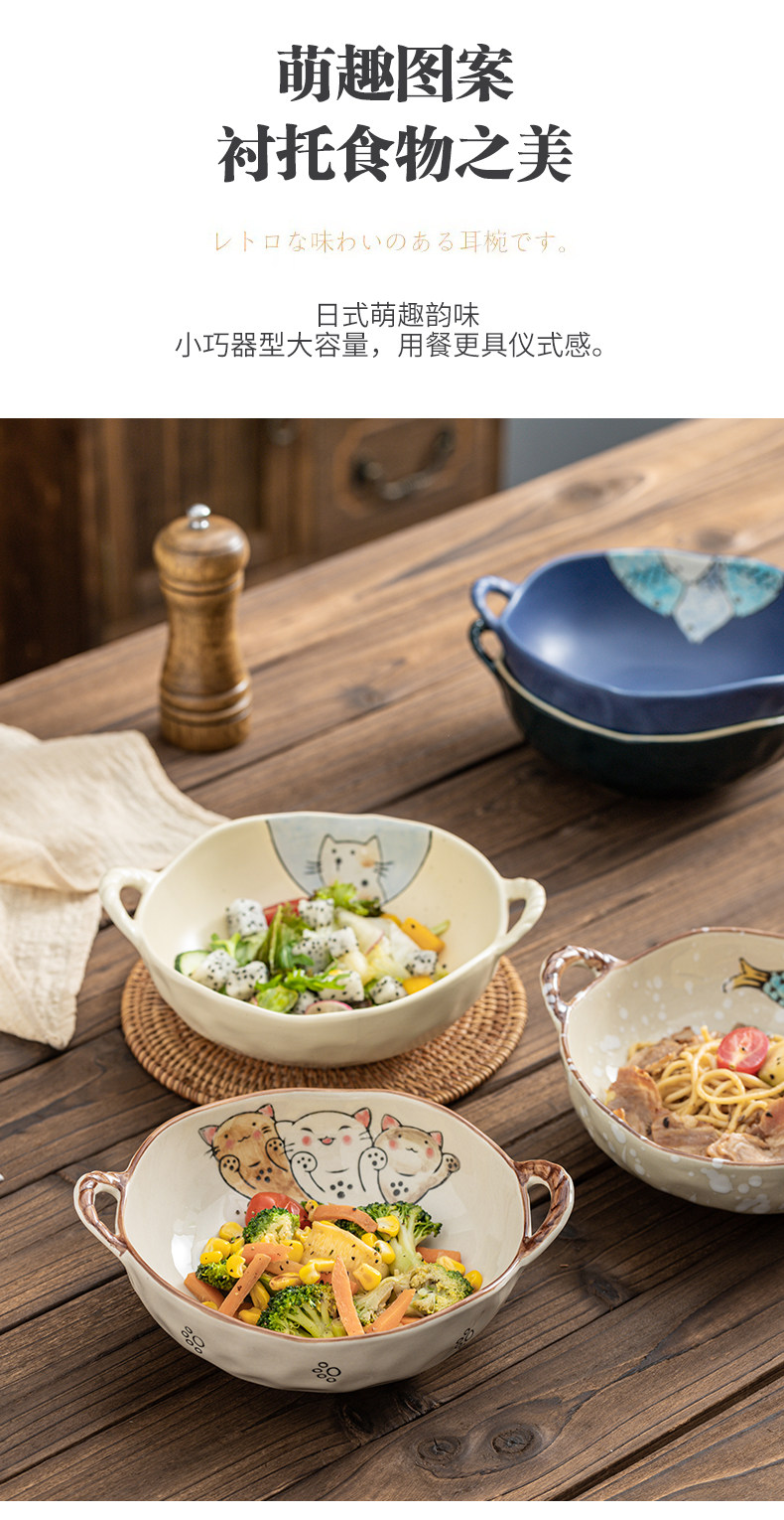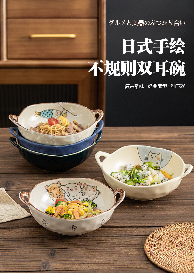 이중 귀 그릇 수프 그릇 가정용 손으로 그린 새 손잡이 수프 분지 세라믹 일본라면 그릇 달팽이 국수 그릇 식기 대형 그릇스토어 가기
