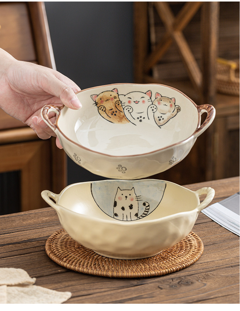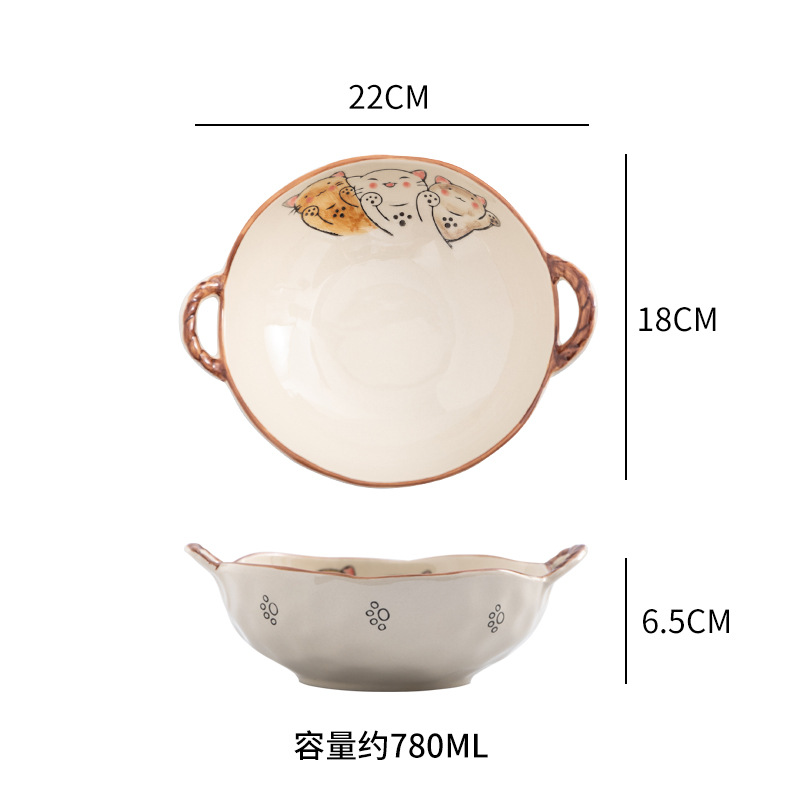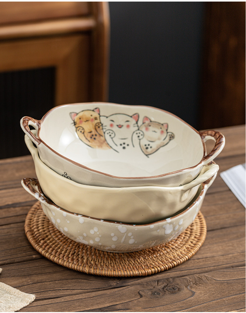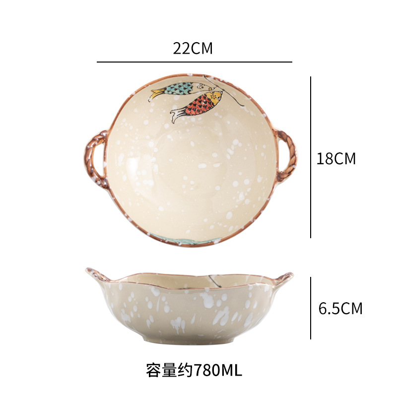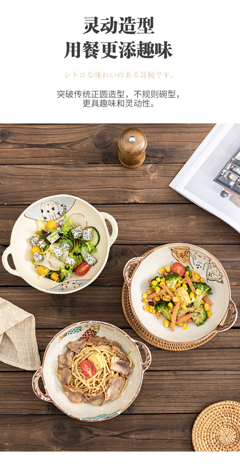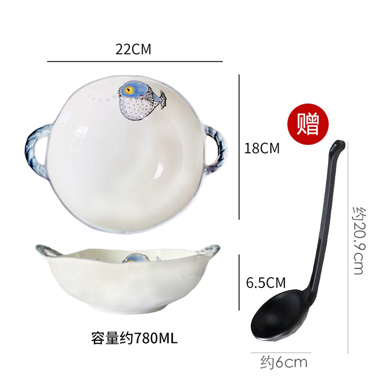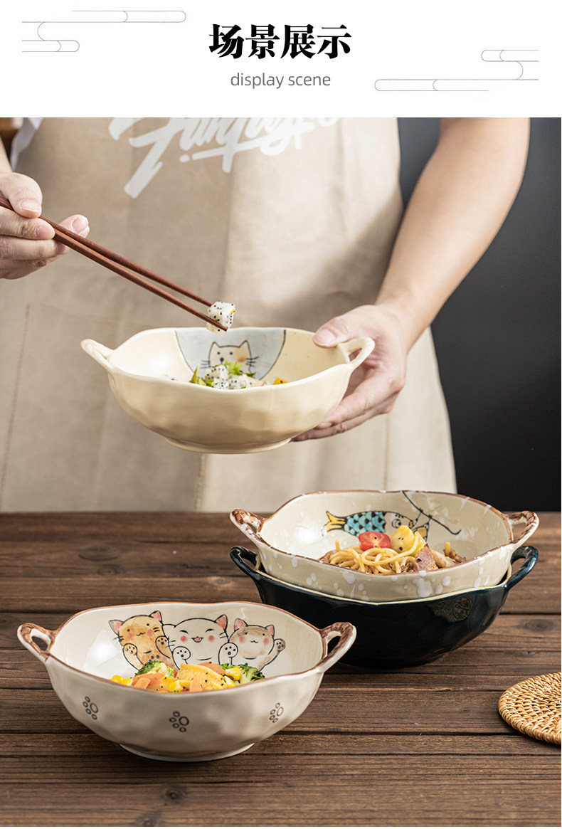 이중 귀 그릇 수프 그릇 가정용 손으로 그린 새 손잡이 수프 분지 세라믹 일본라면 그릇 달팽이 국수 그릇 식기 대형 그릇스토어 가기