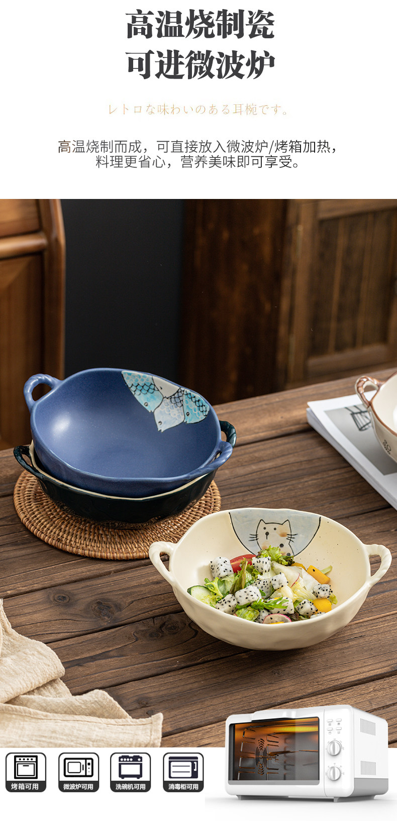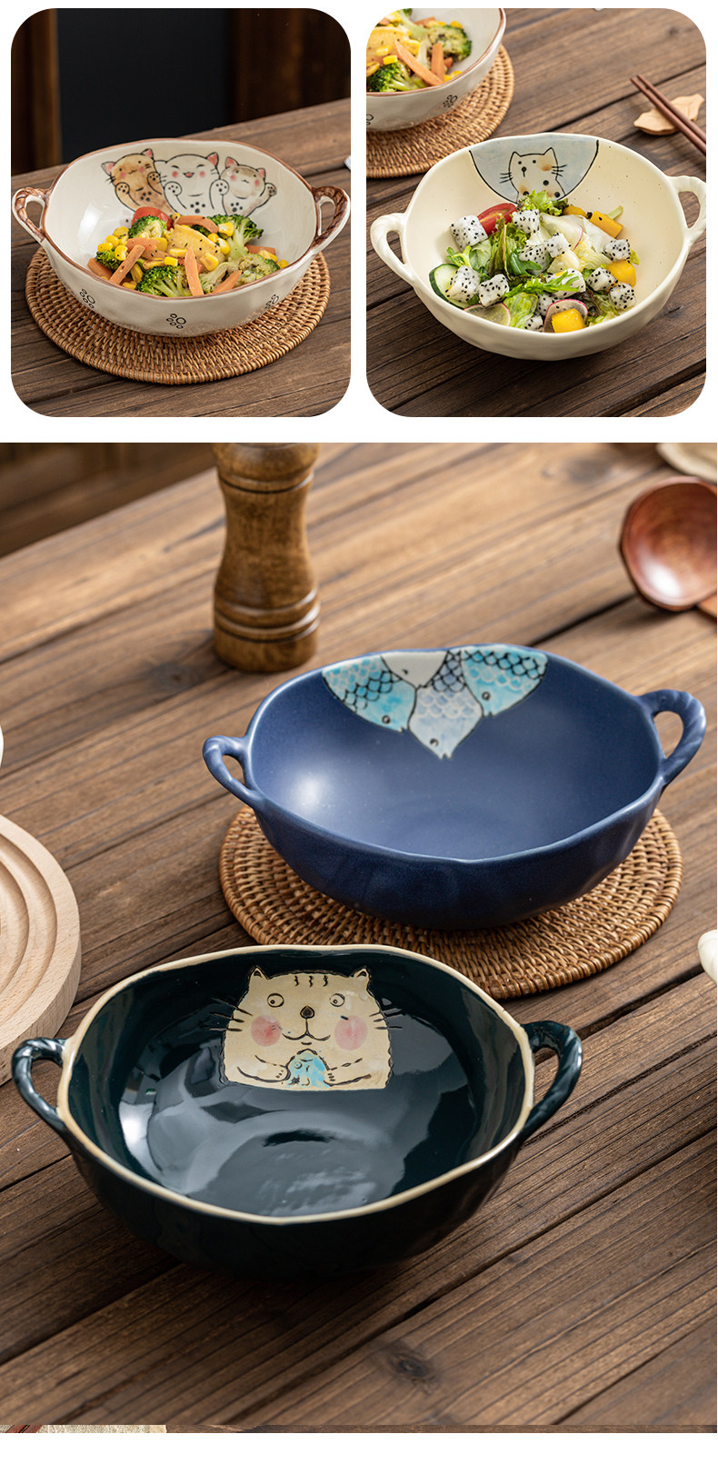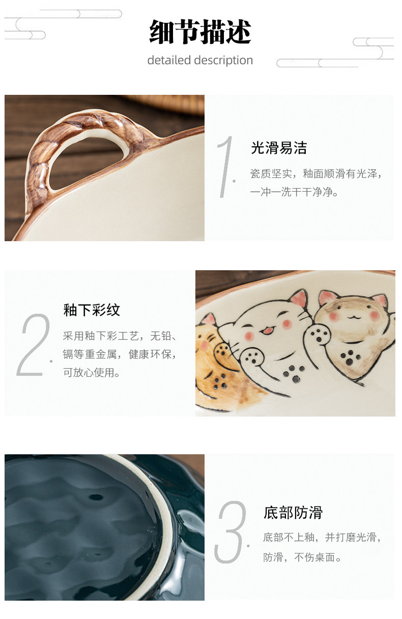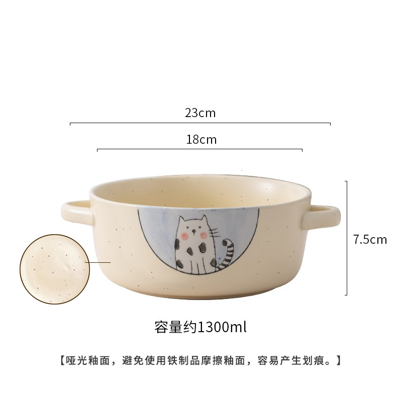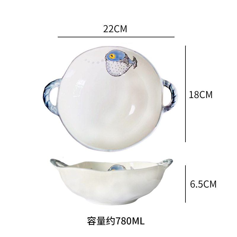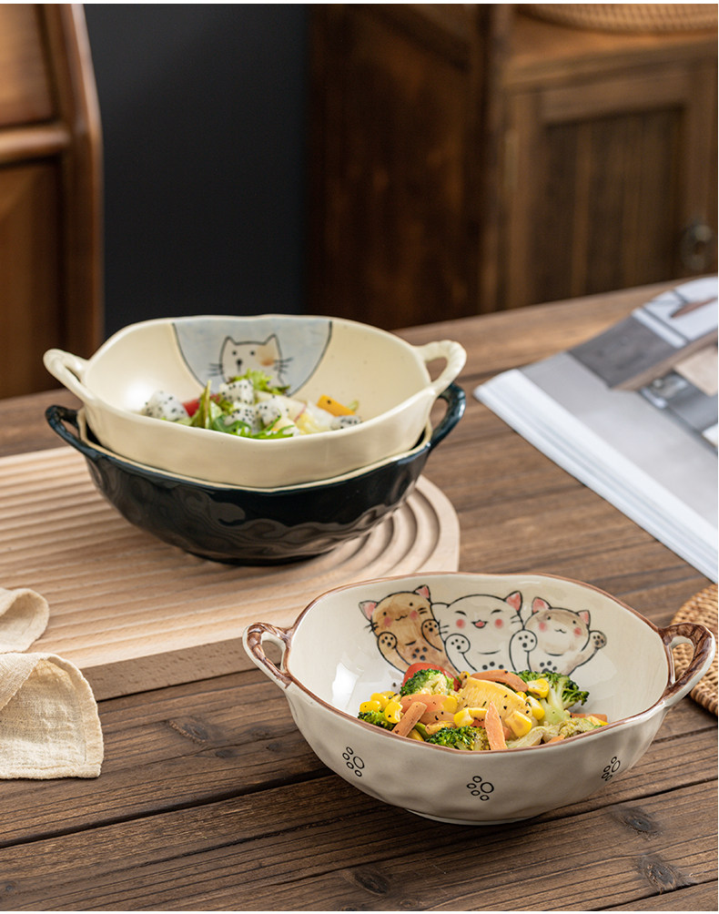 이중 귀 그릇 수프 그릇 가정용 손으로 그린 새 손잡이 수프 분지 세라믹 일본라면 그릇 달팽이 국수 그릇 식기 대형 그릇스토어 가기