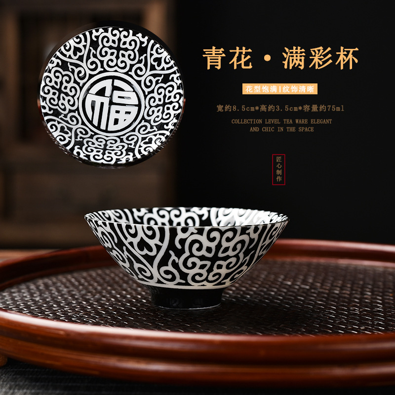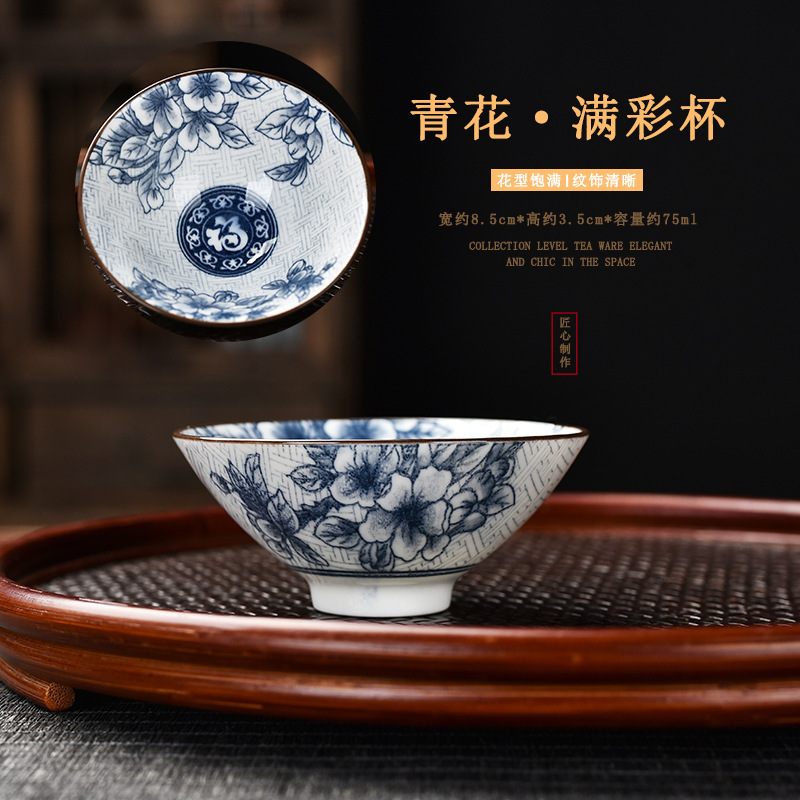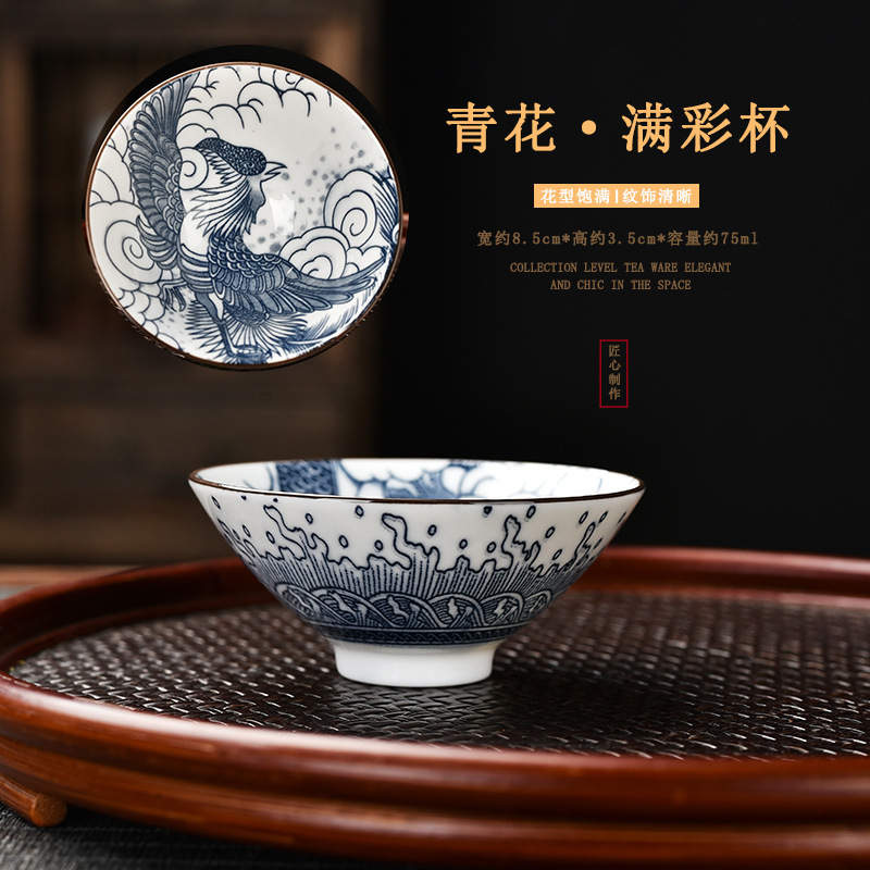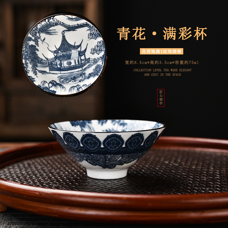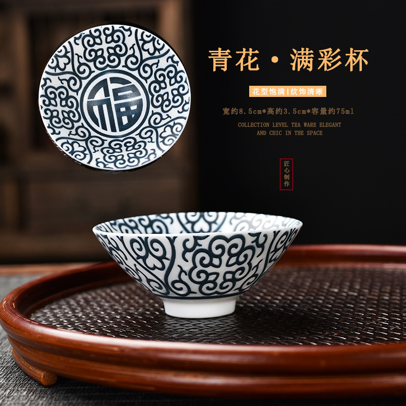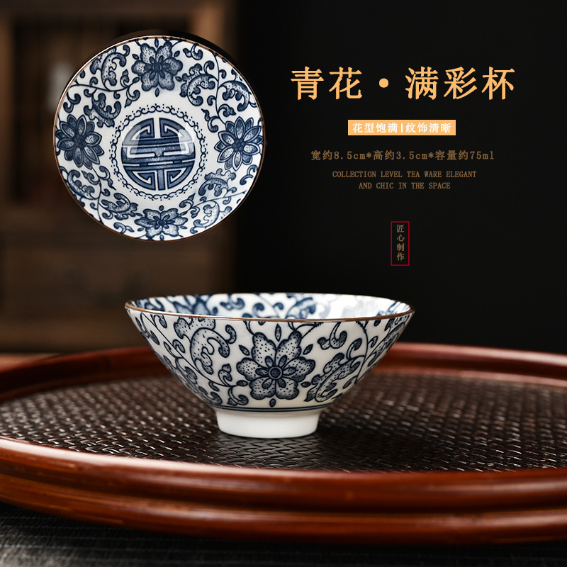 파란색과 흰색 도자기 차 컵 세라믹 쿵푸 작은 차 컵 싱글 컵 마스터 컵 차 세트 티 컵 세트 차 그릇 차 컵스토어 가기