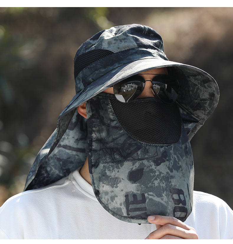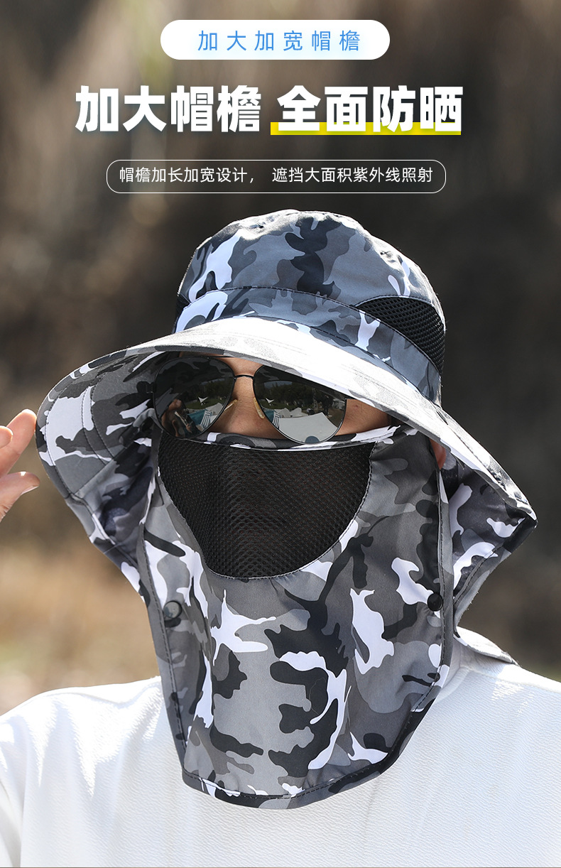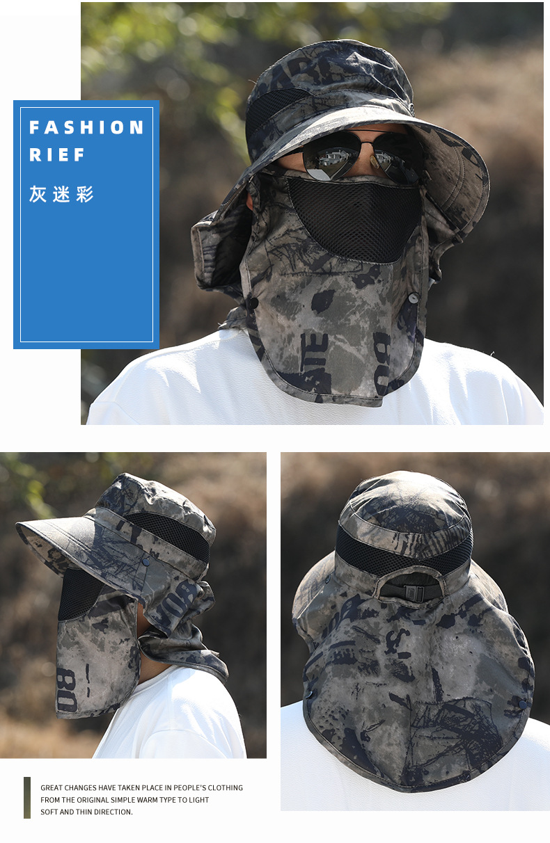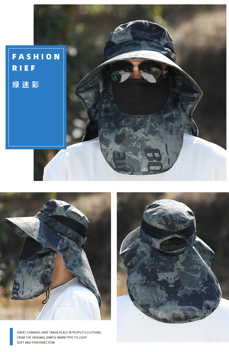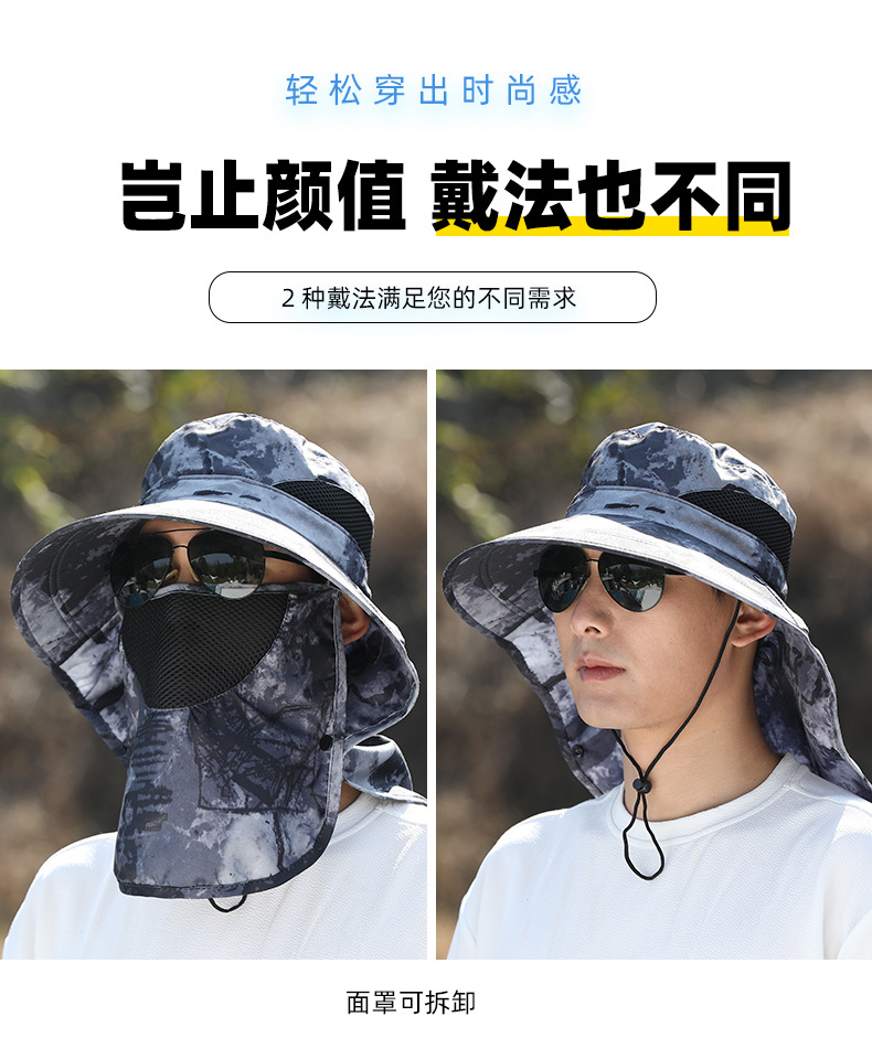 모자 여름 어부 모자 태양 보호 태양 모자 분리형 숄 위장 낚시 모자 남성용 큰 챙 등산 태양 모자