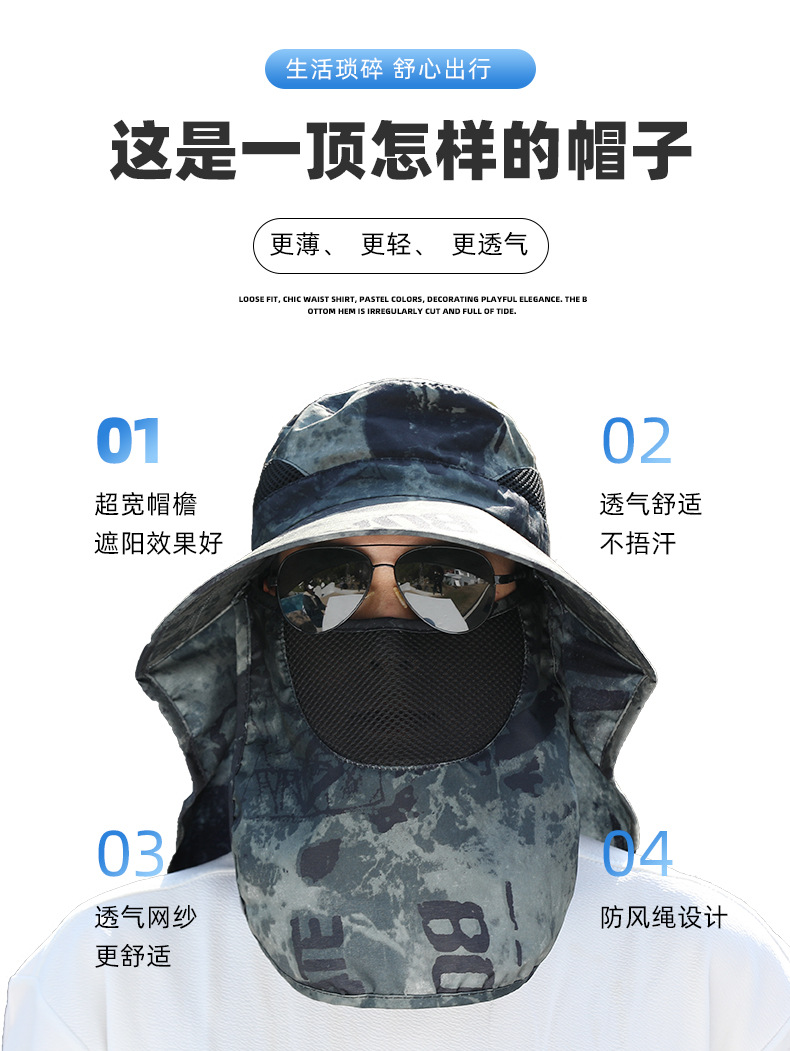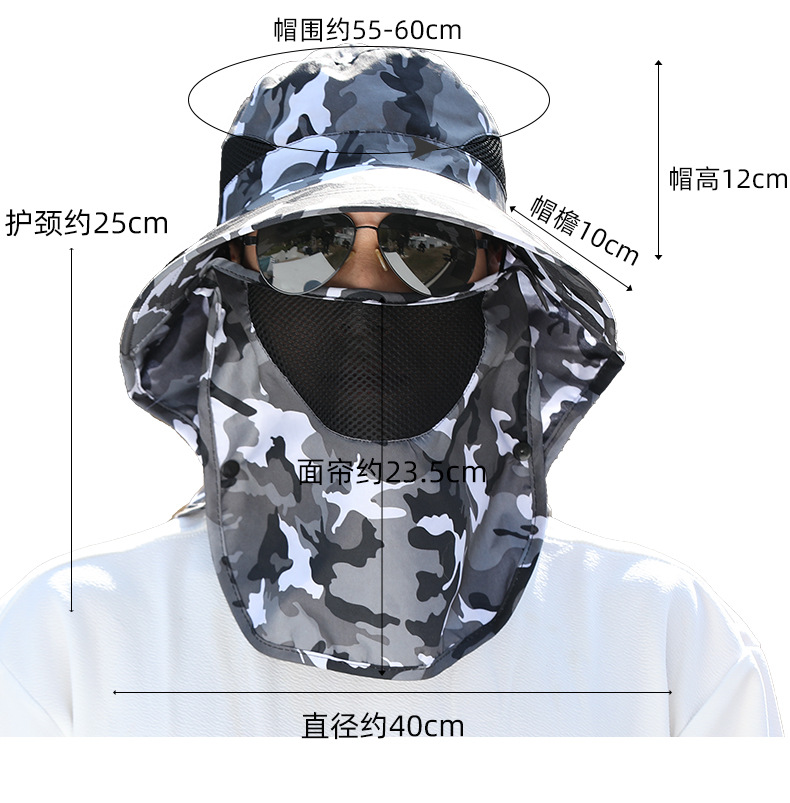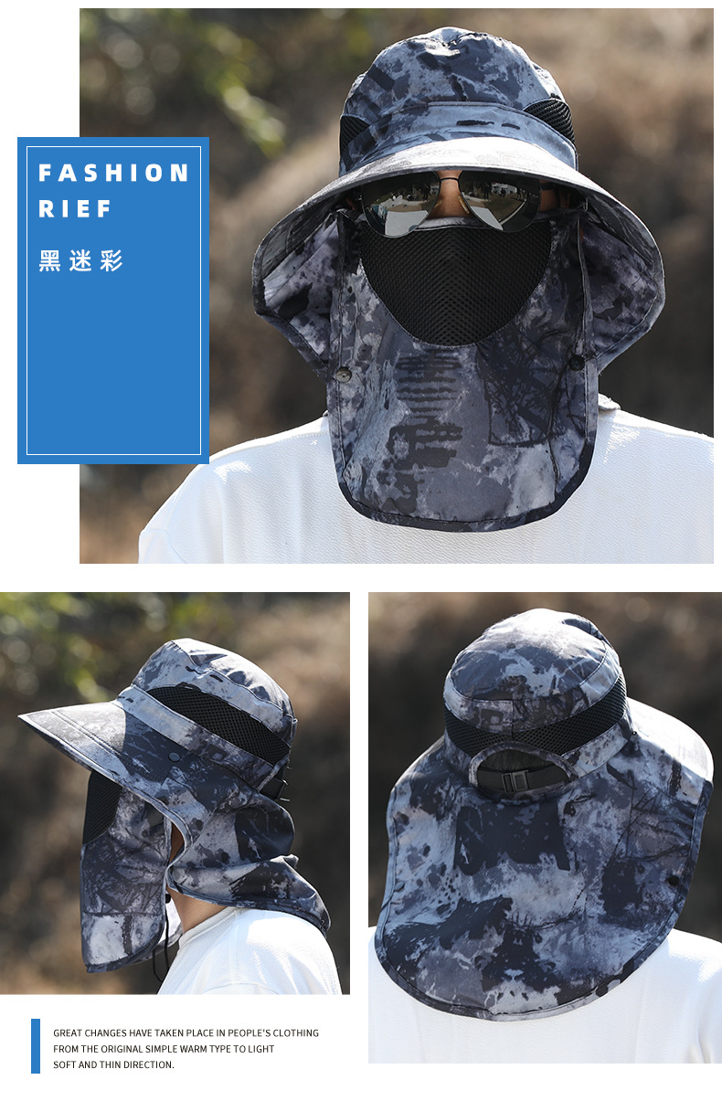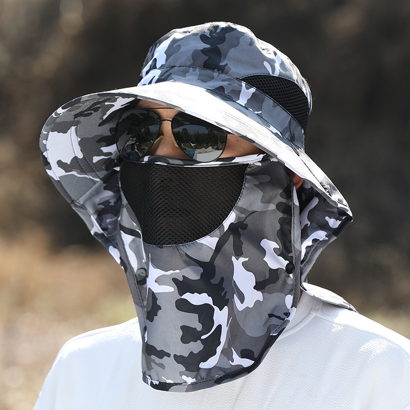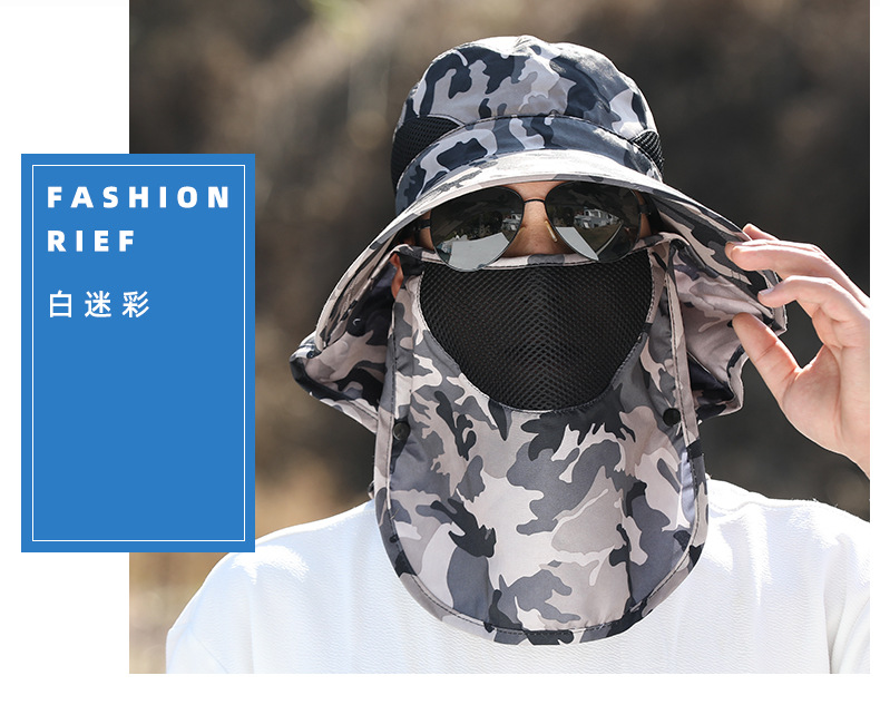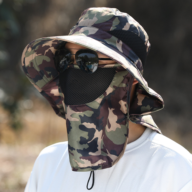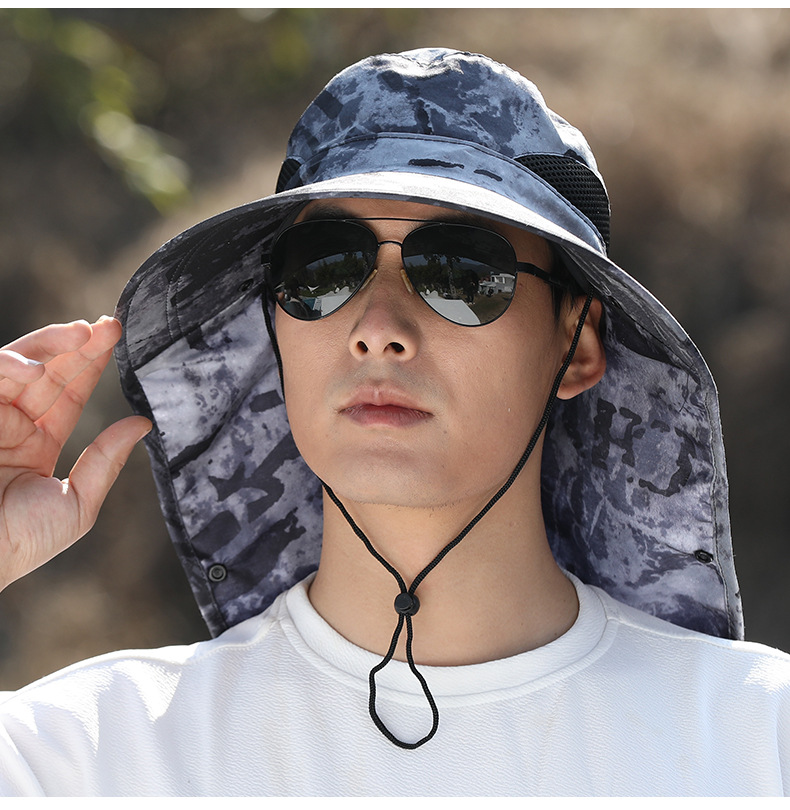 모자 여름 어부 모자 태양 보호 태양 모자 분리형 숄 위장 낚시 모자 남성용 큰 챙 등산 태양 모자