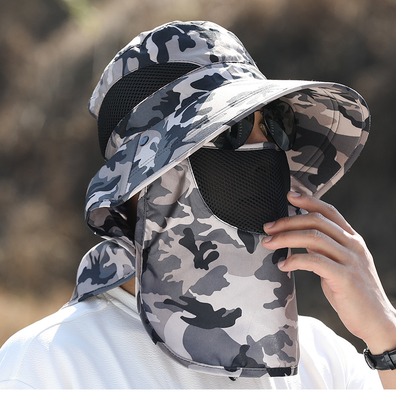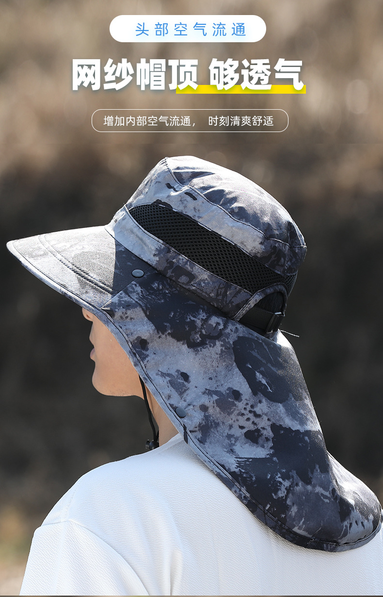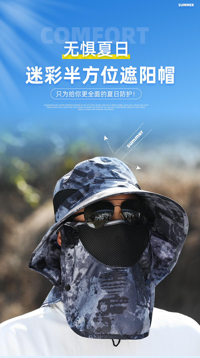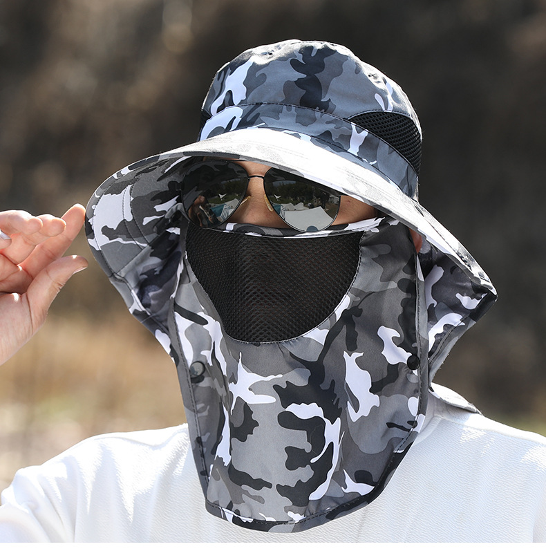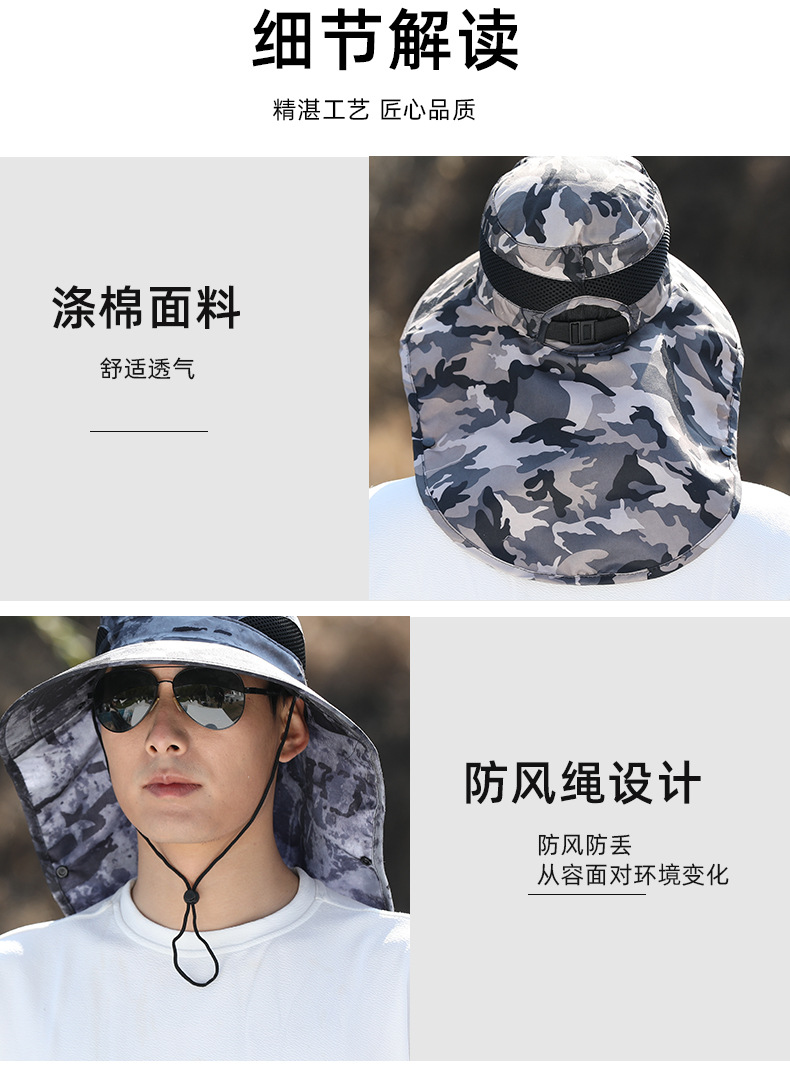 모자 여름 어부 모자 태양 보호 태양 모자 분리형 숄 위장 낚시 모자 남성용 큰 챙 등산 태양 모자