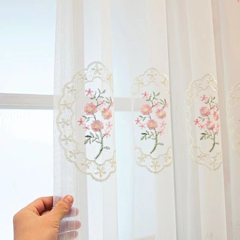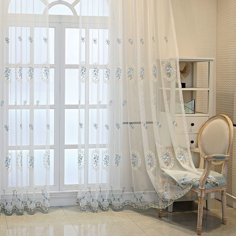 목가적 인 스타일 자수 창 스크린 커튼 창 레이스 베이 창 발코니 화이트 거즈 침실 거실 자수 거즈 커튼 임대실스토어 가기