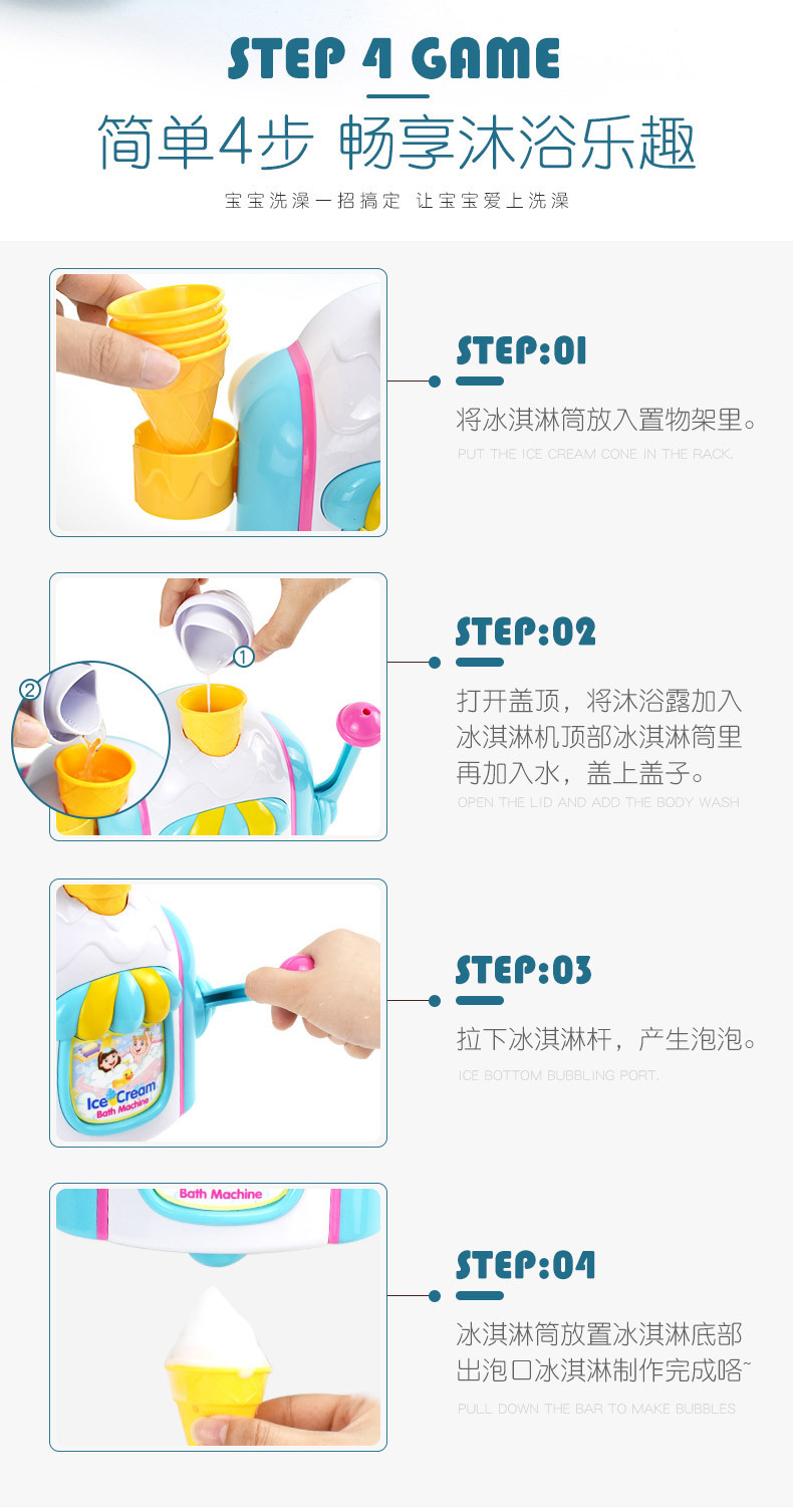 소년과 소녀를위한 아이스크림 거품 기계 만들기 기계 유아 목욕 목욕 욕실 어린이 물 놀이 대화 형 장난감스토어 가기